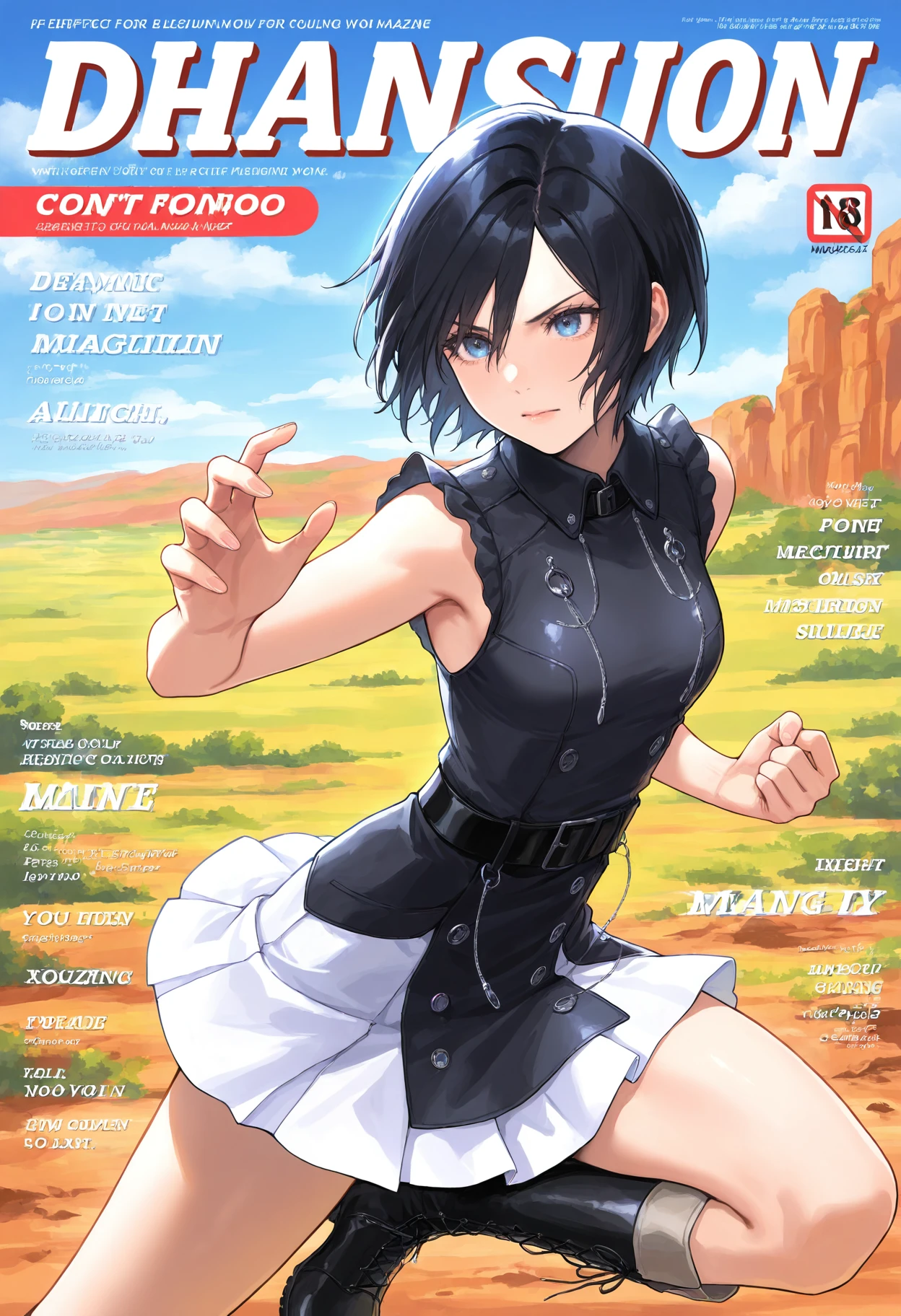 1girl,blue eyes,black hair,short hair,medium hair,bangs,parted bangs,hair between eyes