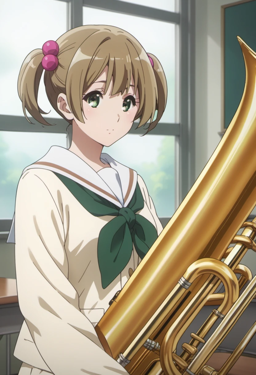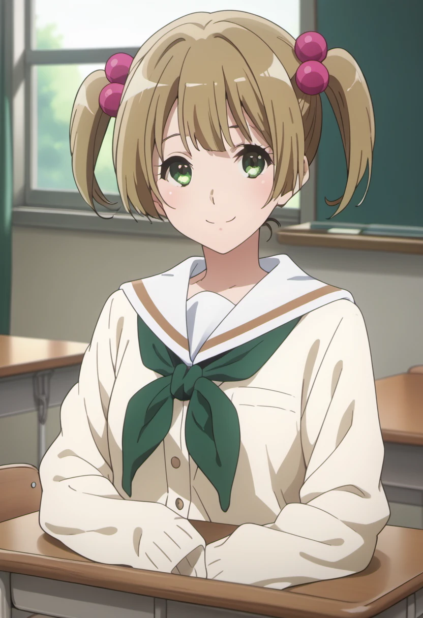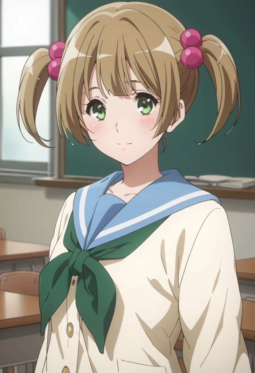 Trigger Words: suzuki satsuki, short hair, brown hair, hair ornament, twintails, green eyes