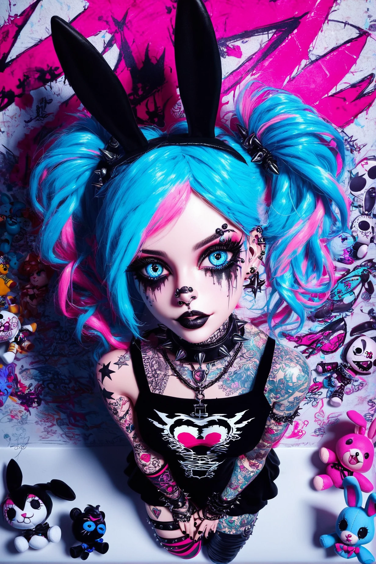 The image is a highly stylized, hyper-realistic CGI artwork featuring a