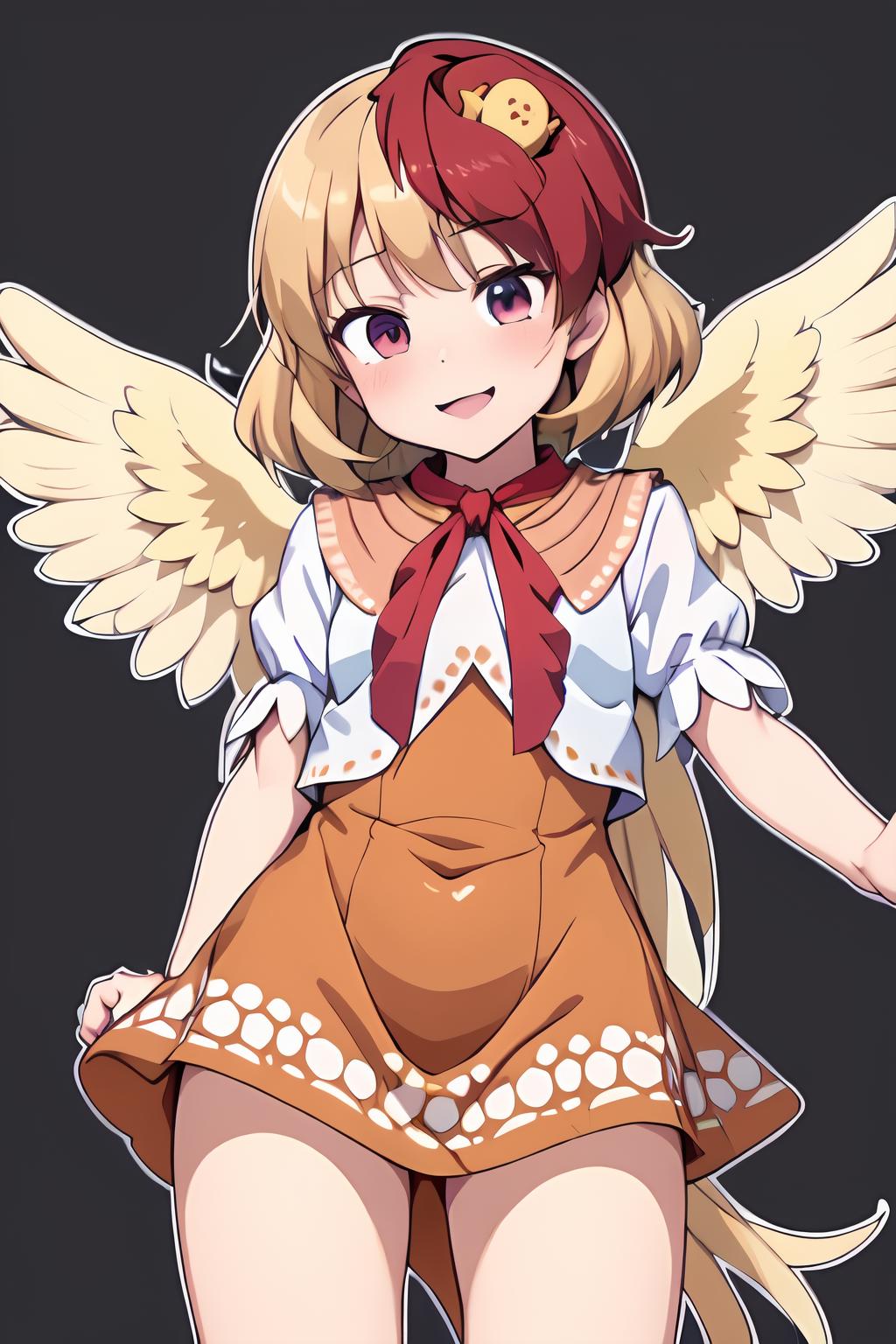 Trigger + Appearance: niwatari kutaka, bird on head, wings, tail