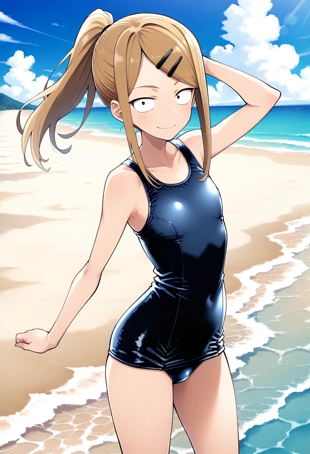 ポニーテールのプロンプトを追加することで髪型は変更可能です。