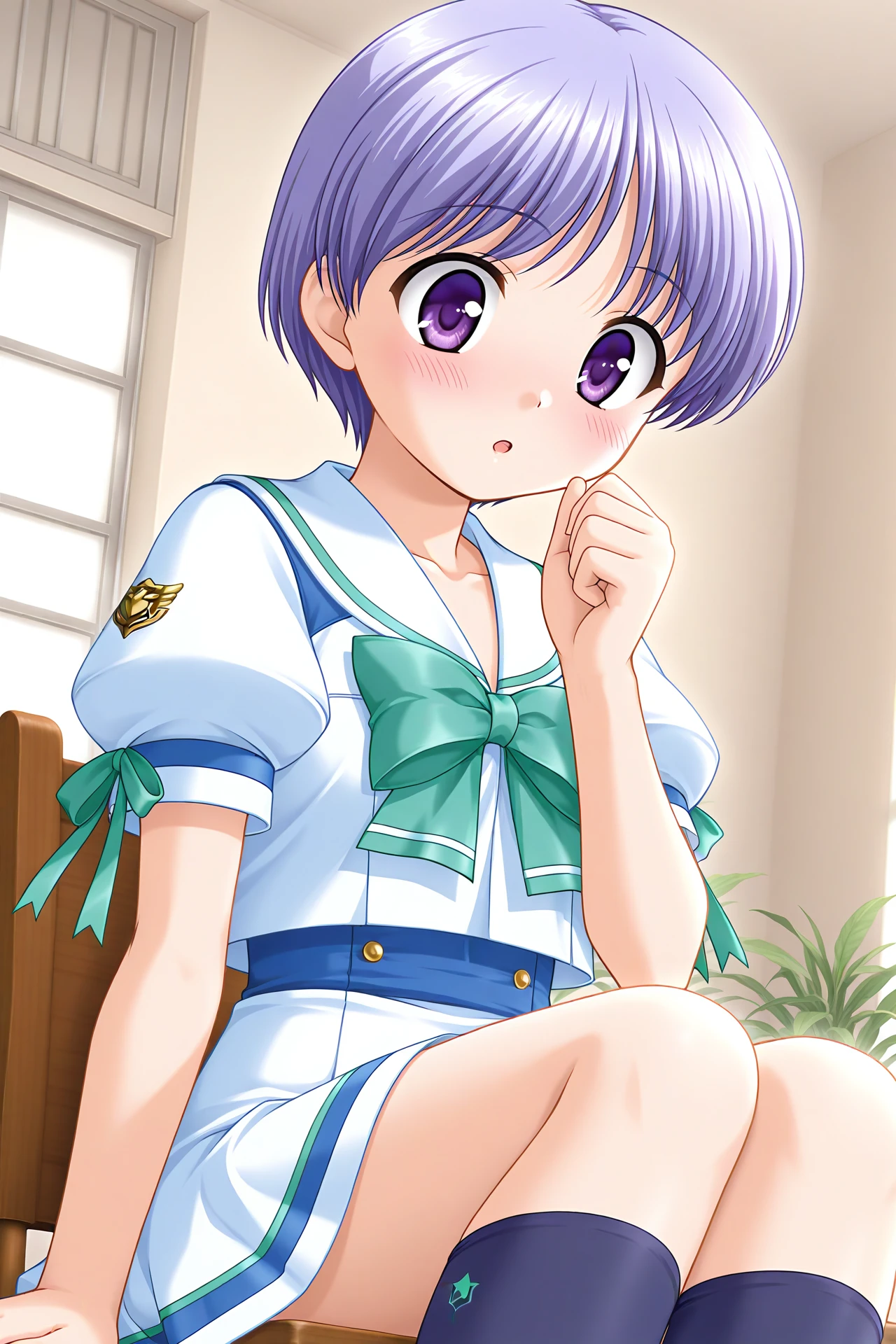 tachibana chihiro,purple eyes,light purple hair,short hair,bangs,