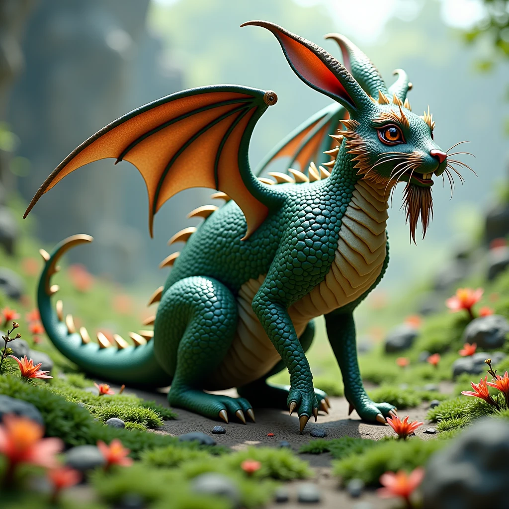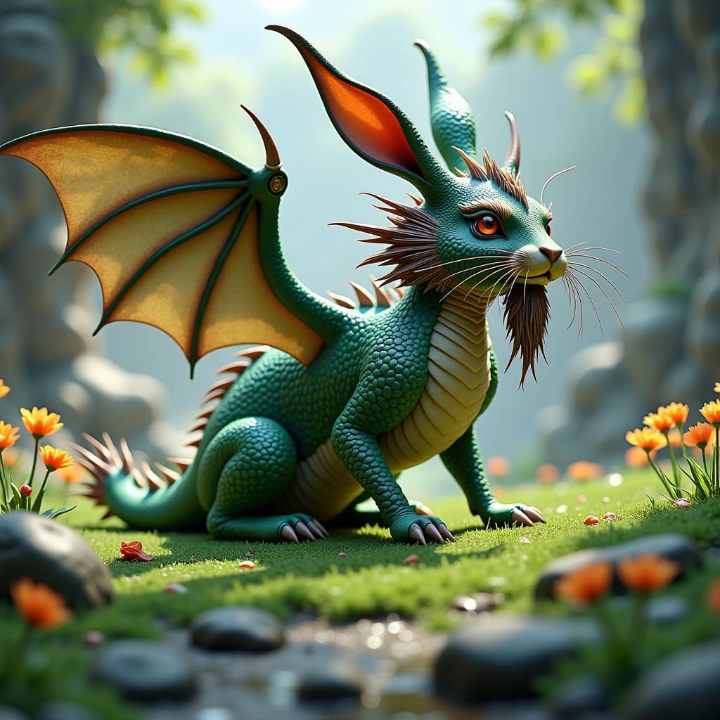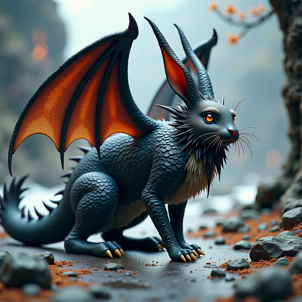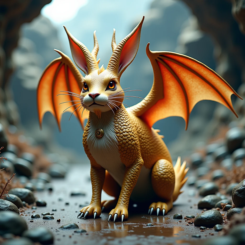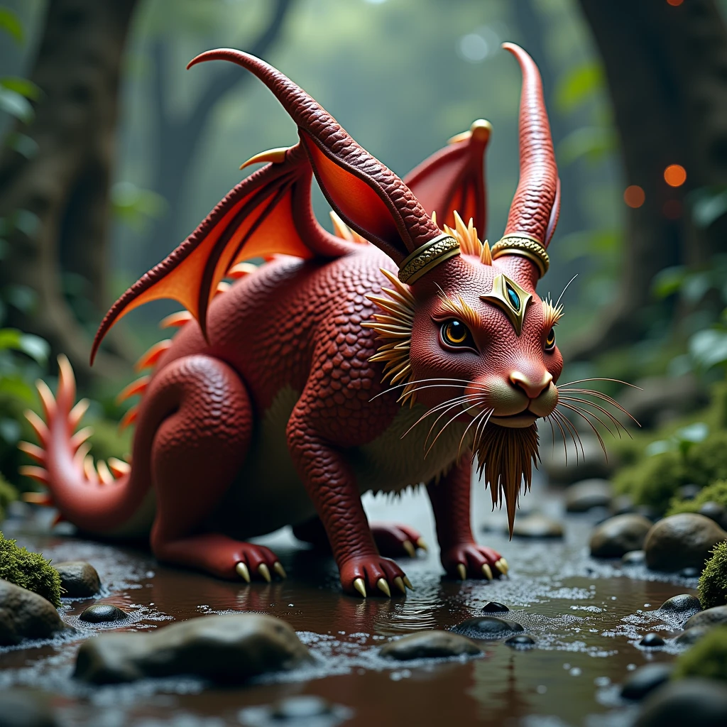 Legend has it that these extraordinary creatures possess the ability to breathe a soft, warm flame that can both heal and protect. Their enchanting presence brings a sense of wonder to those fortunate enough to encounter them, as they frolic through meadows, leaving a trail of tiny, shimmering footprints in their wake. Stories often depict them as wise and ancient beings, with knowledge of the land's oldest mysteries and the power to connect realms. The sight of a draconic rabbit soaring gracefully through the sky on its delicate wings is a rare and magical experience, one that speaks to the heart of all things fantastical and awe-inspiring. 🐉🐇✨