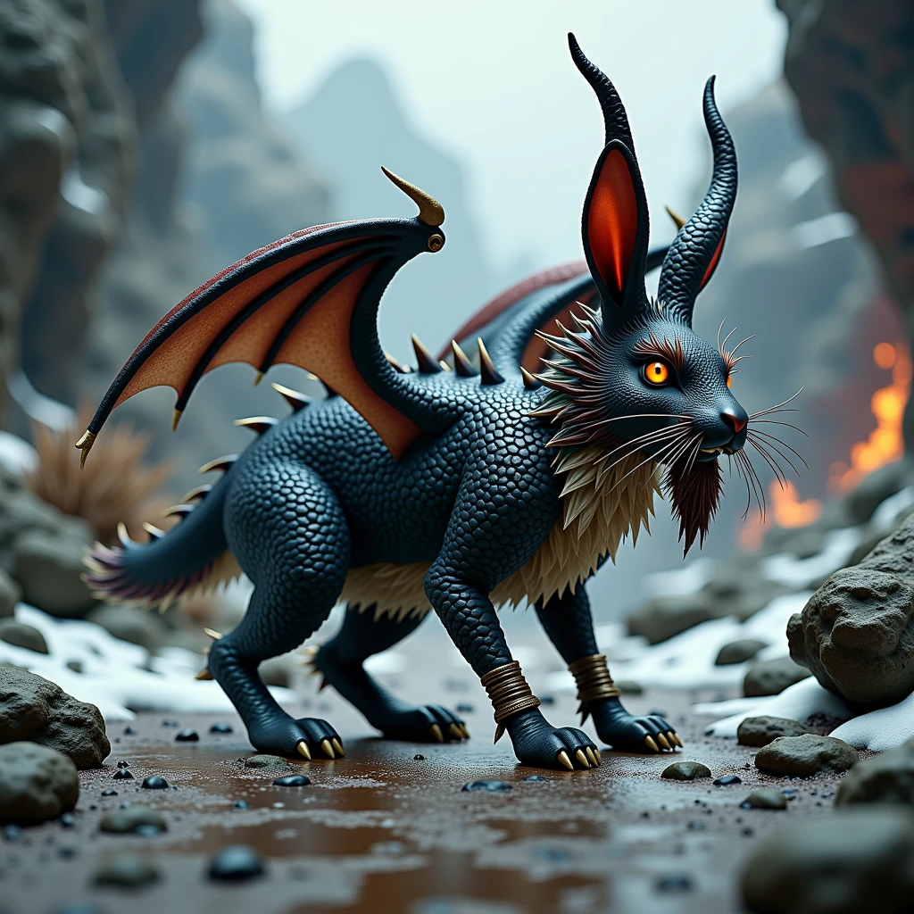 Draconic rabbits, fascinating creatures of myth, embody a delightful blend of the whimsical and the formidable. Imagine a creature with the playful, twitchy nose and agile hops of a rabbit, combined with the majestic wings, scales, and fiery breath of a dragon. These mythical beings are said to inhabit enchanted forests and hidden valleys, where they guard ancient secrets and treasure with both cunning and grace. Their scales shimmer in a myriad of colors, reflecting the magic that courses through their veins, while their keen ears and sharp eyes make them formidable guardians. Despite their fierce appearance, draconic rabbits are known to be fiercely loyal and surprisingly gentle to those who earn their trust, creating a captivating blend of strength and sweetness.