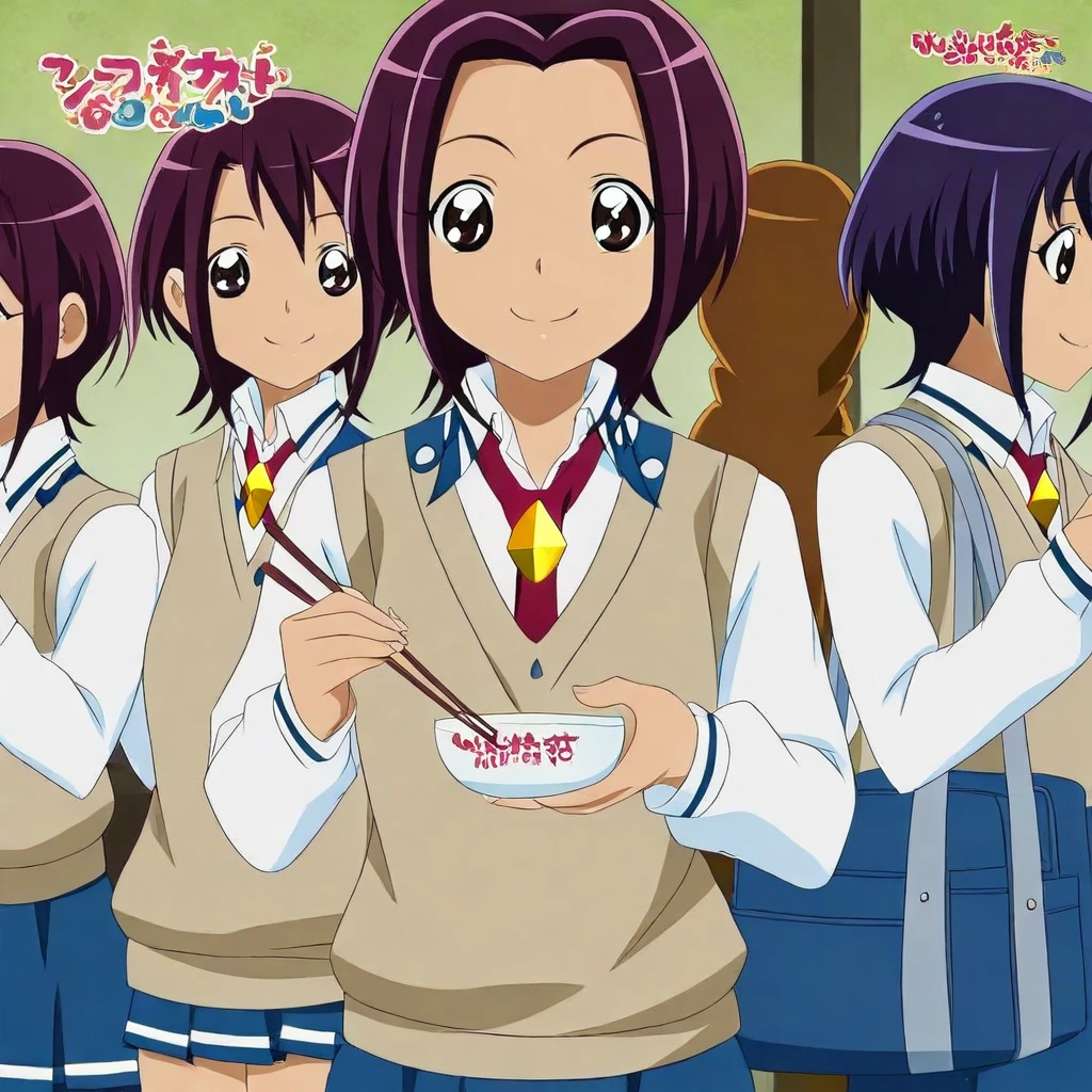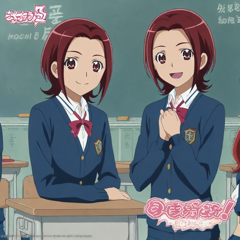 Hiroko kanemoto\(prettycure\), 1girl, solo, Dark pink hair, medium hair, forehead, parted hair forehead, brown eyes, Dress, skirt, socks