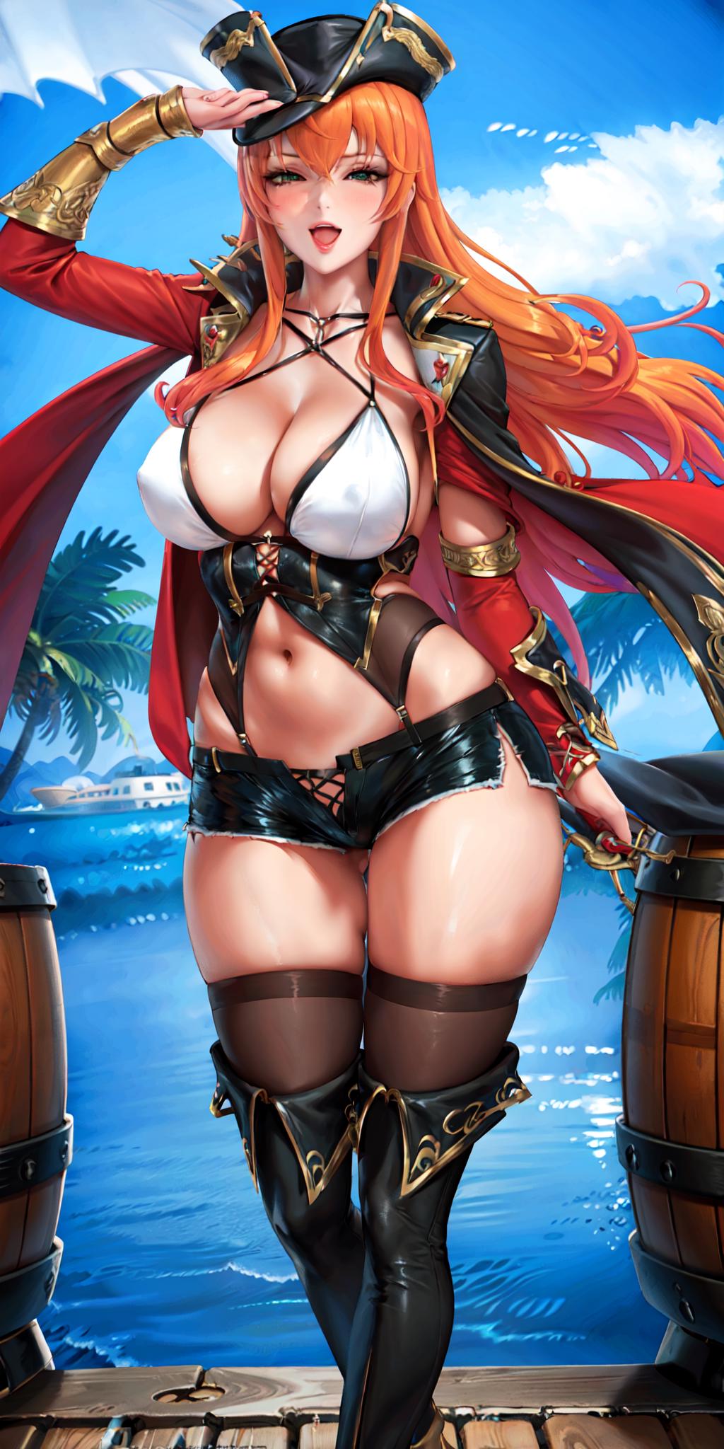 Main tag: captainhook,orange hair,green eyes, very long hair,two-tone hair.