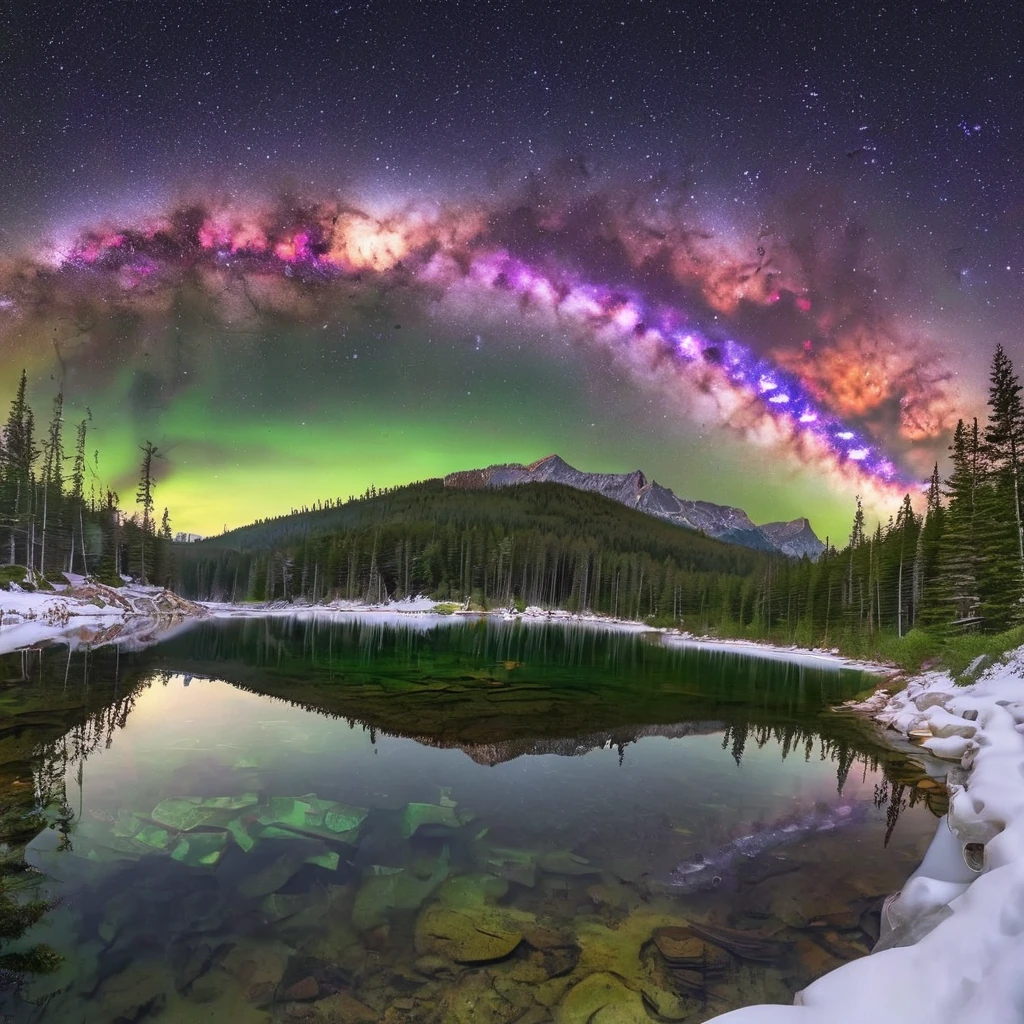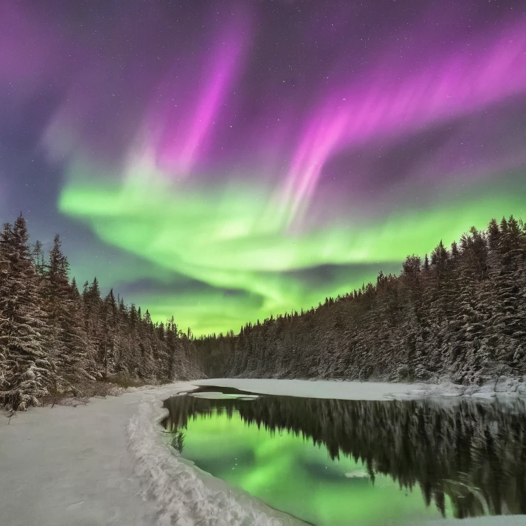 • Realistic & artistic aurora captures in vibrant greens, violets, and pinks.