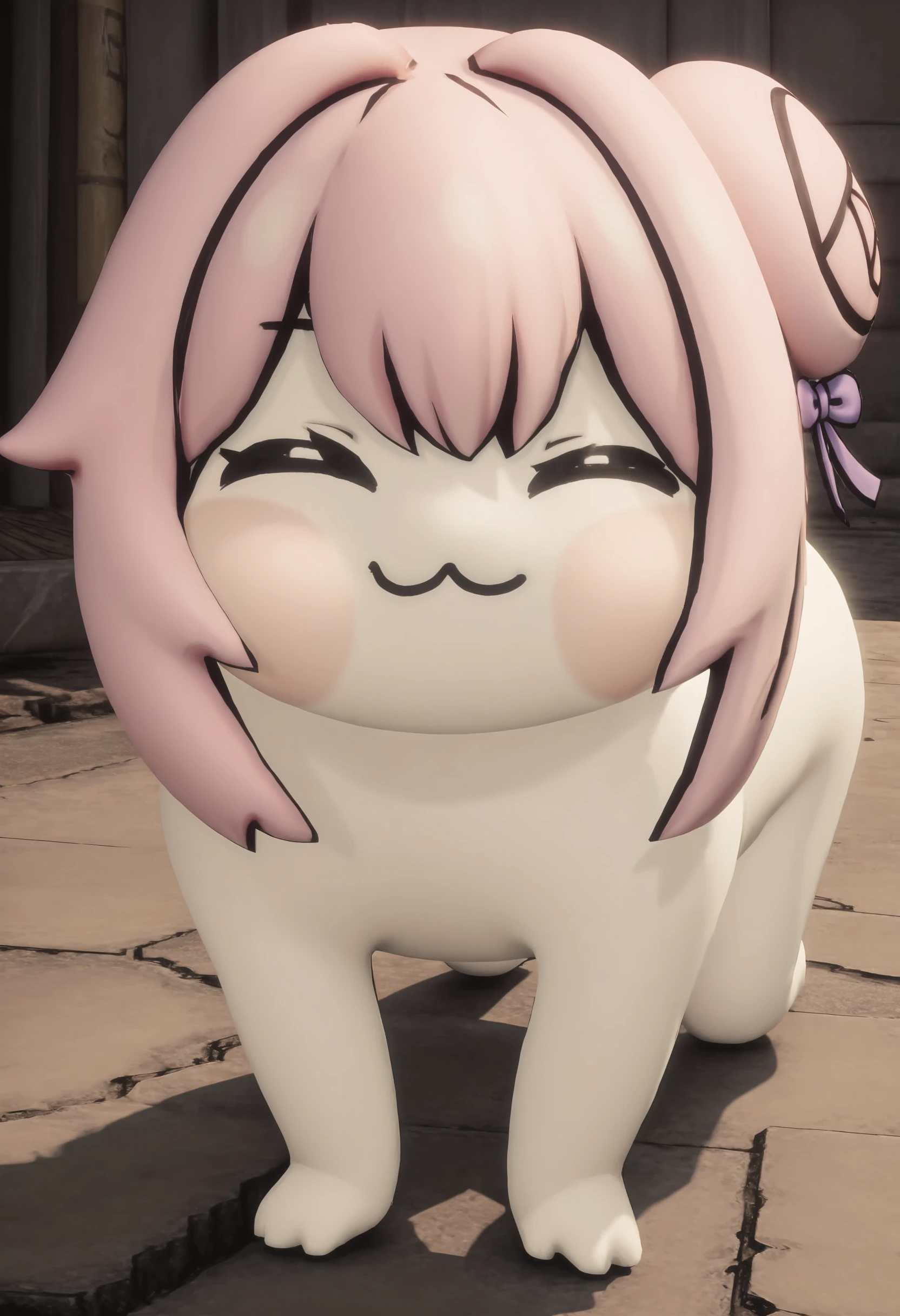 She originates from a meme that appeared in 2023, depicting the NIKKE character Dorothy in a chibi artstyle, its white body originating from a 2021 meme involving another Korean game, SoulWorker. This is based only on the look from Stellar Blade so it will have a slight 3d look.