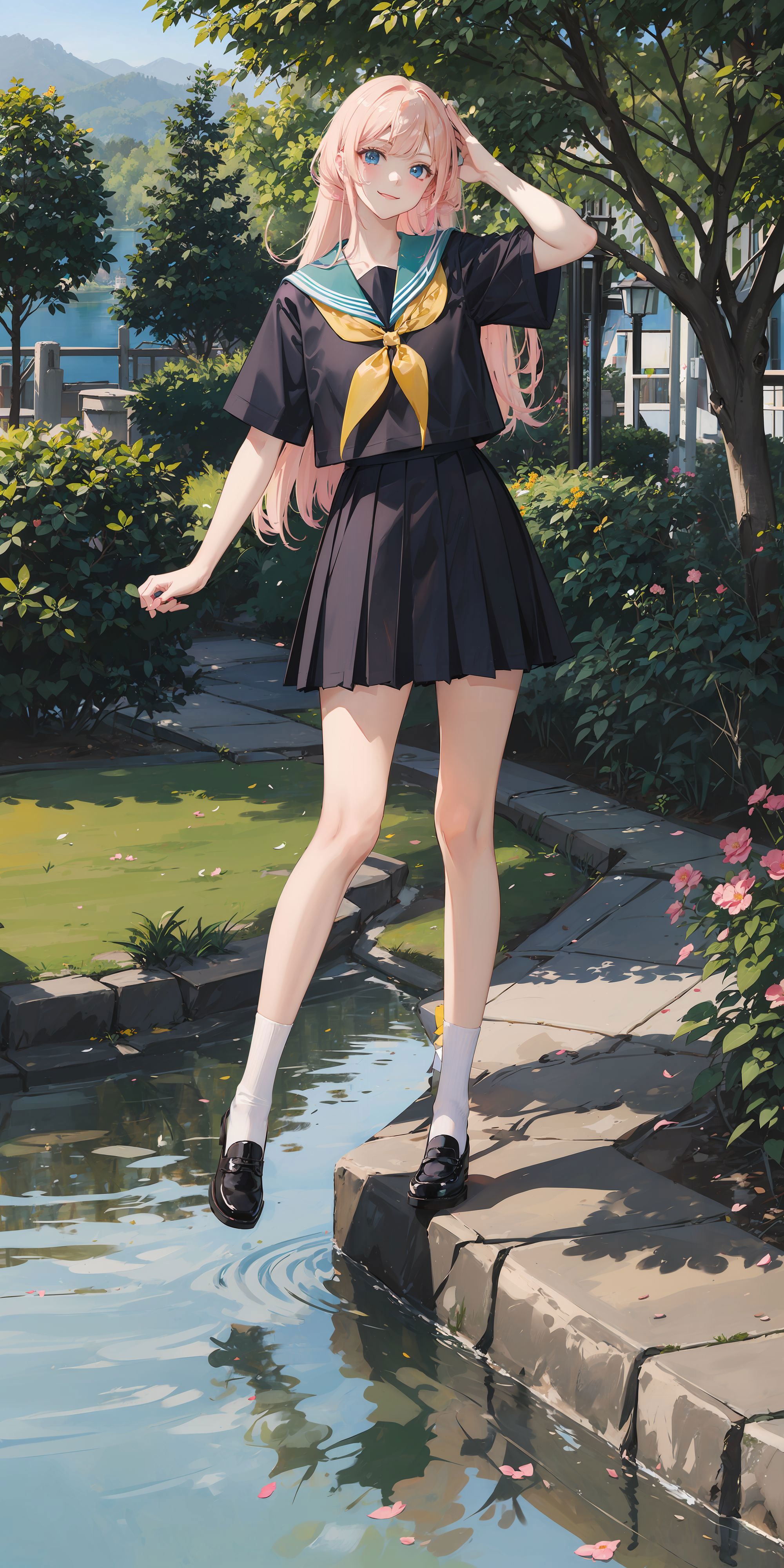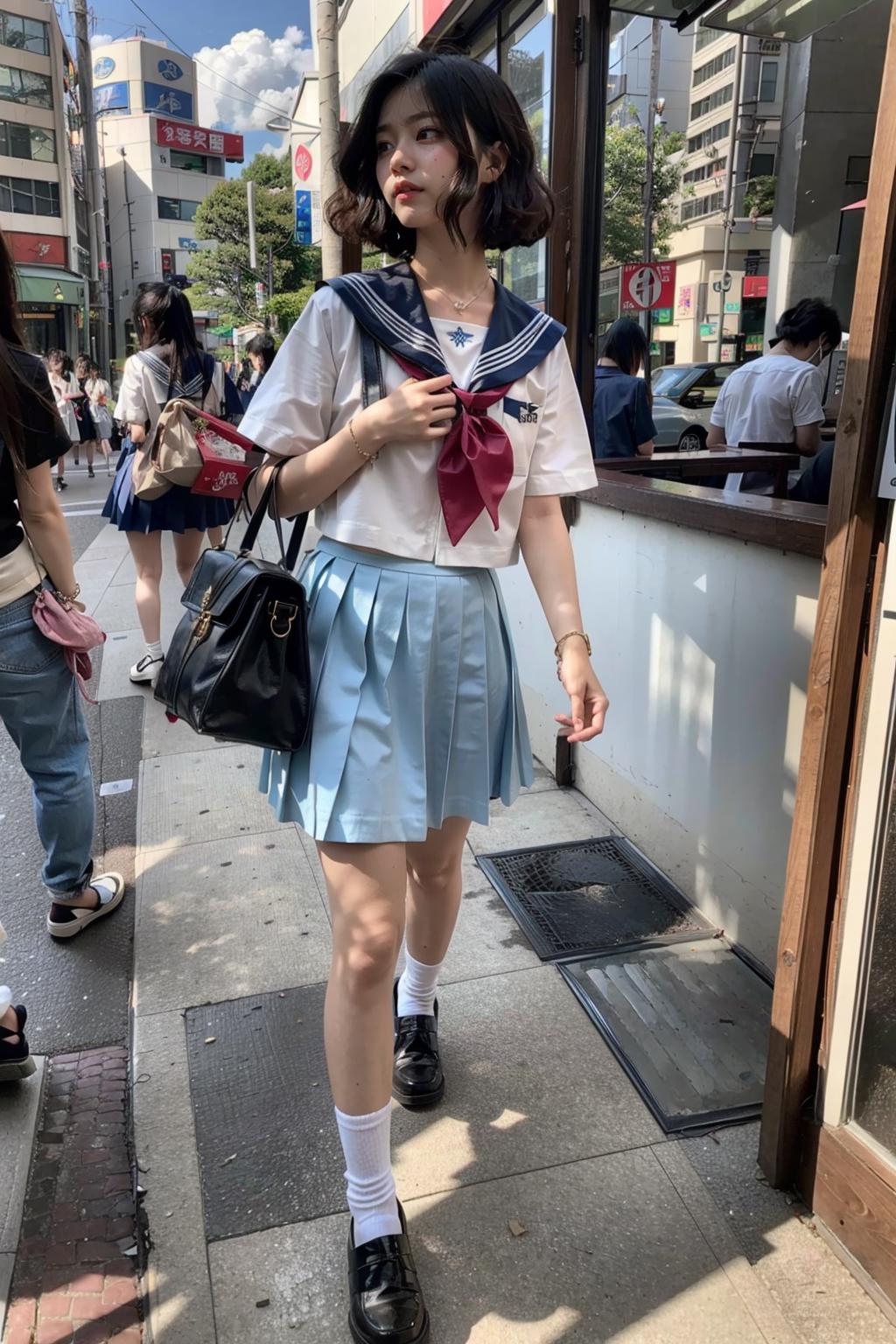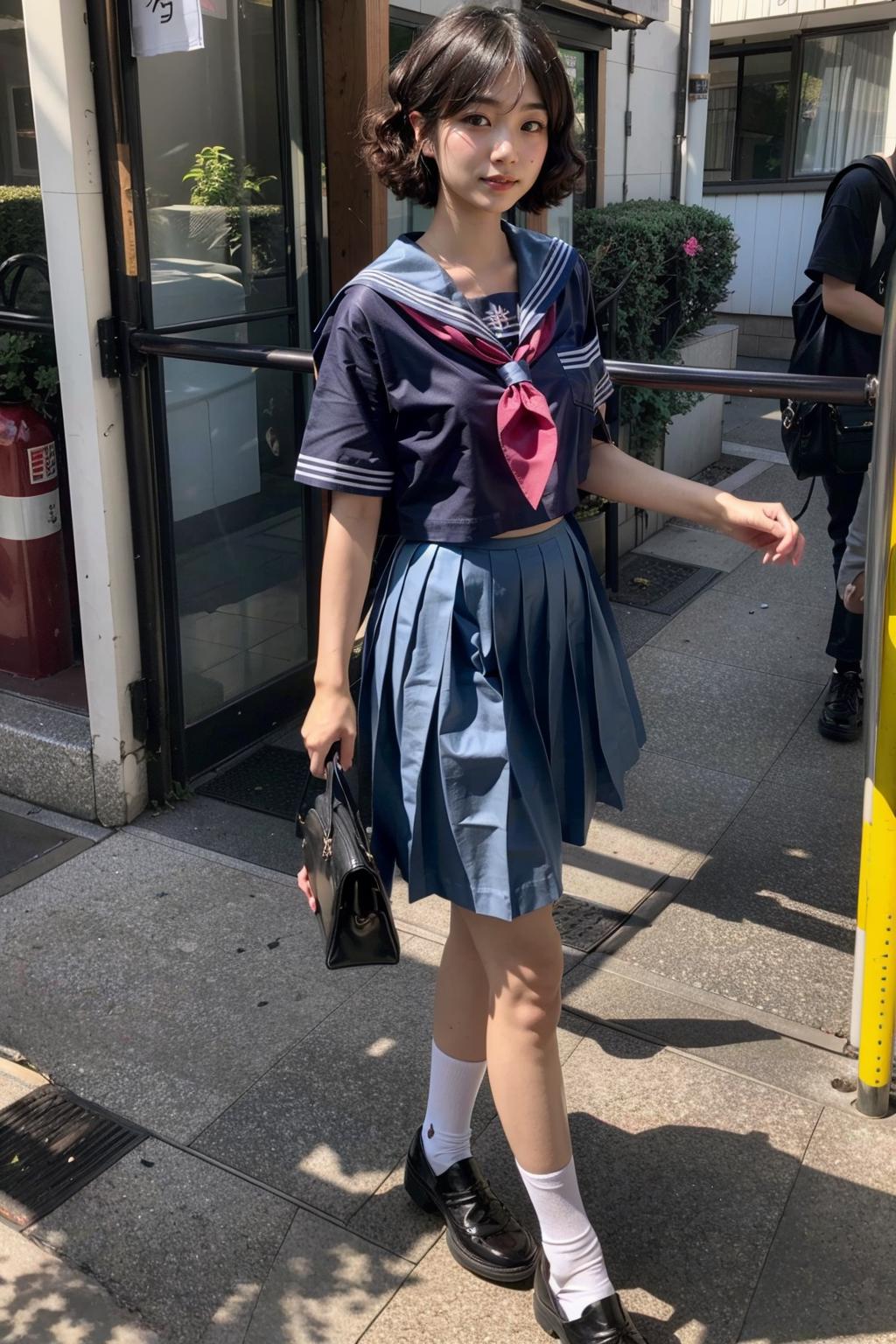 Trigger words:1girl, long hair, white/black/green/blue/pink/yellow japanese school shirt, white/black/green/blue/pink/yellow sailor collar, white/black/green/blue/pink/yellow neckerchief, long/short sleeves, white/black/green/blue/pink/yellow skirt, socks, black shoes