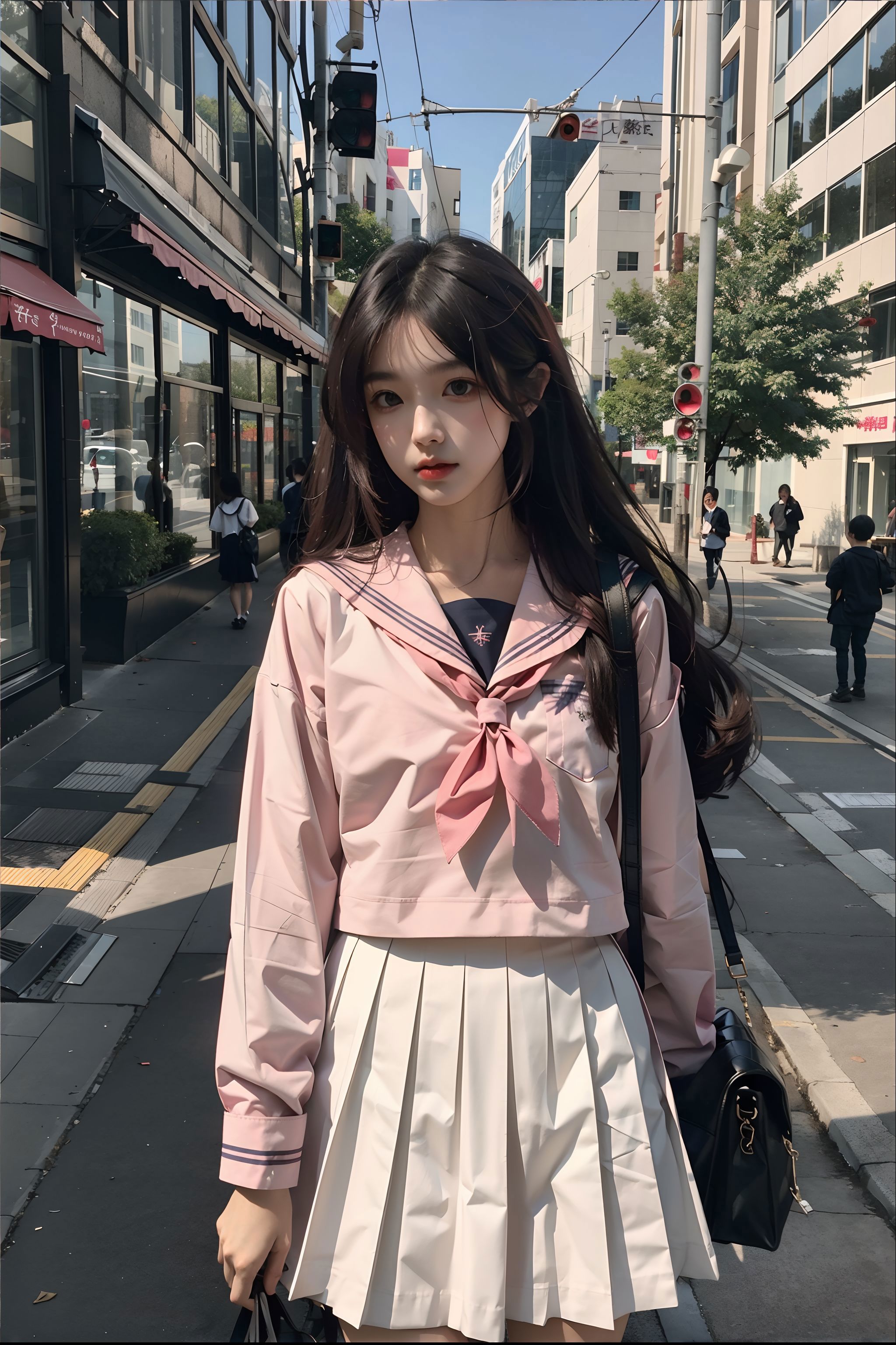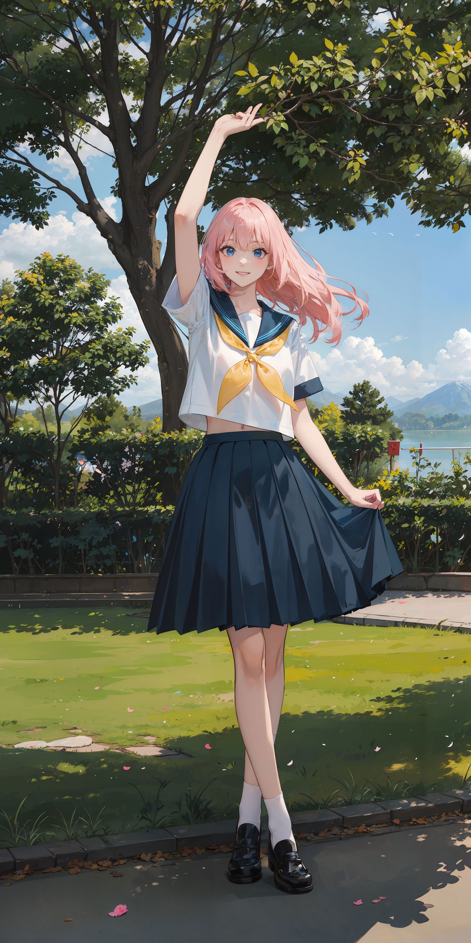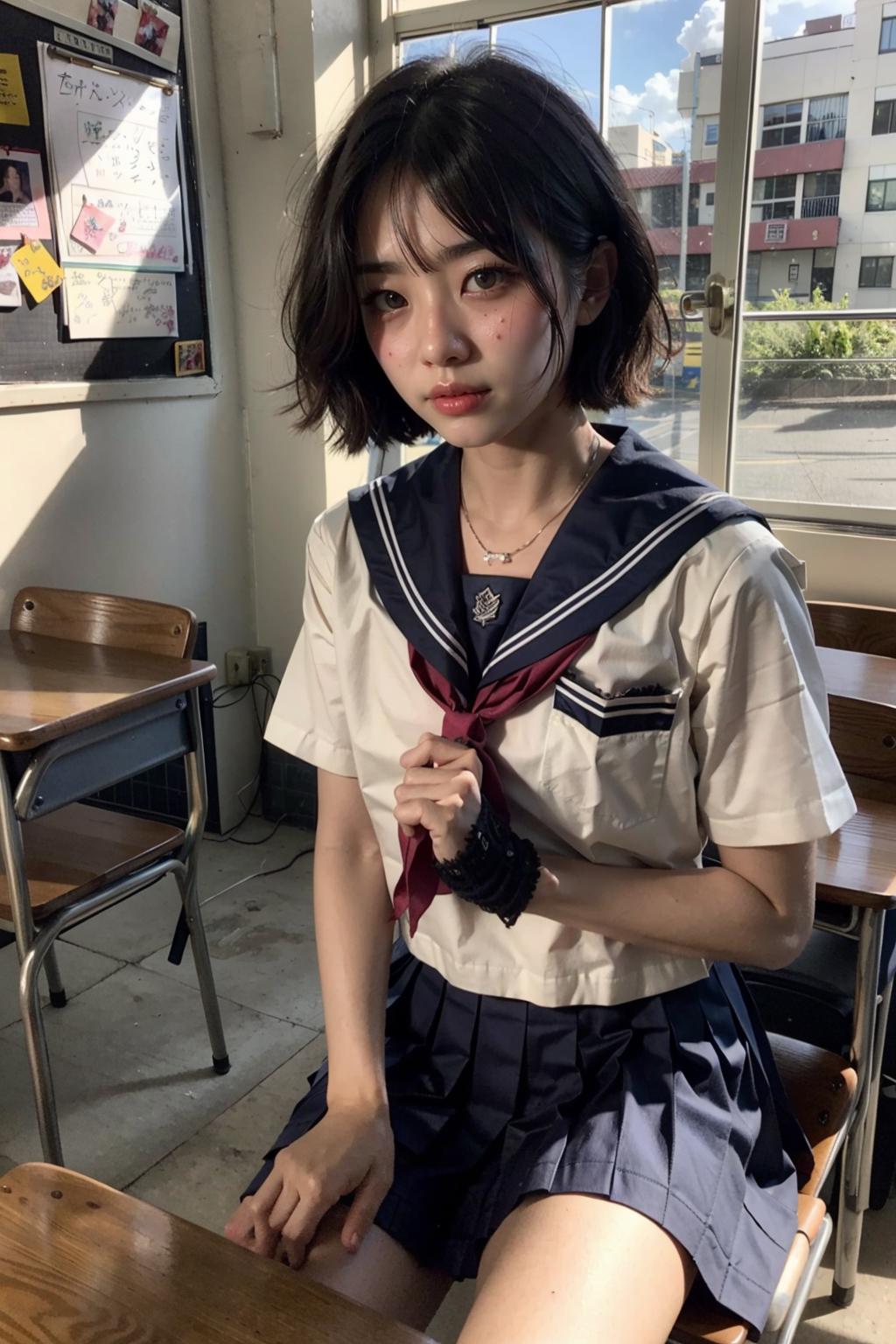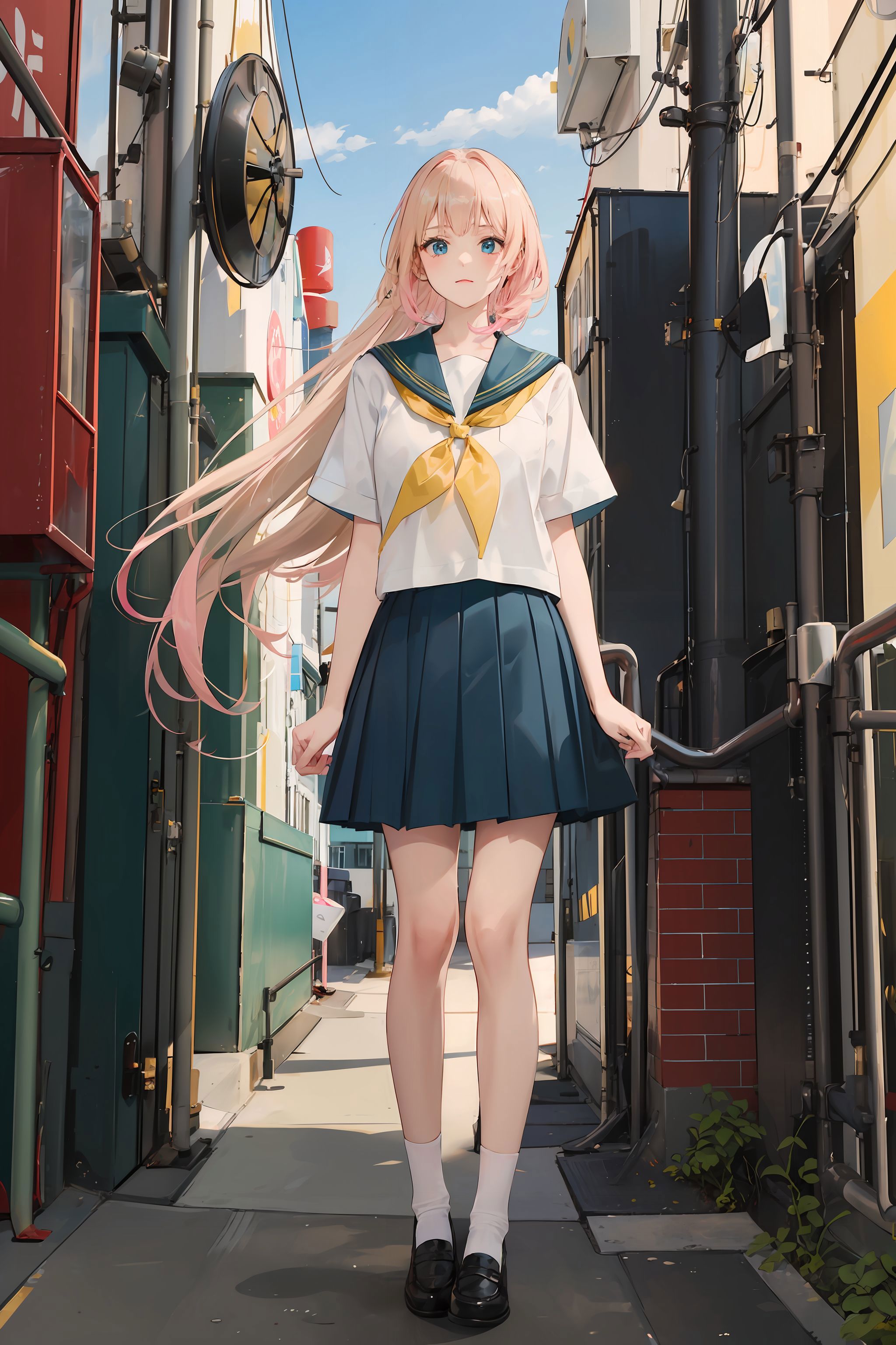Trigger words:1girl, long hair, white/black/green/blue/pink/yellow japanese school shirt, white/black/green/blue/pink/yellow sailor collar, white/black/green/blue/pink/yellow neckerchief, long/short sleeves, white/black/green/blue/pink/yellow skirt, socks, black shoes