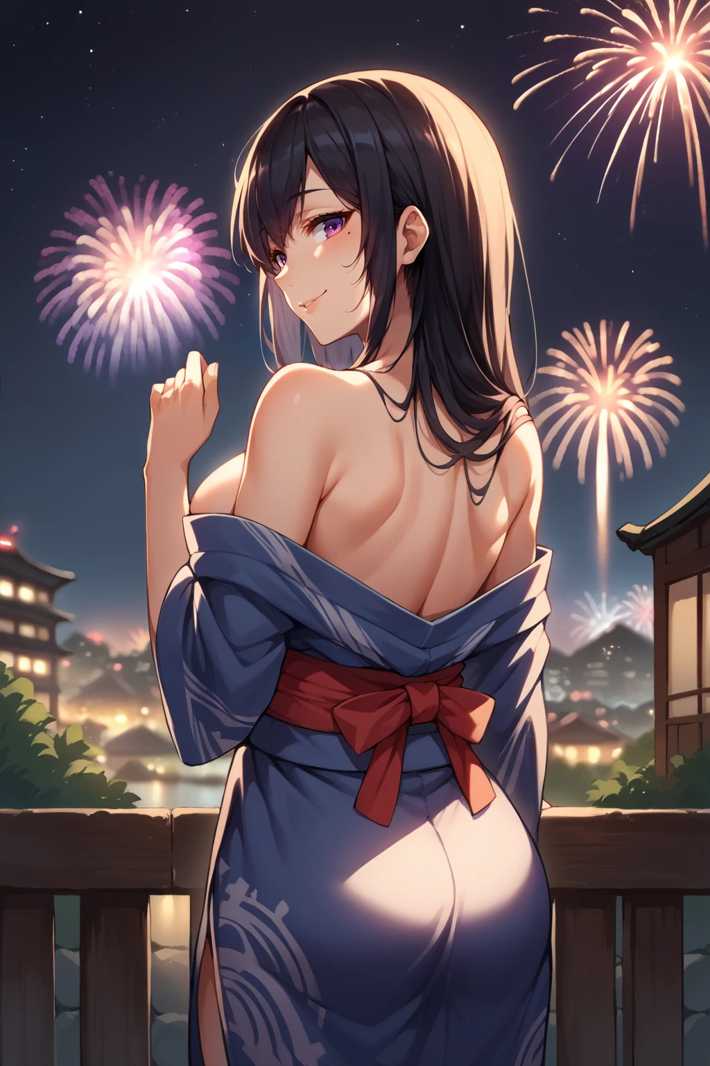ntsmg, mole under eye, large breasts, purple eyes, black hair, long hair