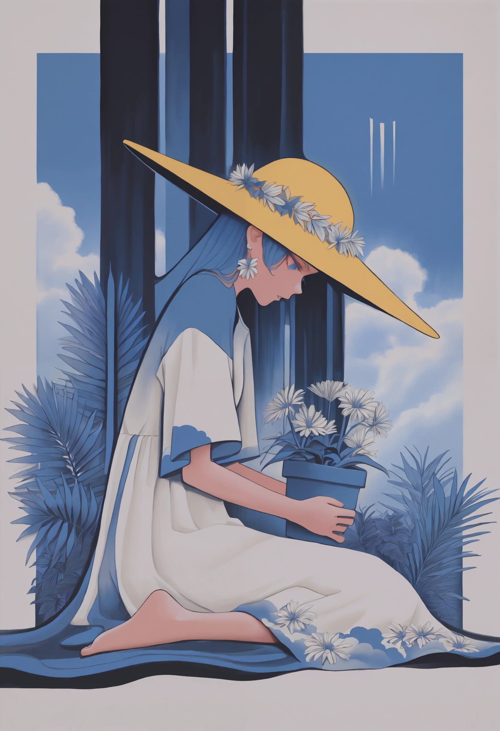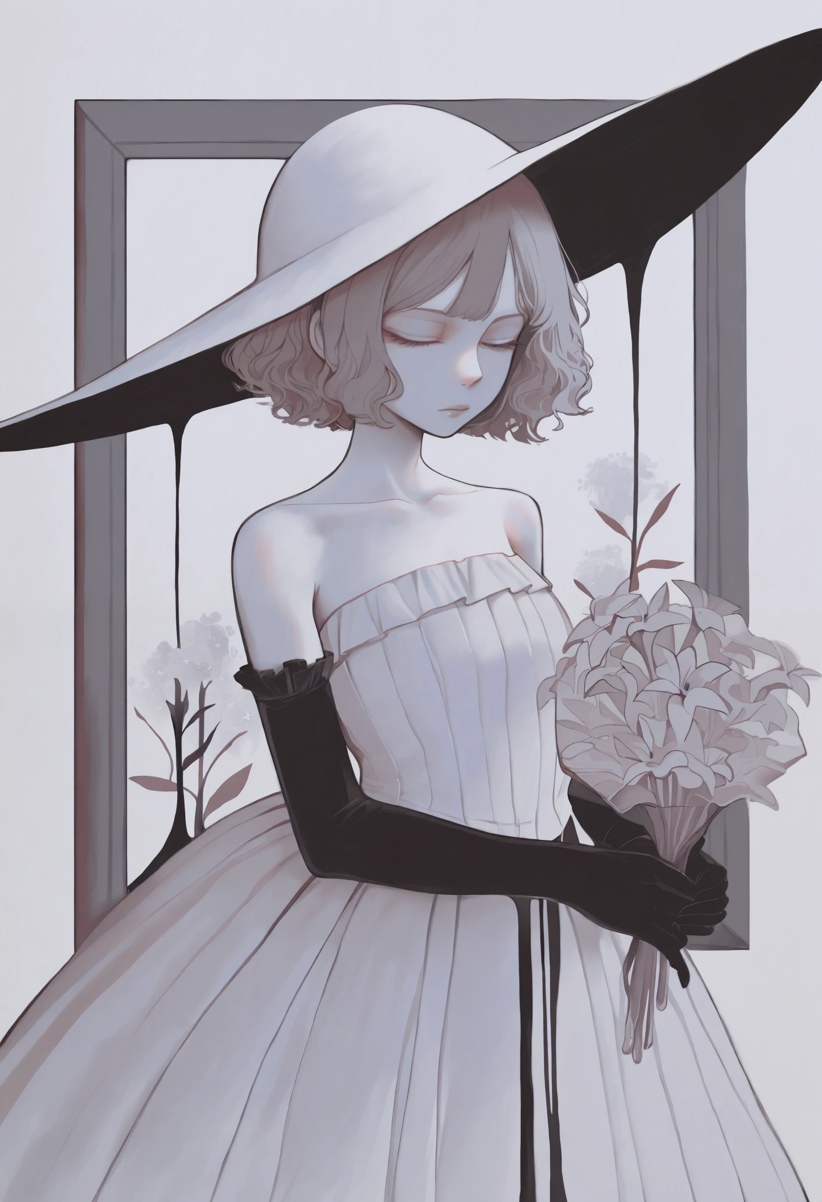 1girl, solo, traditional media, abstract, limited palette