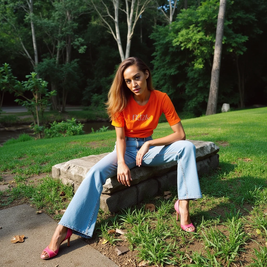 seated same idea, as the original, trained with image of woman seated. I tried to get the ai to learn the feet and heels. Seems to work better. For some reason flux messes up the feet hard.