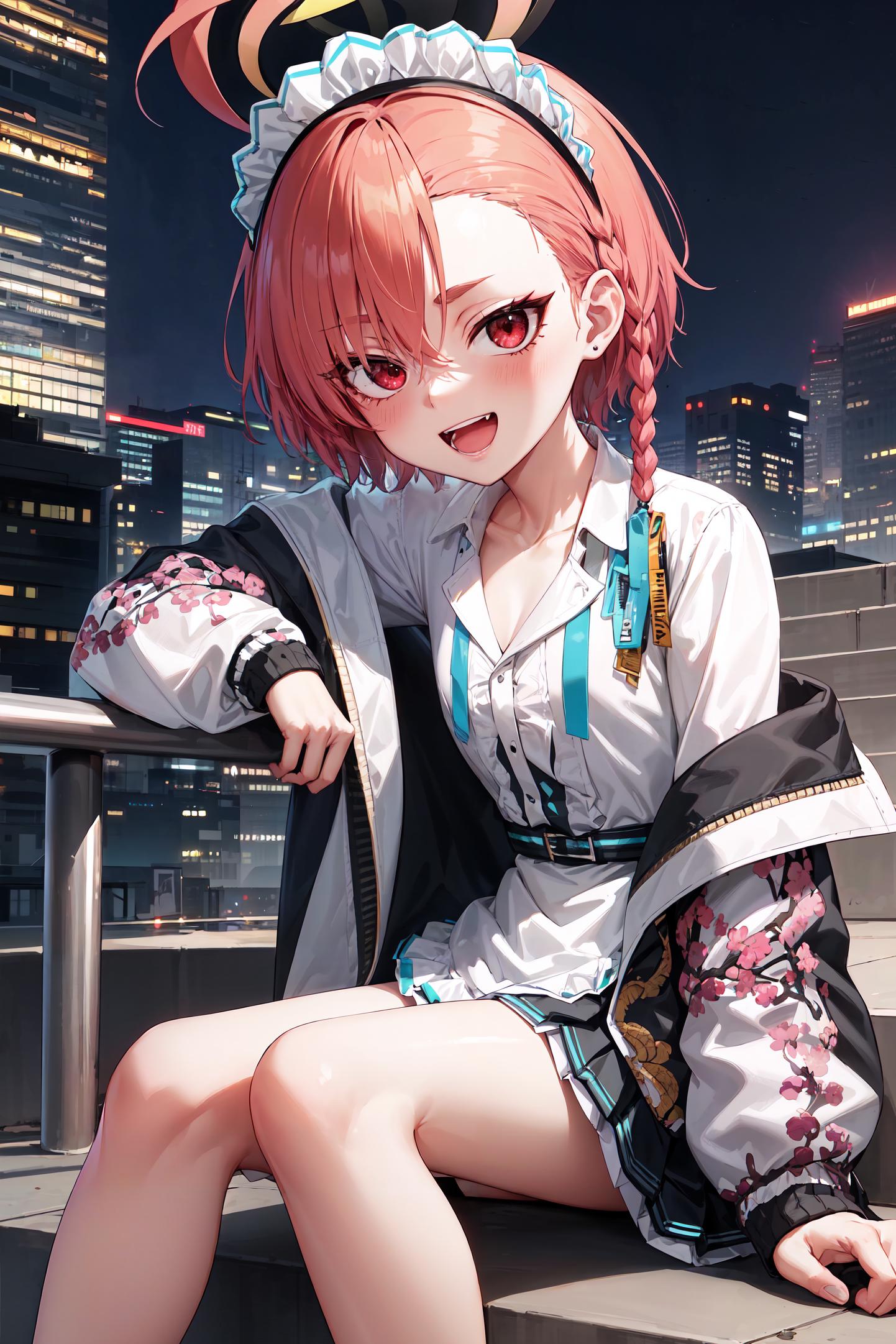 Outfit 2 : print jacket, collared shirt, long sleeves, apron, pleated skirt