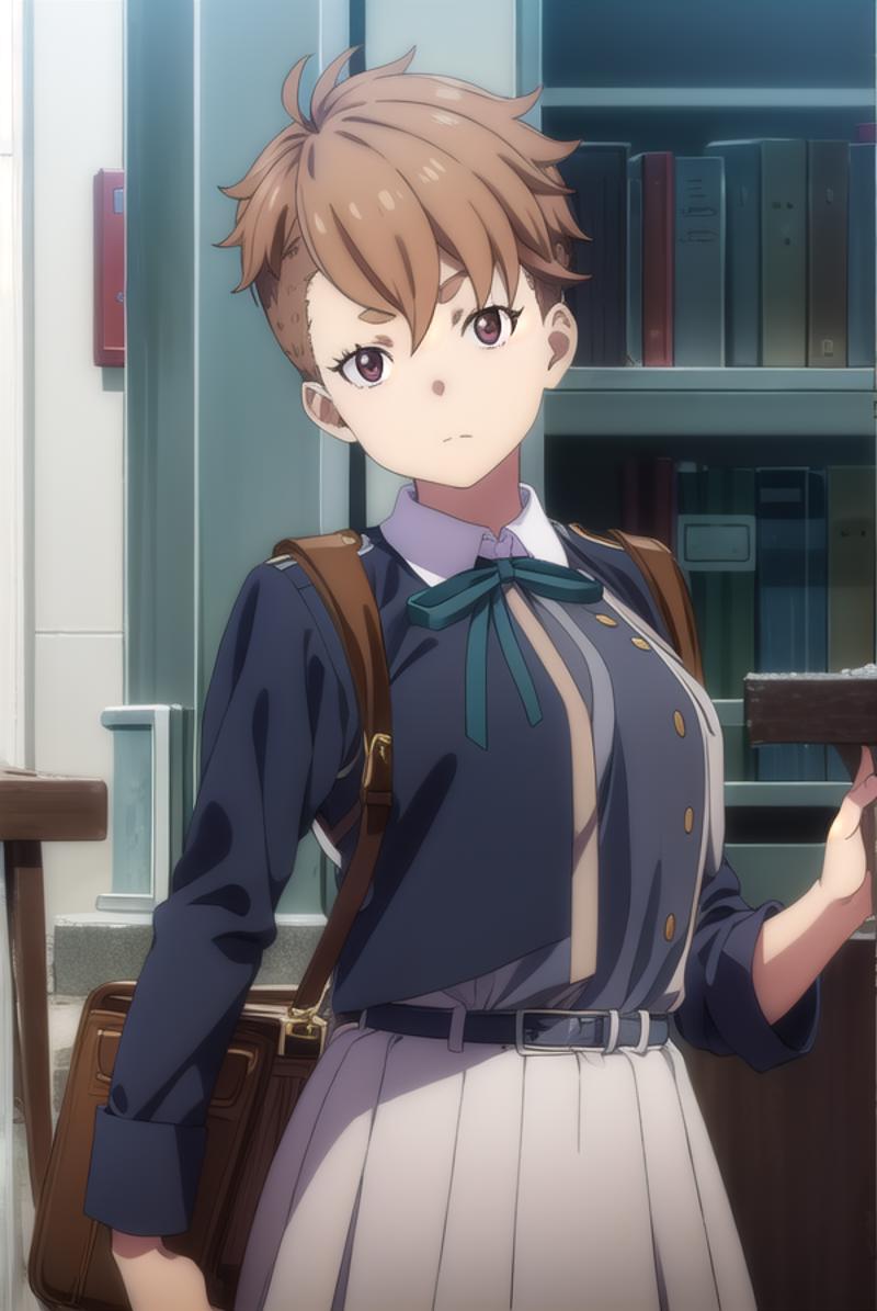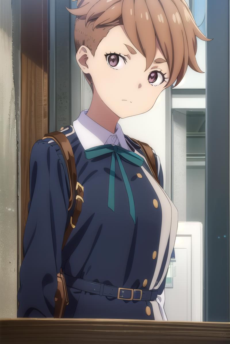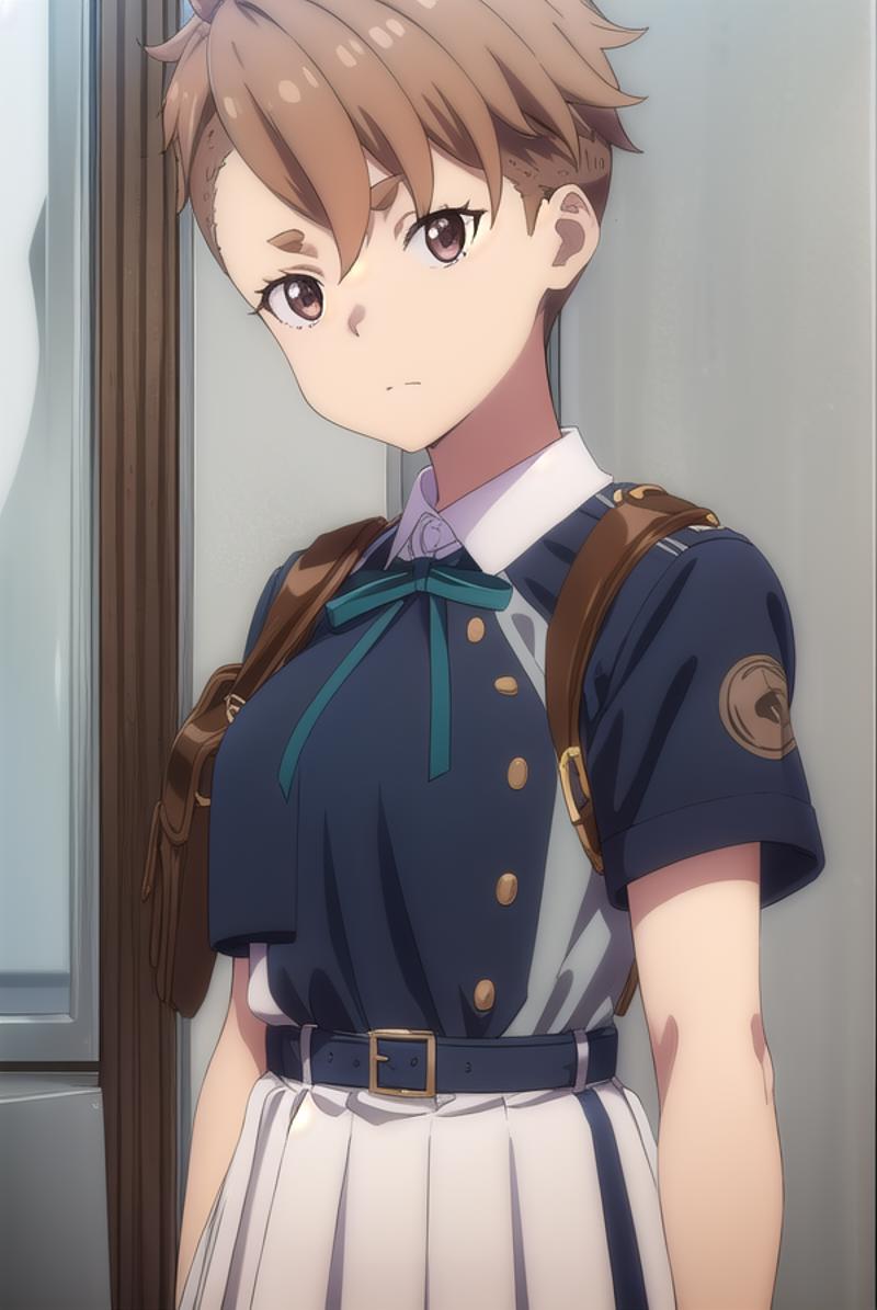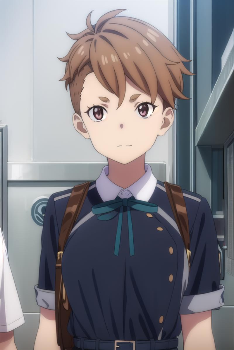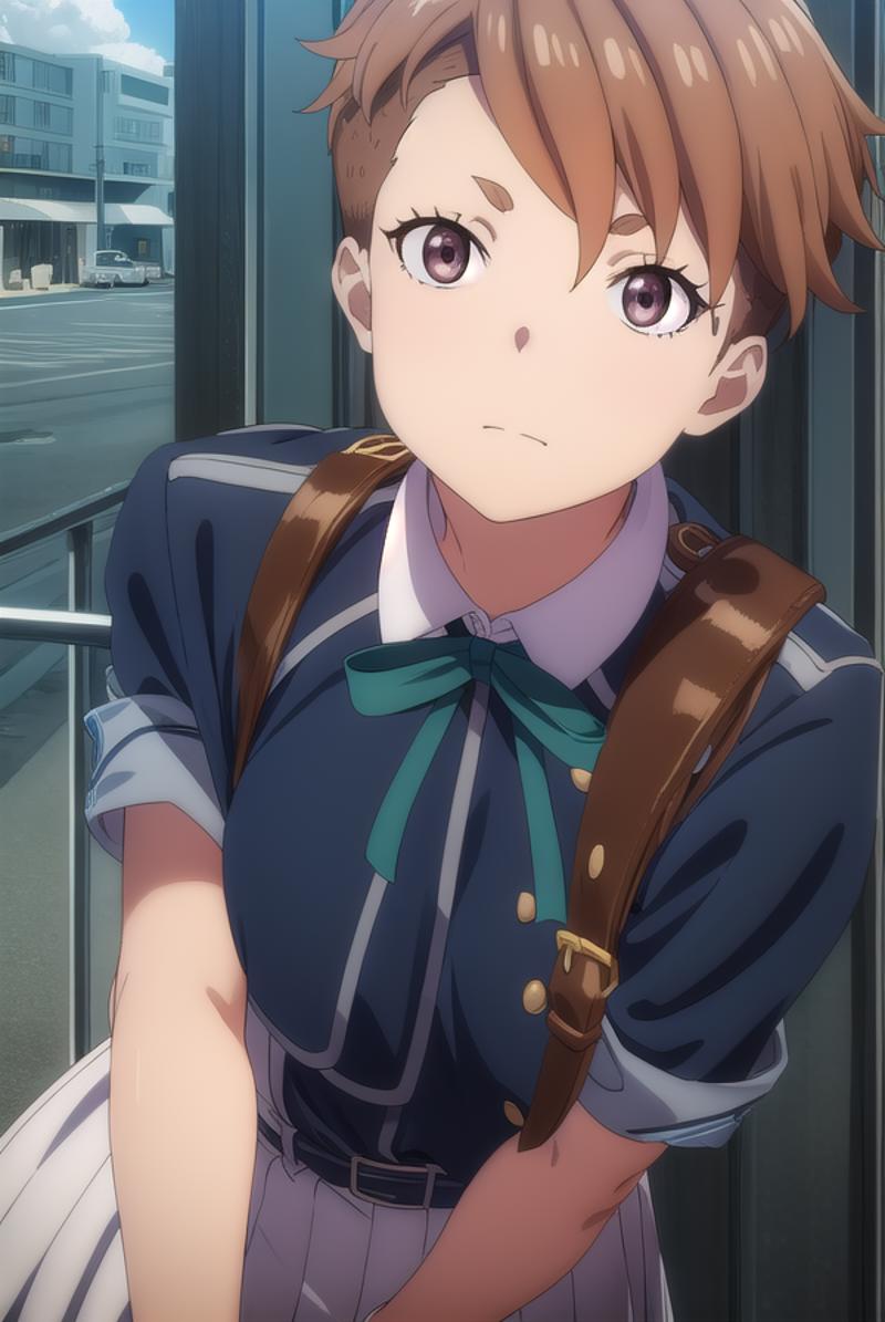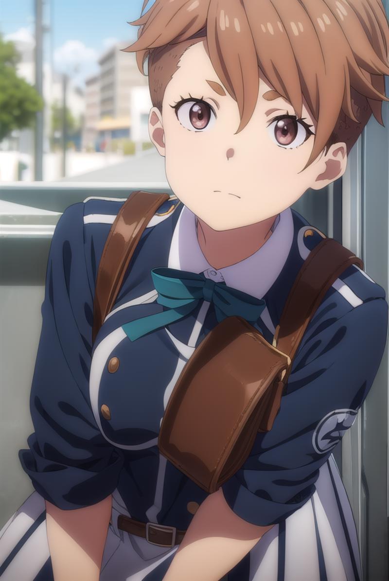 sakura otome, short hair, bangs, brown hair, (brown eyes:1.5),