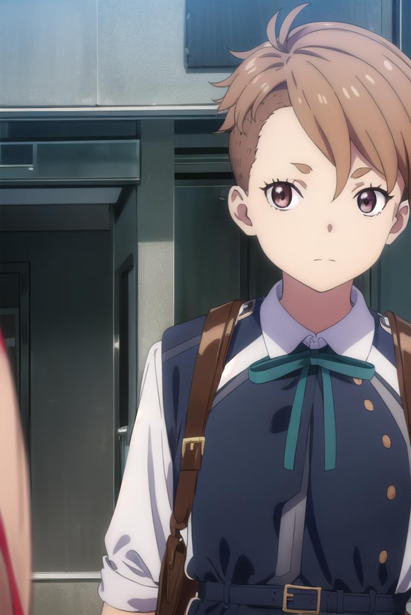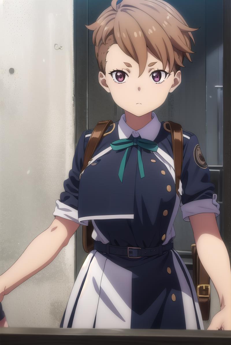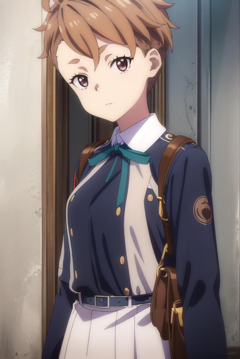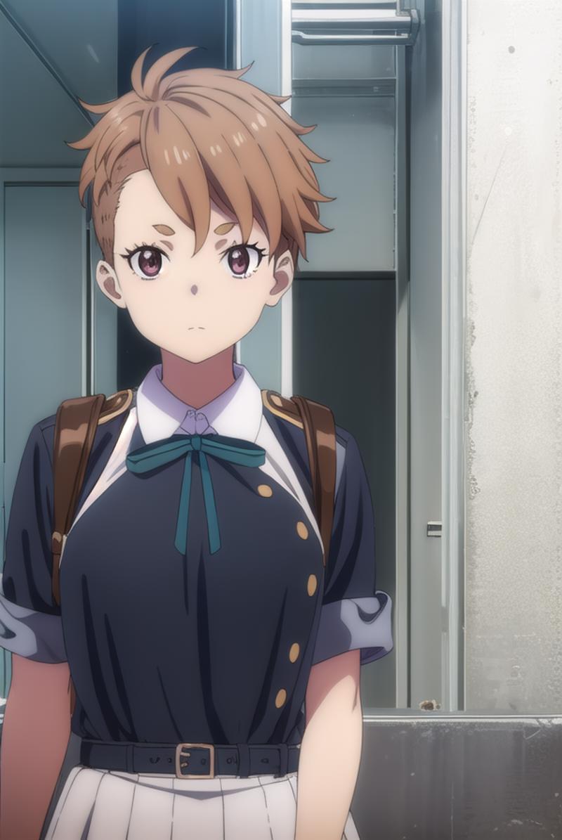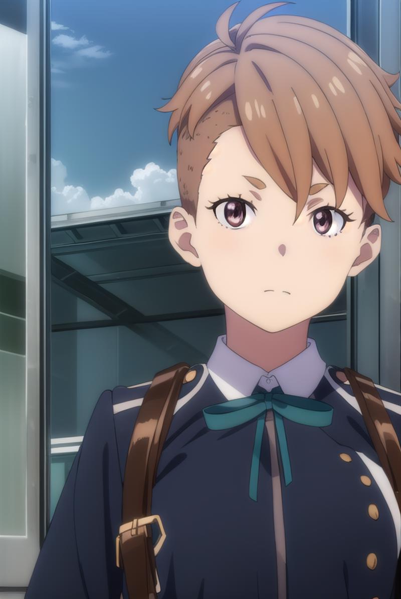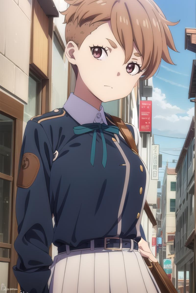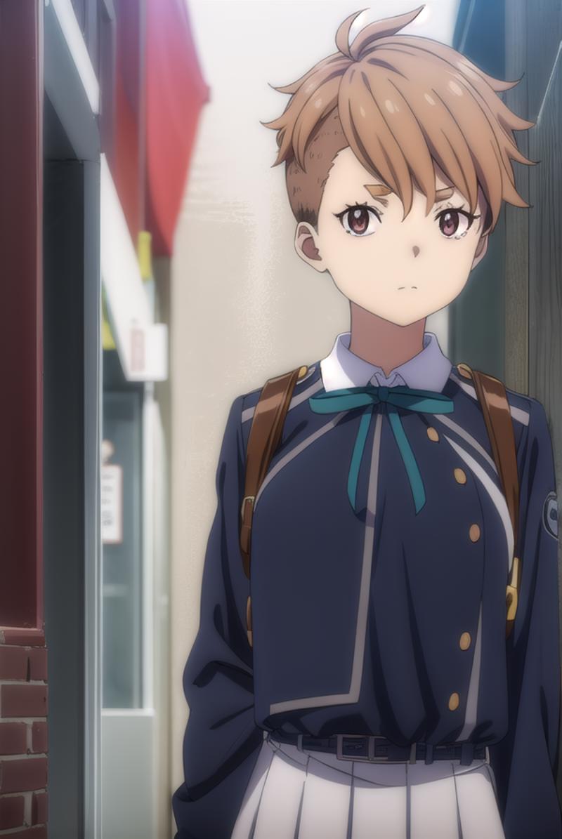 sakura otome, short hair, bangs, brown hair, (brown eyes:1.5),