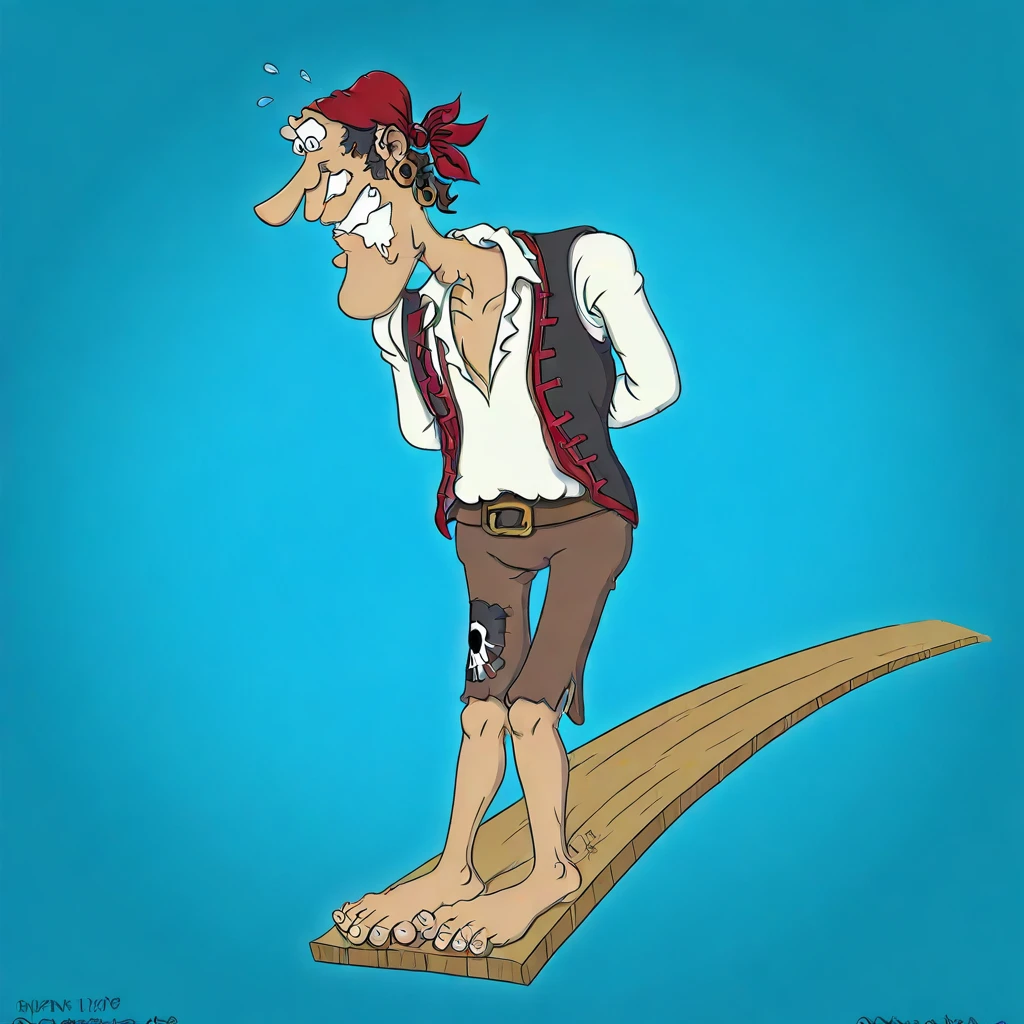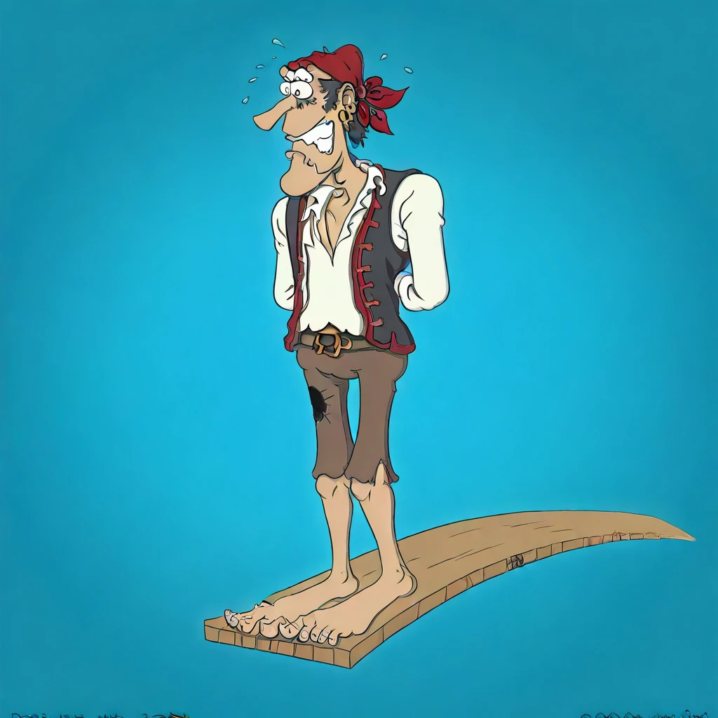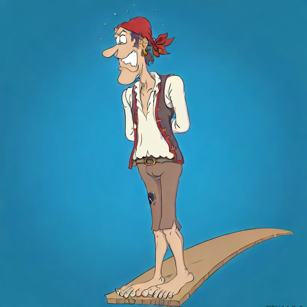 in this Lora, you can put a character on the walk the plank by adding a pirate ship or other like a native temple and also maybe put a predator (shark, crocodile and others) which is below the character which is at the edge on the plank