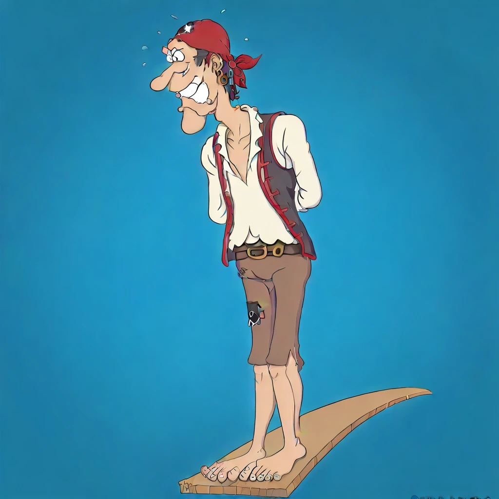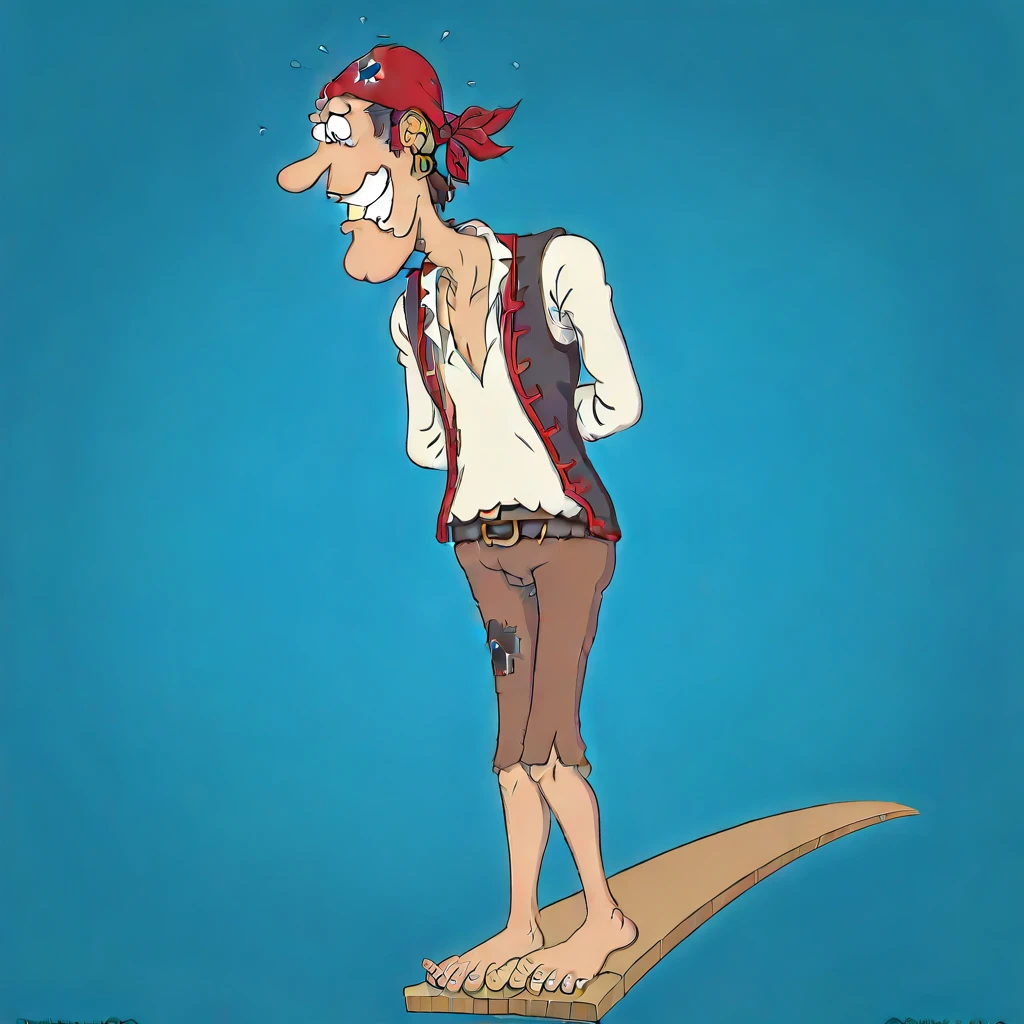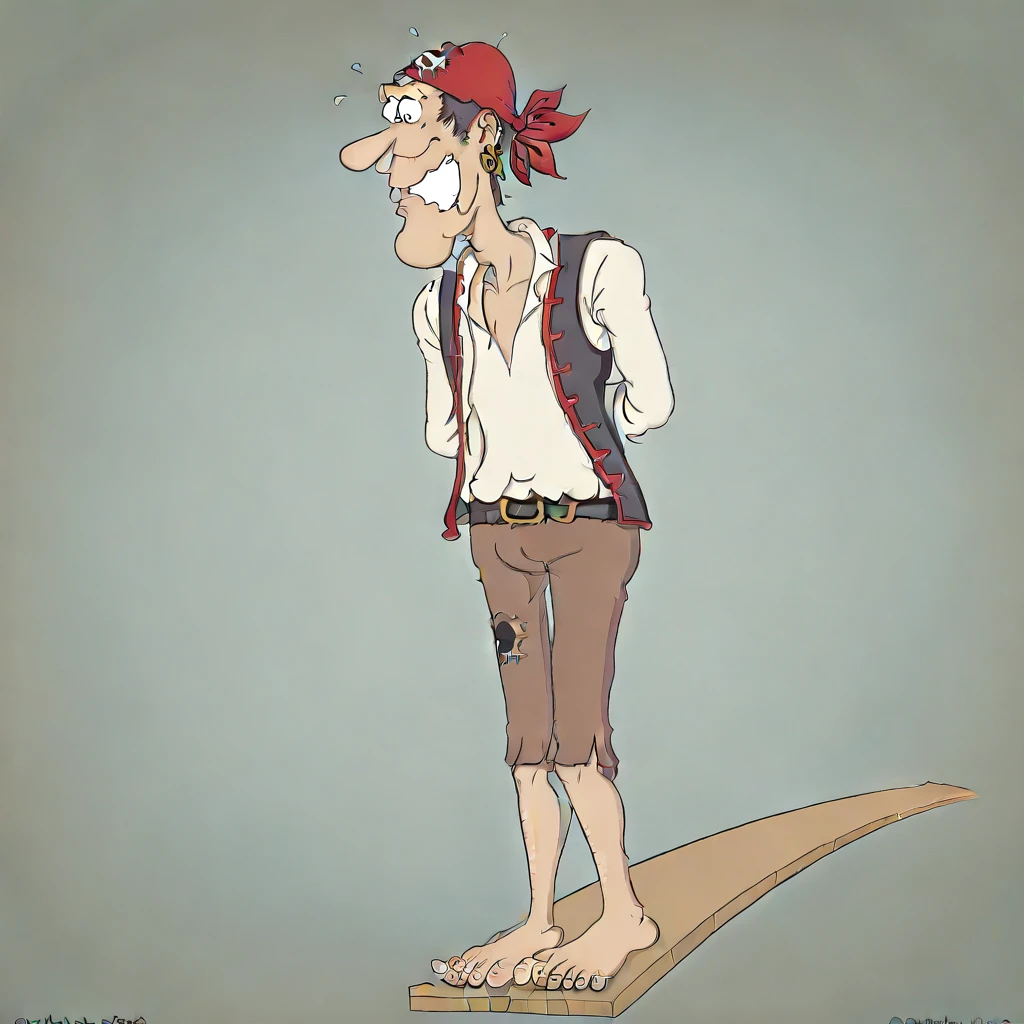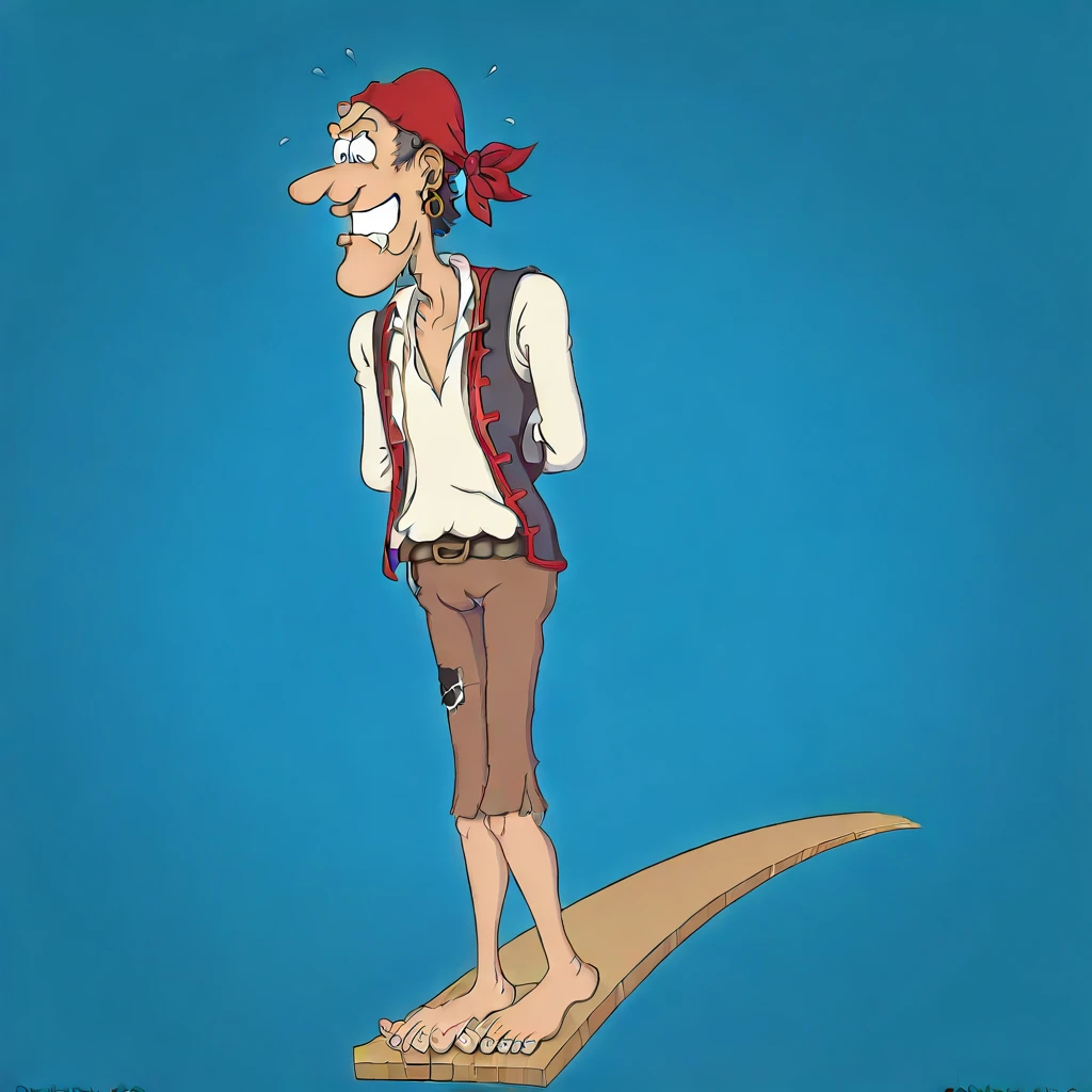 in this Lora, you can put a character on the walk the plank by adding a pirate ship or other like a native temple and also maybe put a predator (shark, crocodile and others) which is below the character which is at the edge on the plank