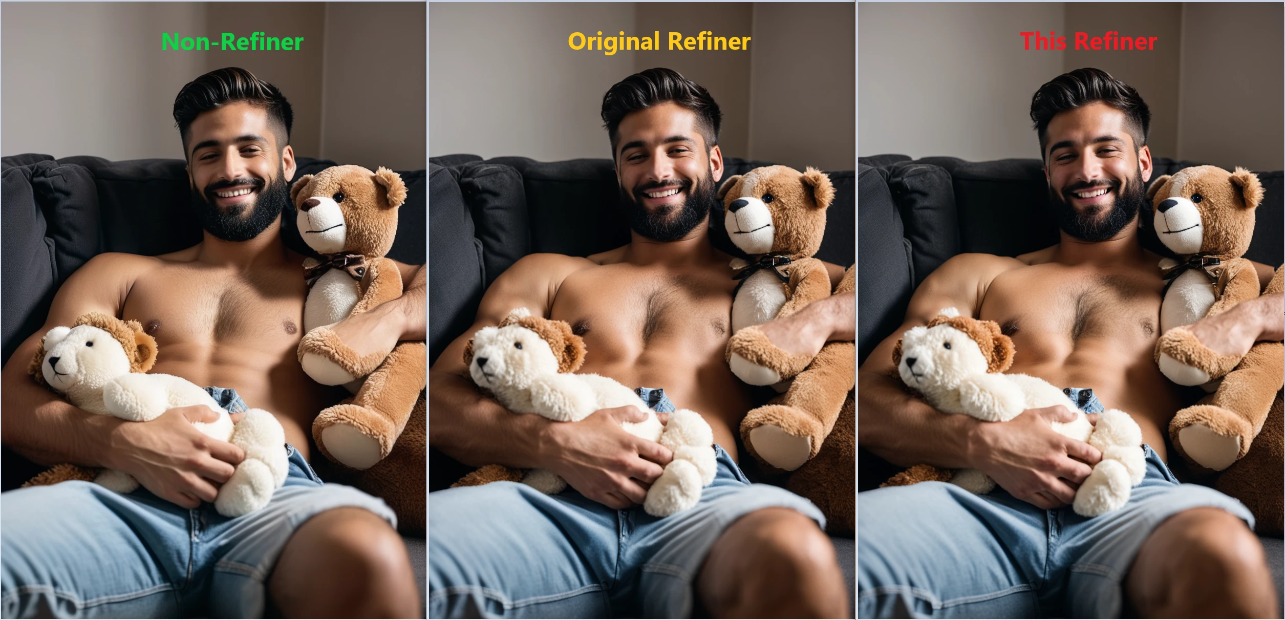 I just want to make models for use in face restore theAfter testing theIn testing baIn testing the base While testing the base model, I appended the previously trained female facial expression lora to the official Refiner model using comfyui's ModelMergeAdd. It turned out that it produced some changes.