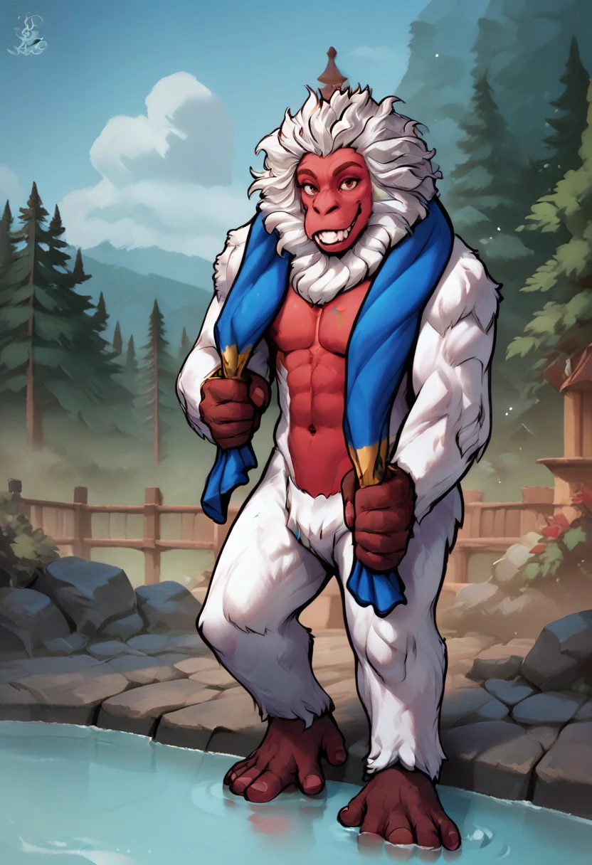 Hodan: hodan, baboon, white fur, red skin, monkey, furry, towel