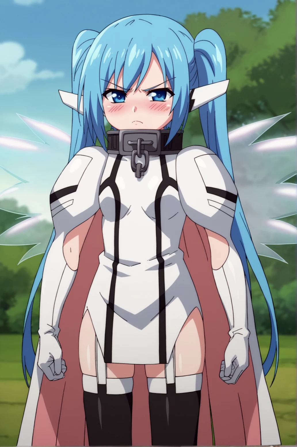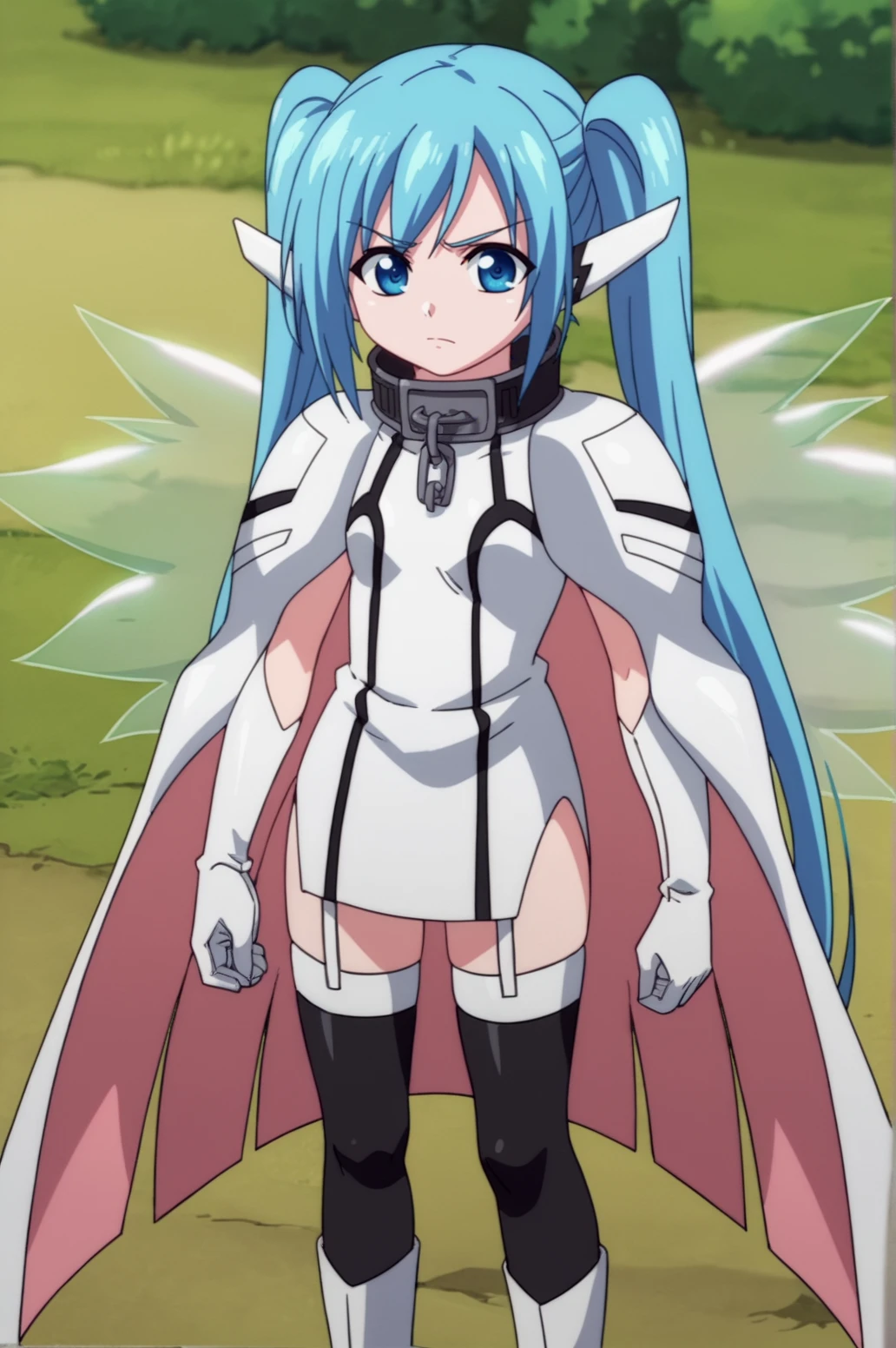 Trigger Words Optionnal: 1girl, cape, collar, gloves, long hair, metal collar, solo, thighhighs, twintails, wings