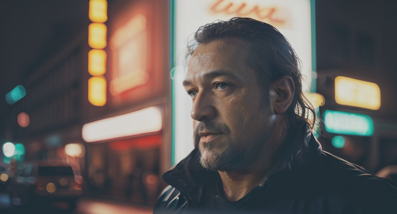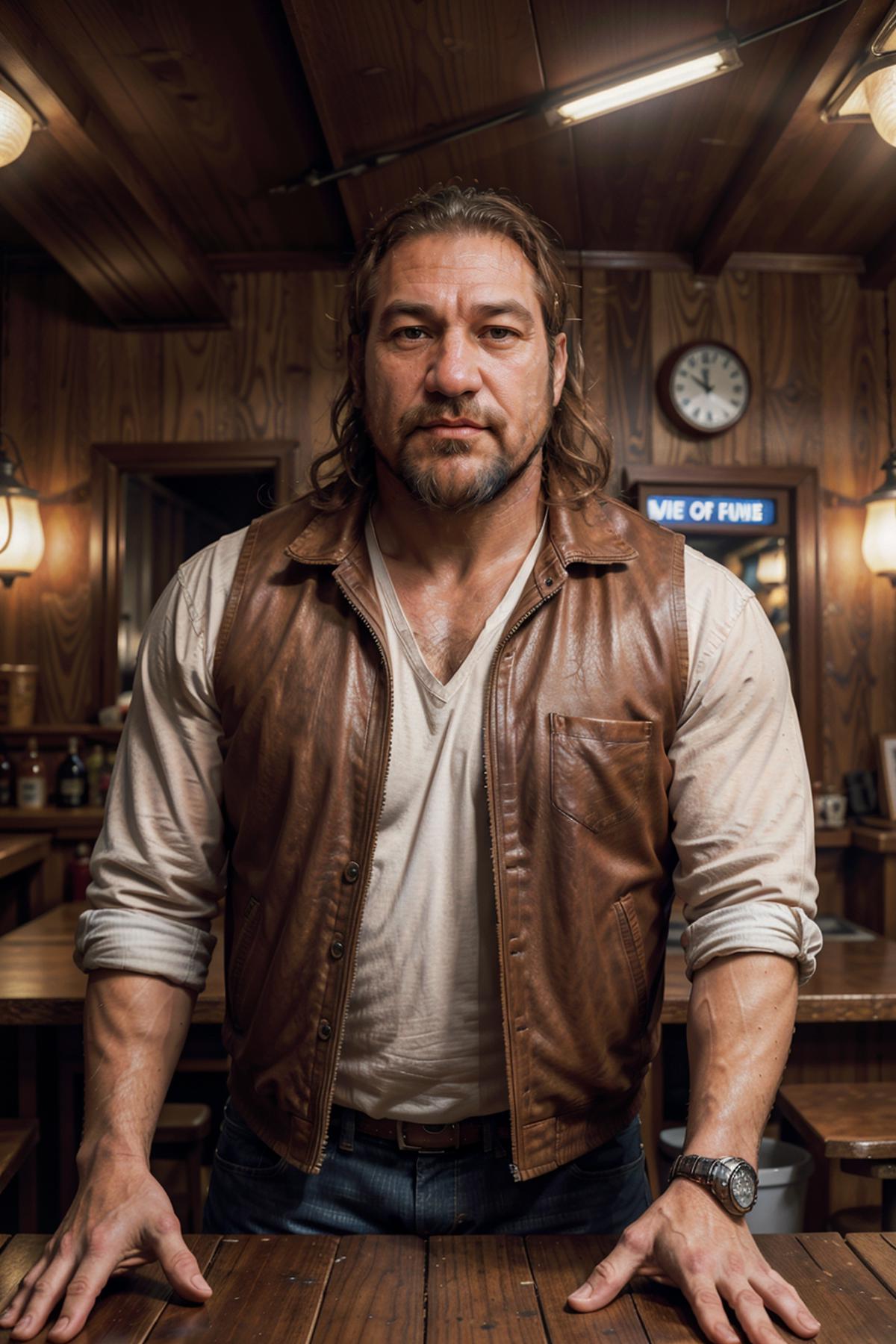 Noah's concept was basically the big guy in a biker bar. I couldn't get the full beard his training data goes with, but otherwise, he's got a lot of character.