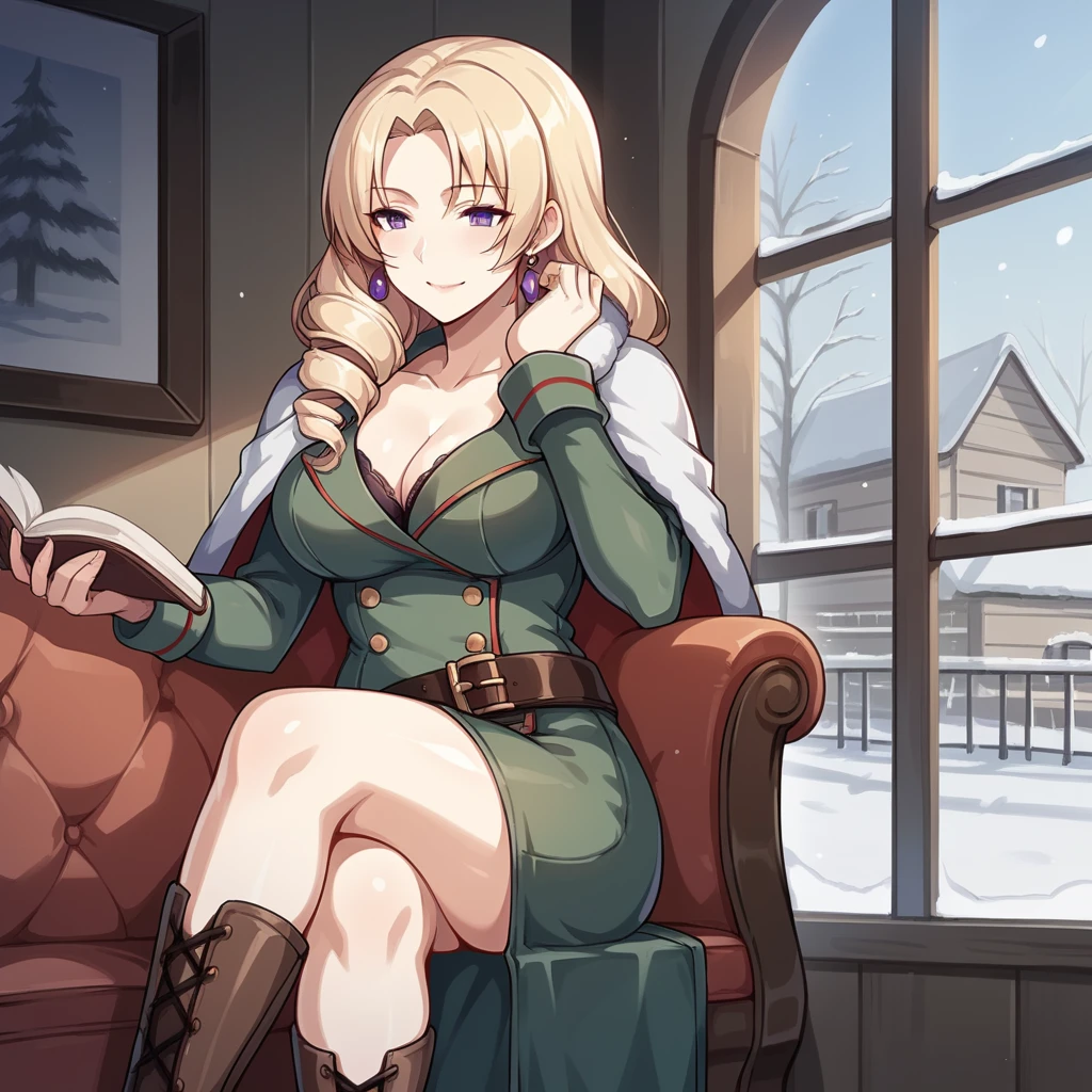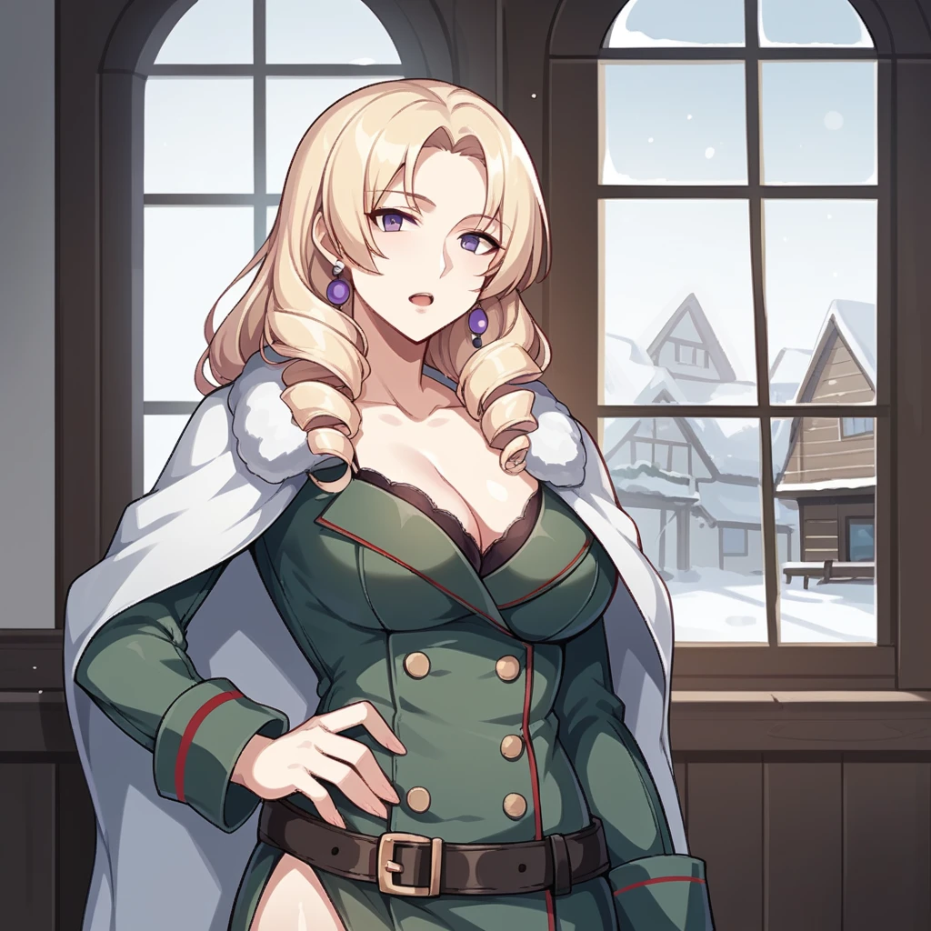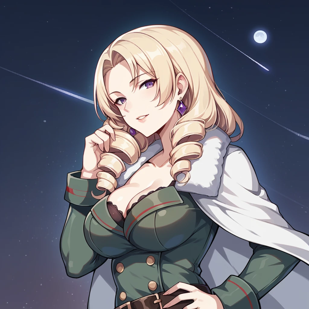 Cocolia, Ccl_Def, purple eyes, blonde hair, drill hair, long hair, earrings,The Outfit: