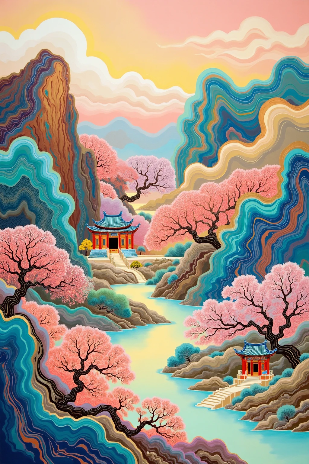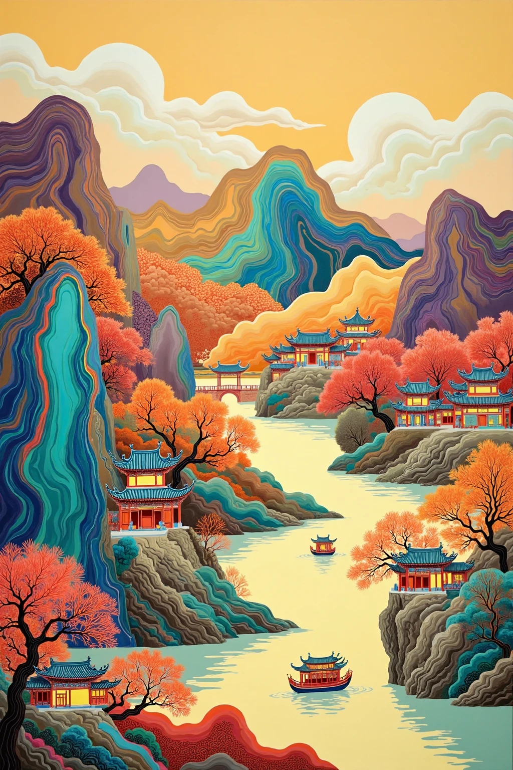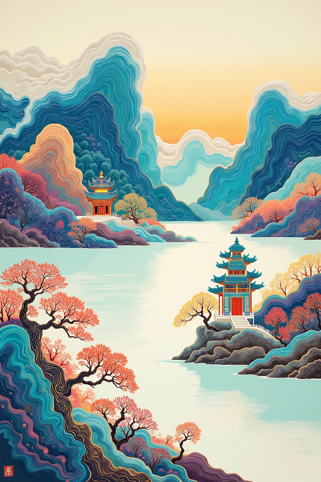 Base Prompt:Rich colors and traditional Chinese landscape elements