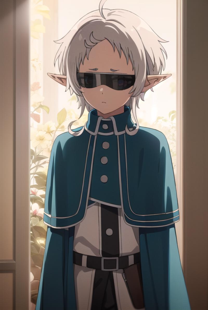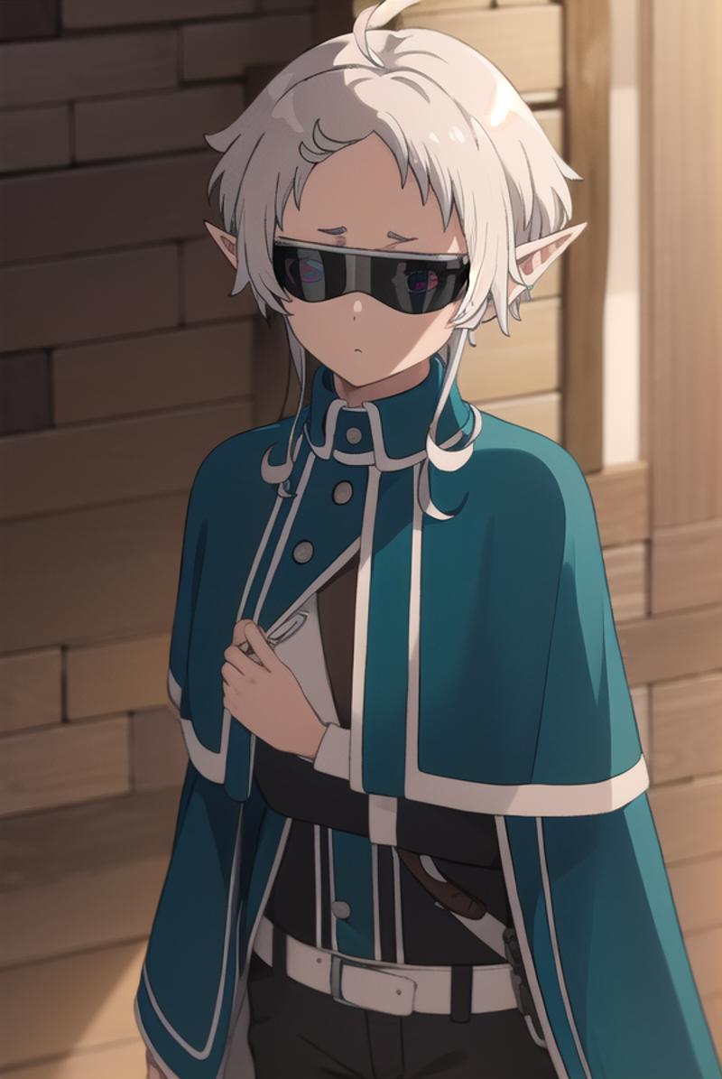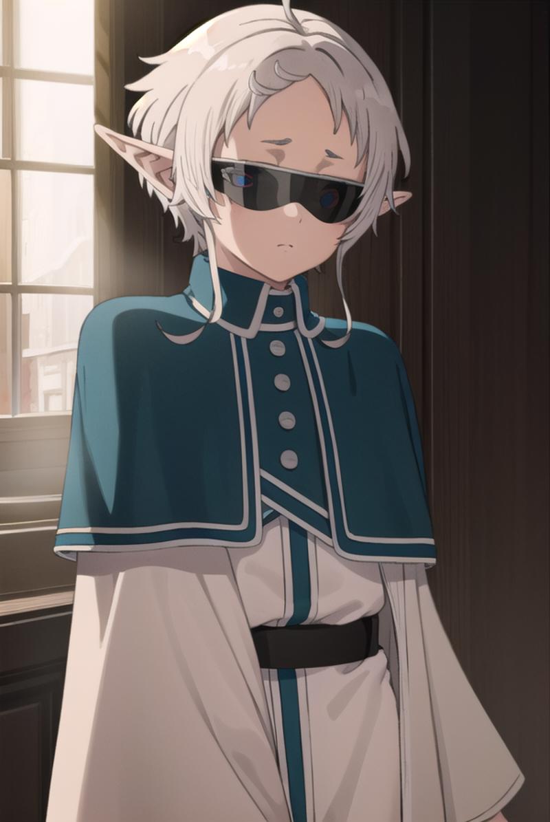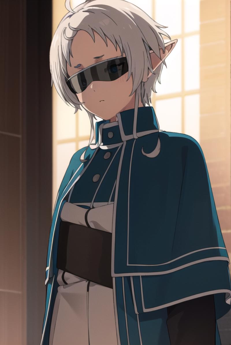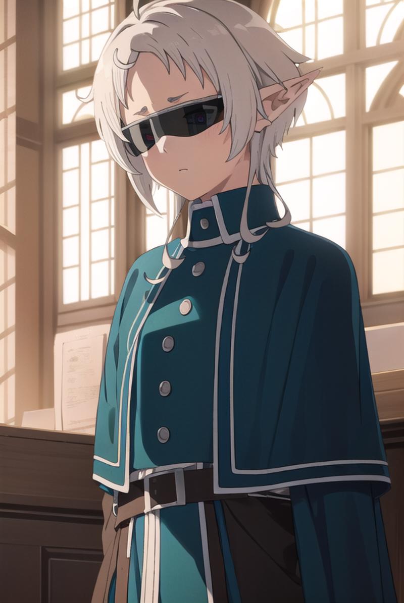 sylphy, short hair, ahoge, white hair, pointy ears, (sunglasses:1.5), elf,