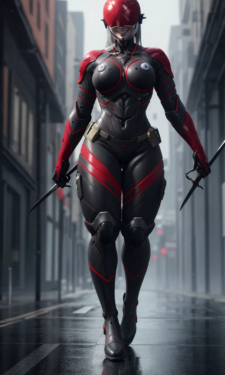 Good prompts to use are cyber ninja, armor, white hair, black and red suit