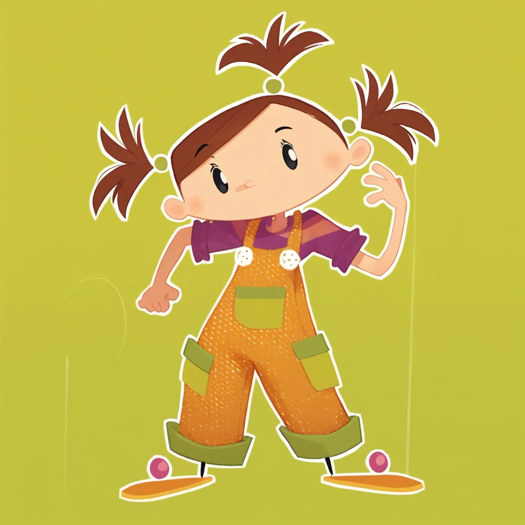 overalls, blue t-shirt, sleeve rolled up,