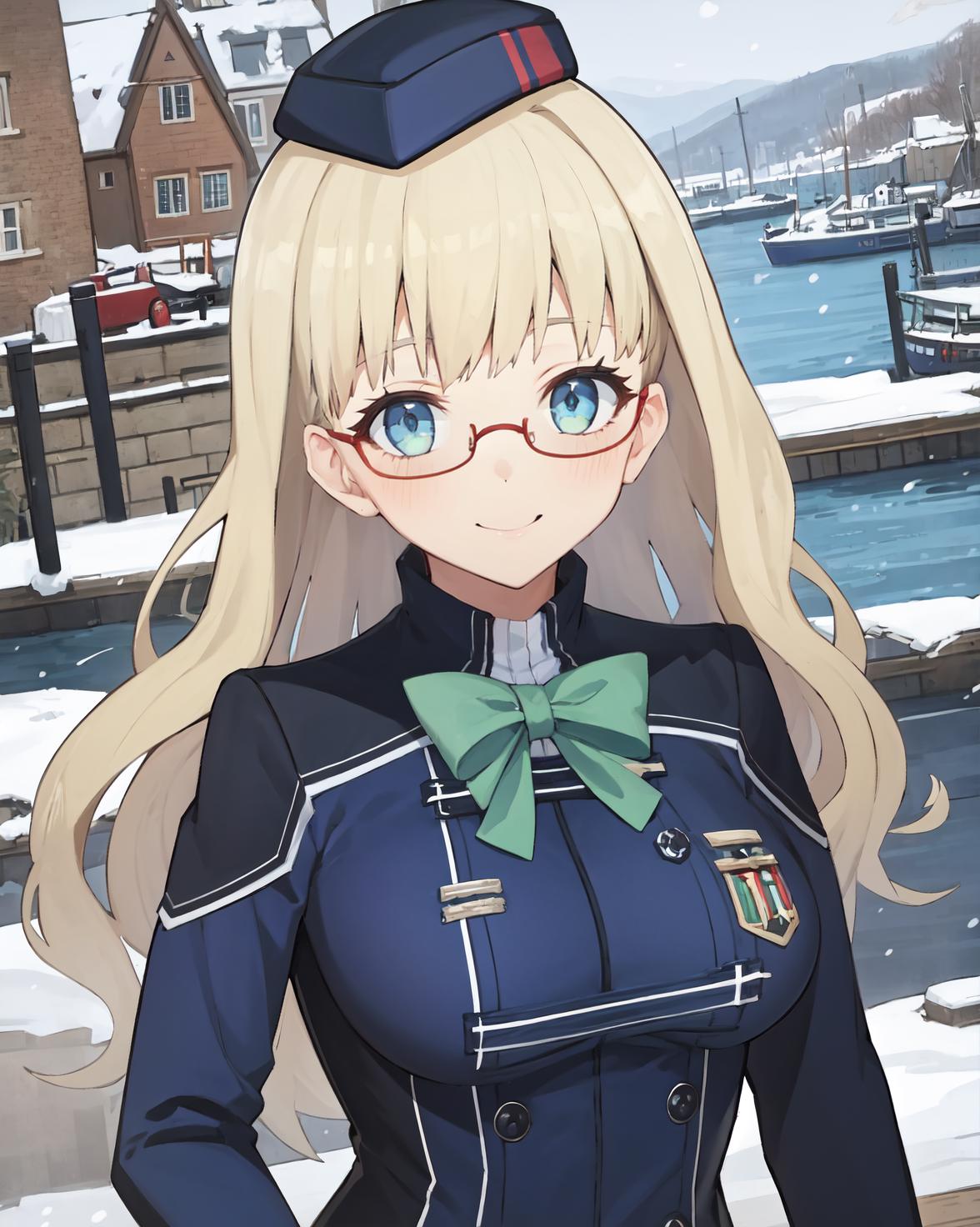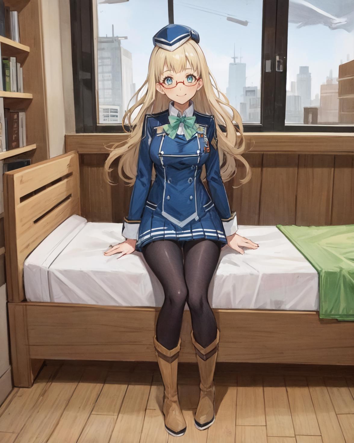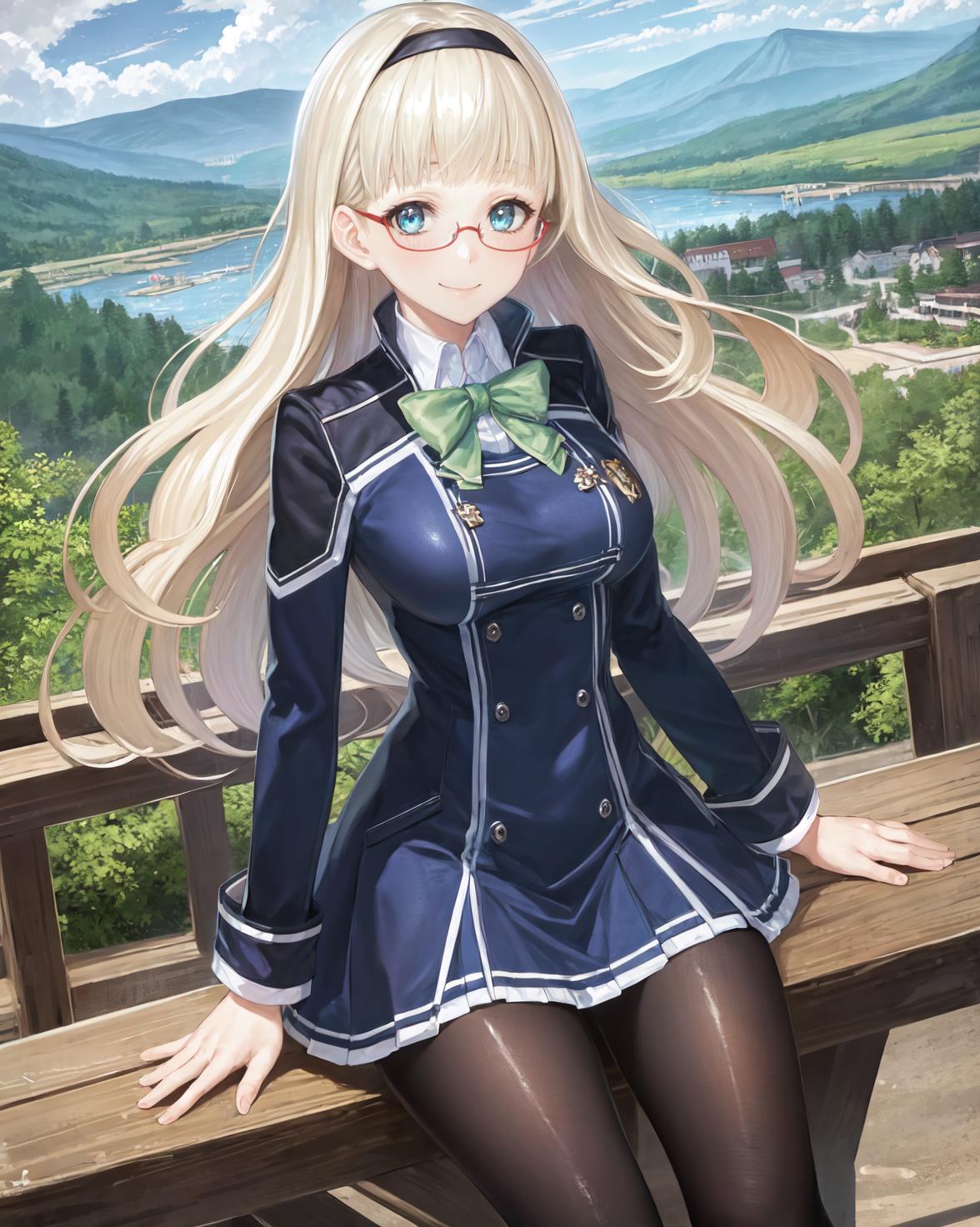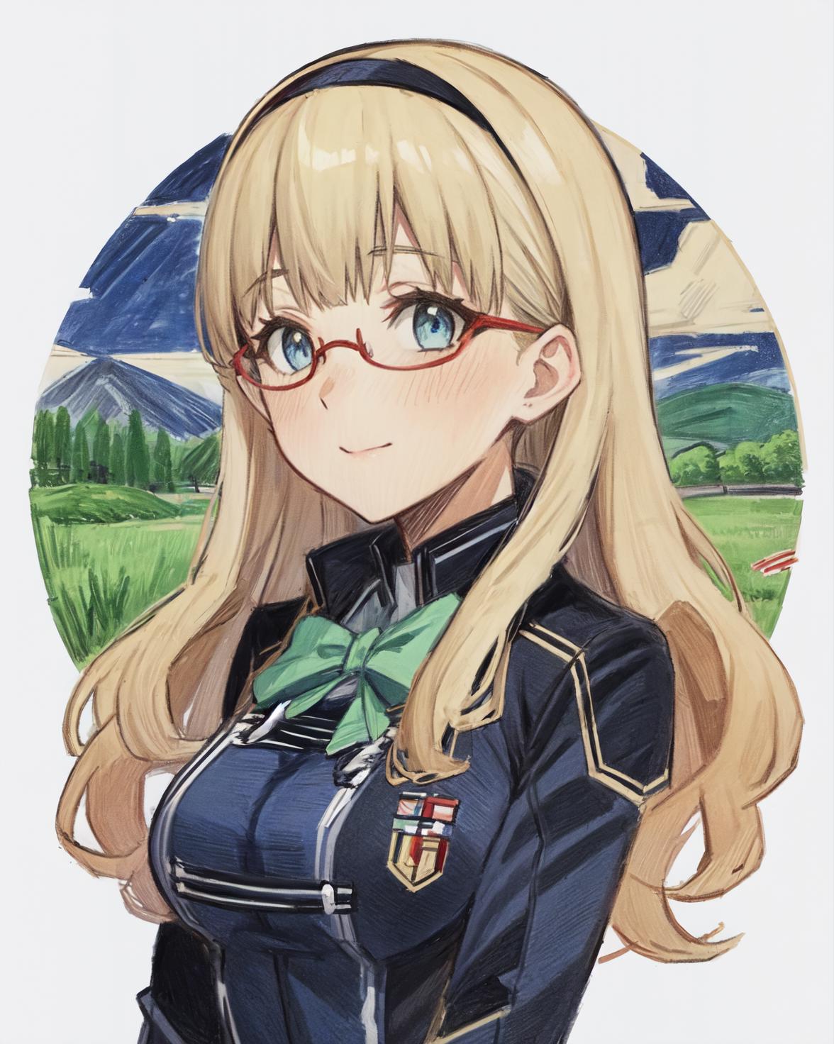 <lora:LouiseUniform-000008:0.9>, Louise, blonde hair, long hair, blue eyes, medium breasts, glasses, red-framed glasses,