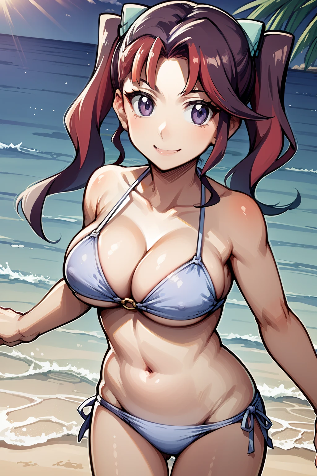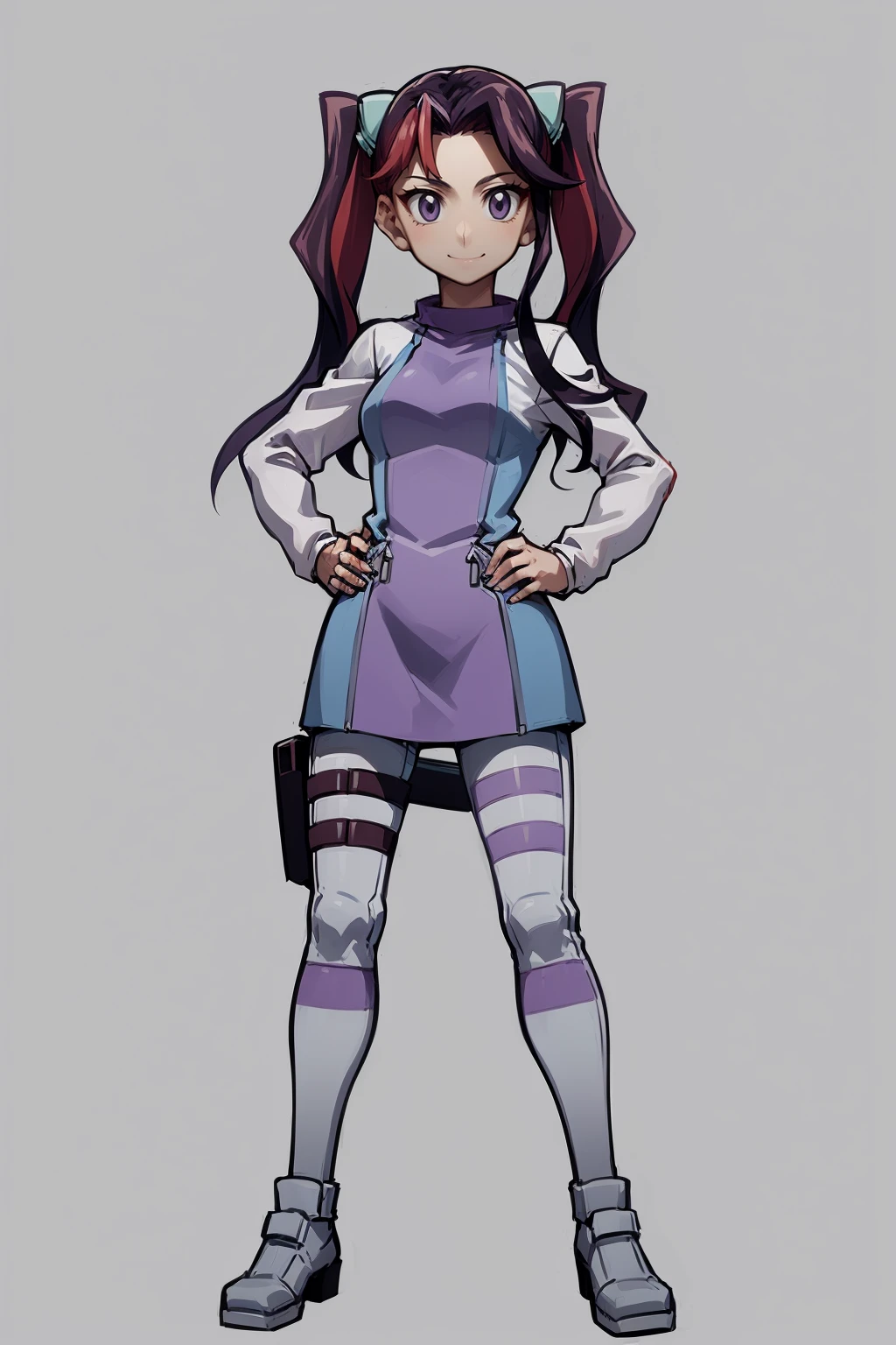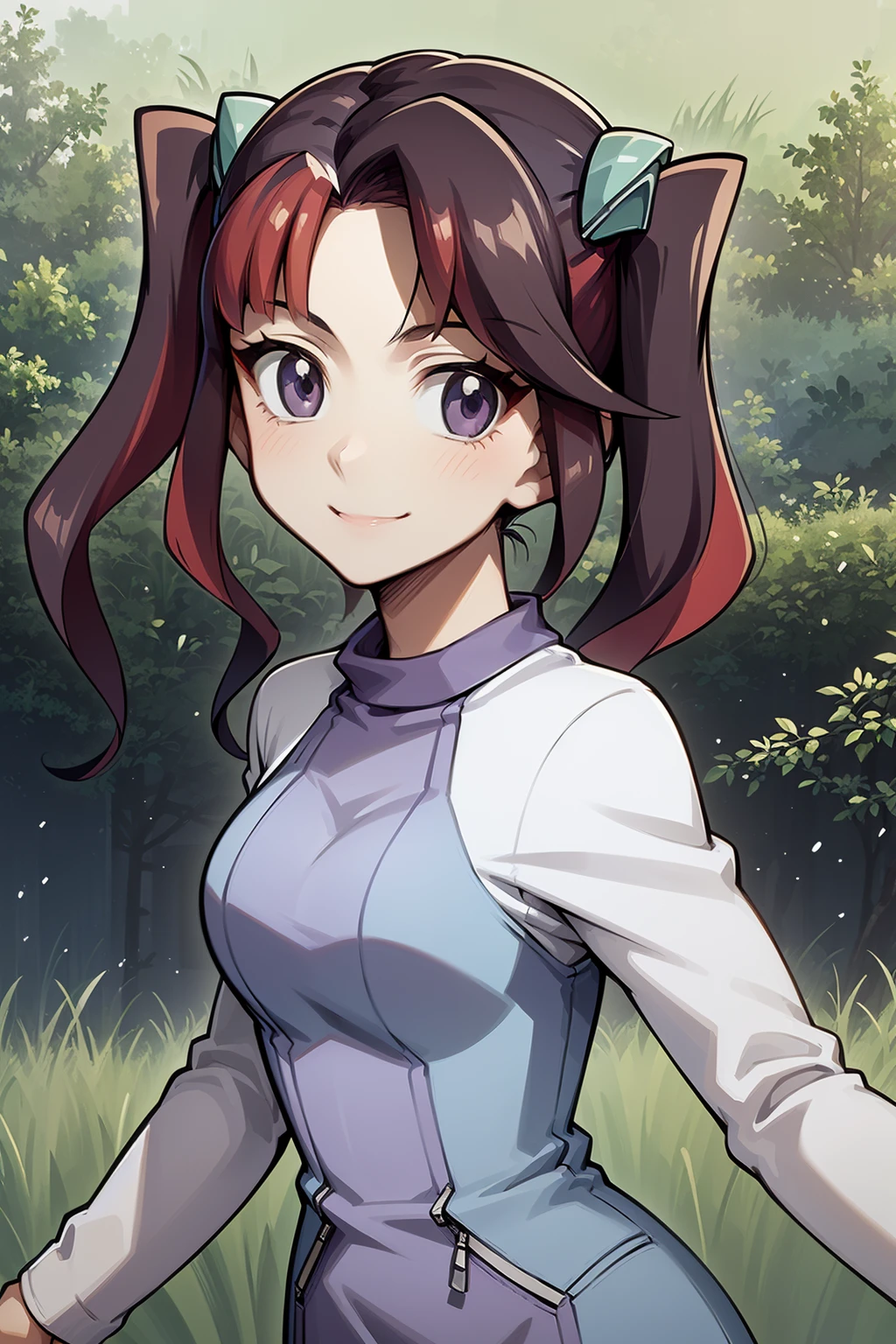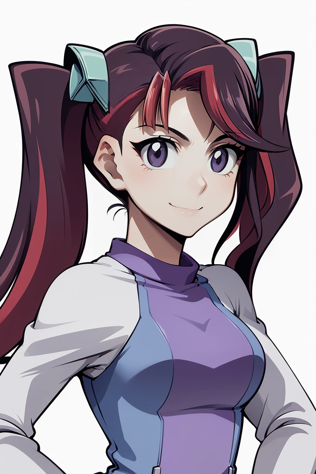 Basic prompts : 1girl, ray akaba,red hair, twintails, hair ornament, purple eyes, long hair