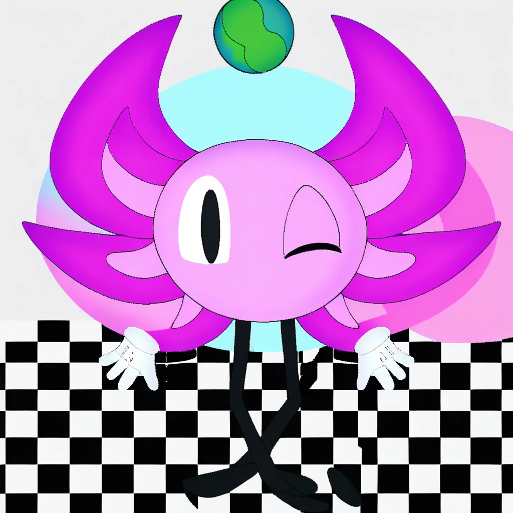 axolotl, pink head, black eyes, black legs, Optional for his appearance