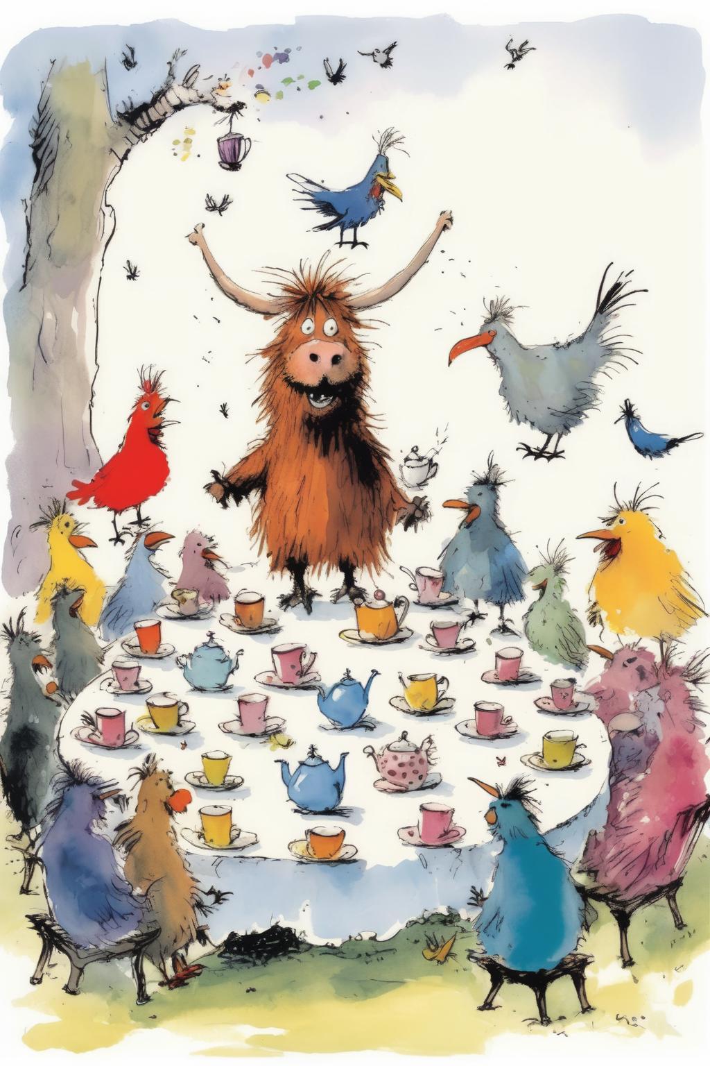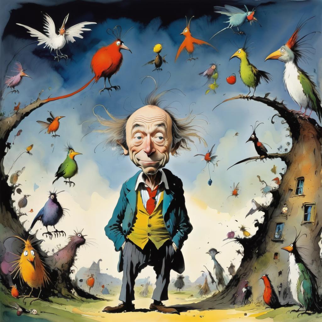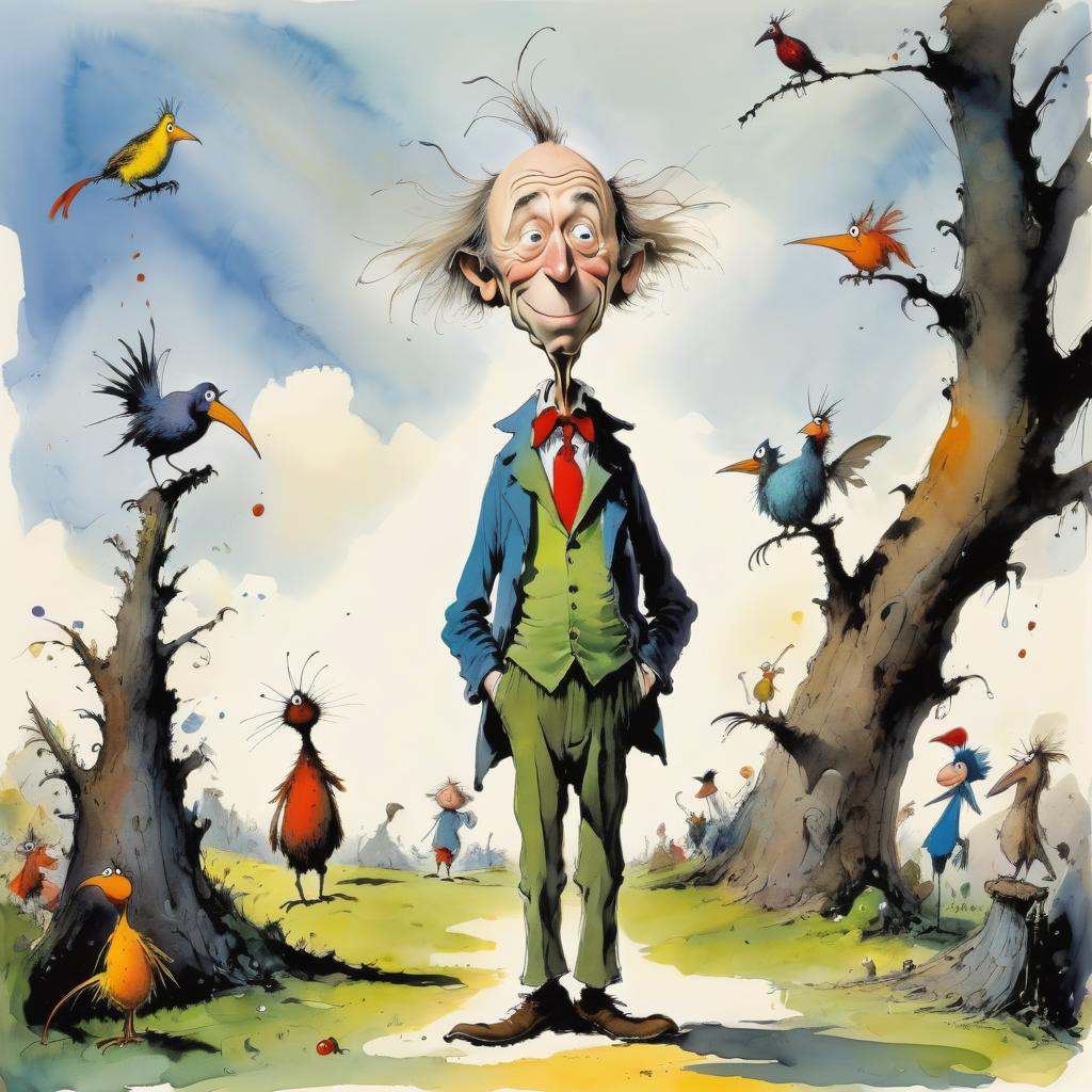 Quentin Blake is a British illustrator and children's book author known for his distinctive and whimsical illustrations. Born in 1932, Blake's illustrations are instantly recognizable for their energetic and expressive style.