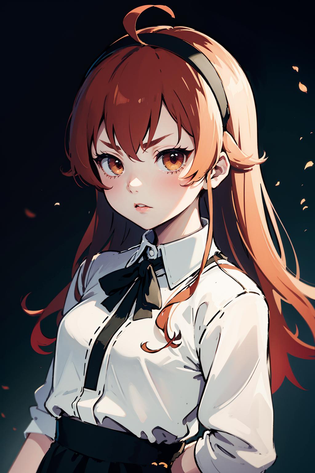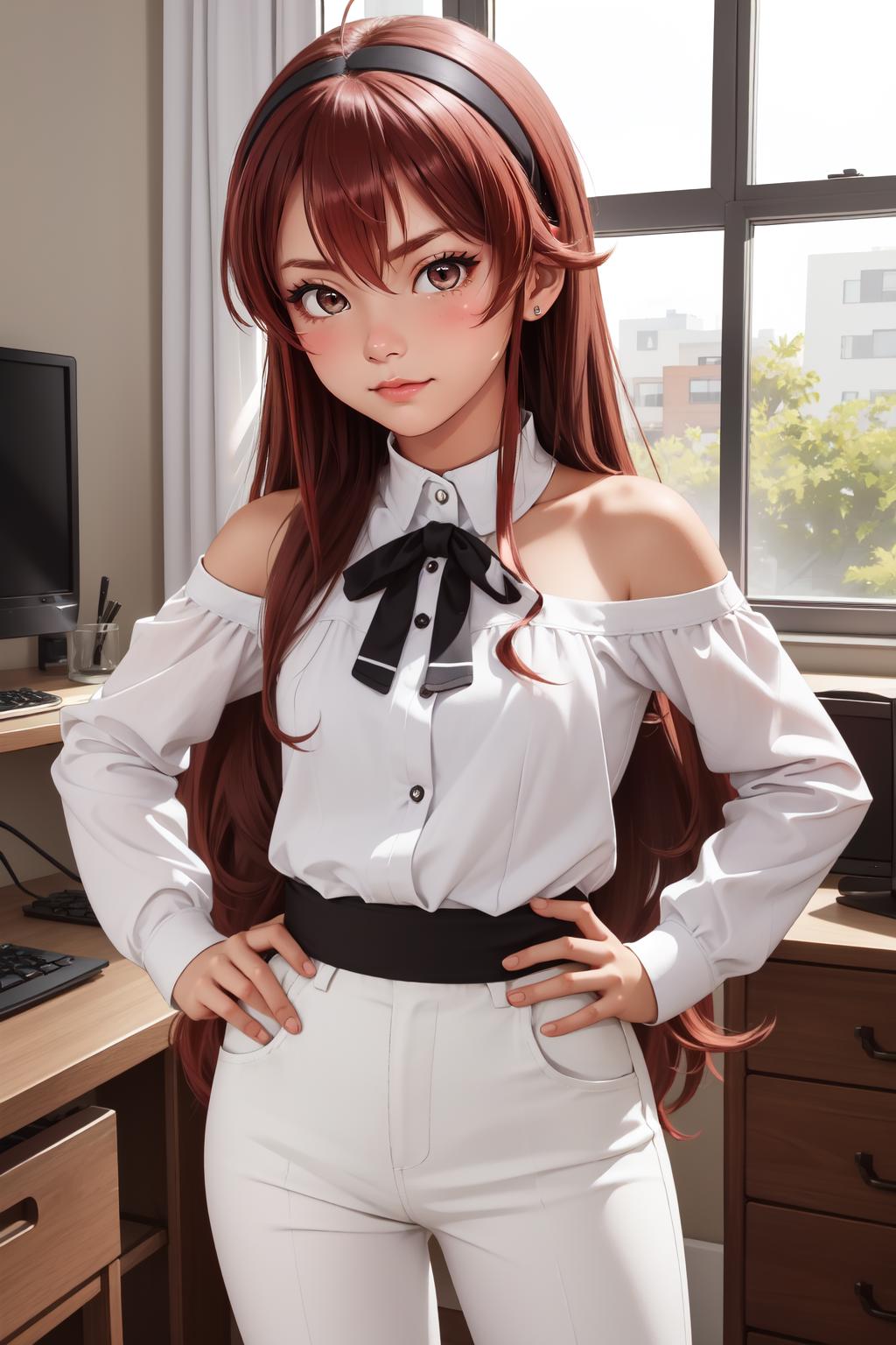 eris_greyrat, ahoge, hairband, black hairband, shirt