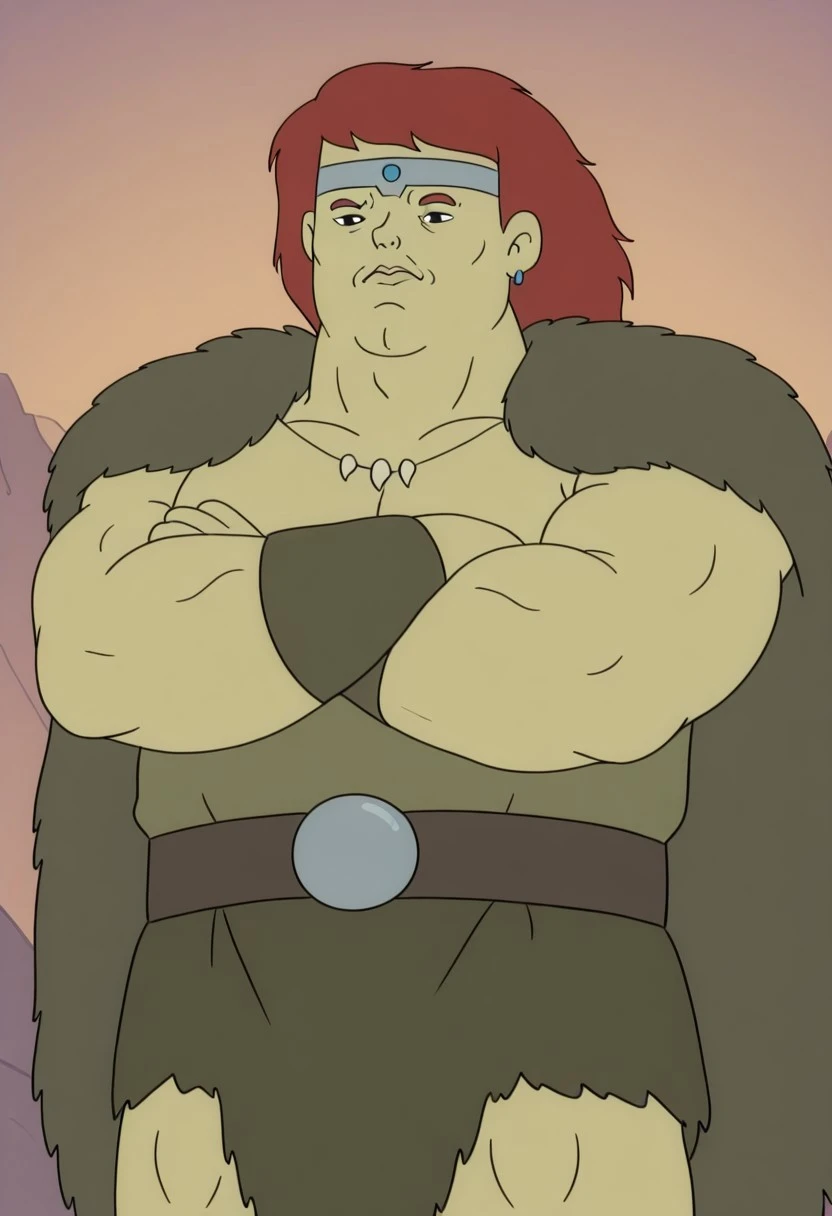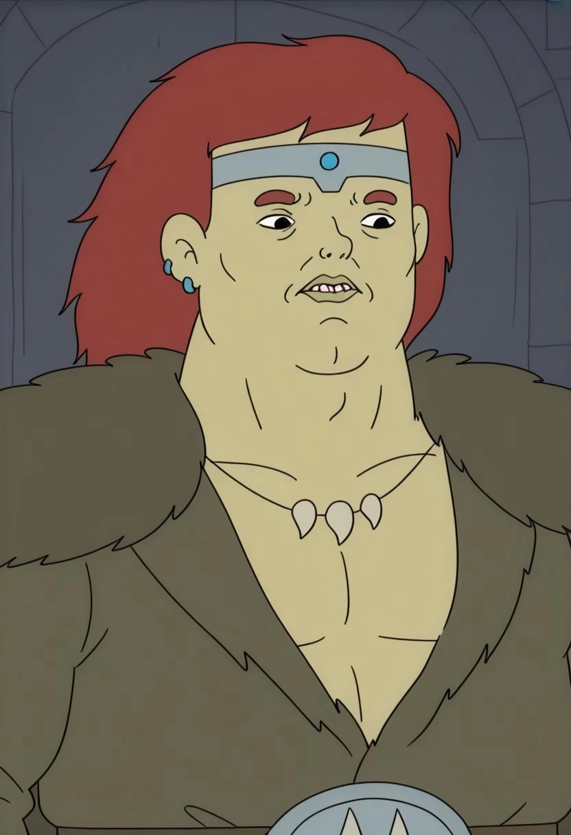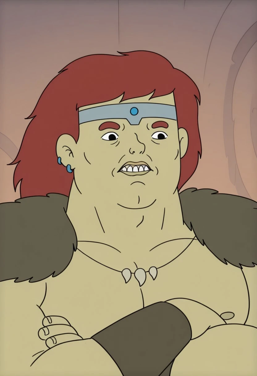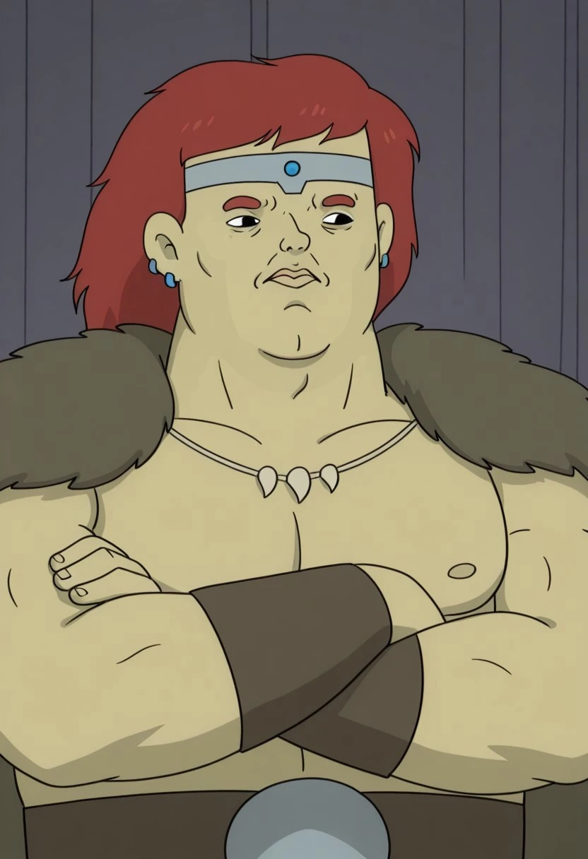 Main tags: DS_Cha0ticG00dB4rb4ri4n,1boy,circlet,red hair,male focus,jewelry,earrings,teeth,muscular,