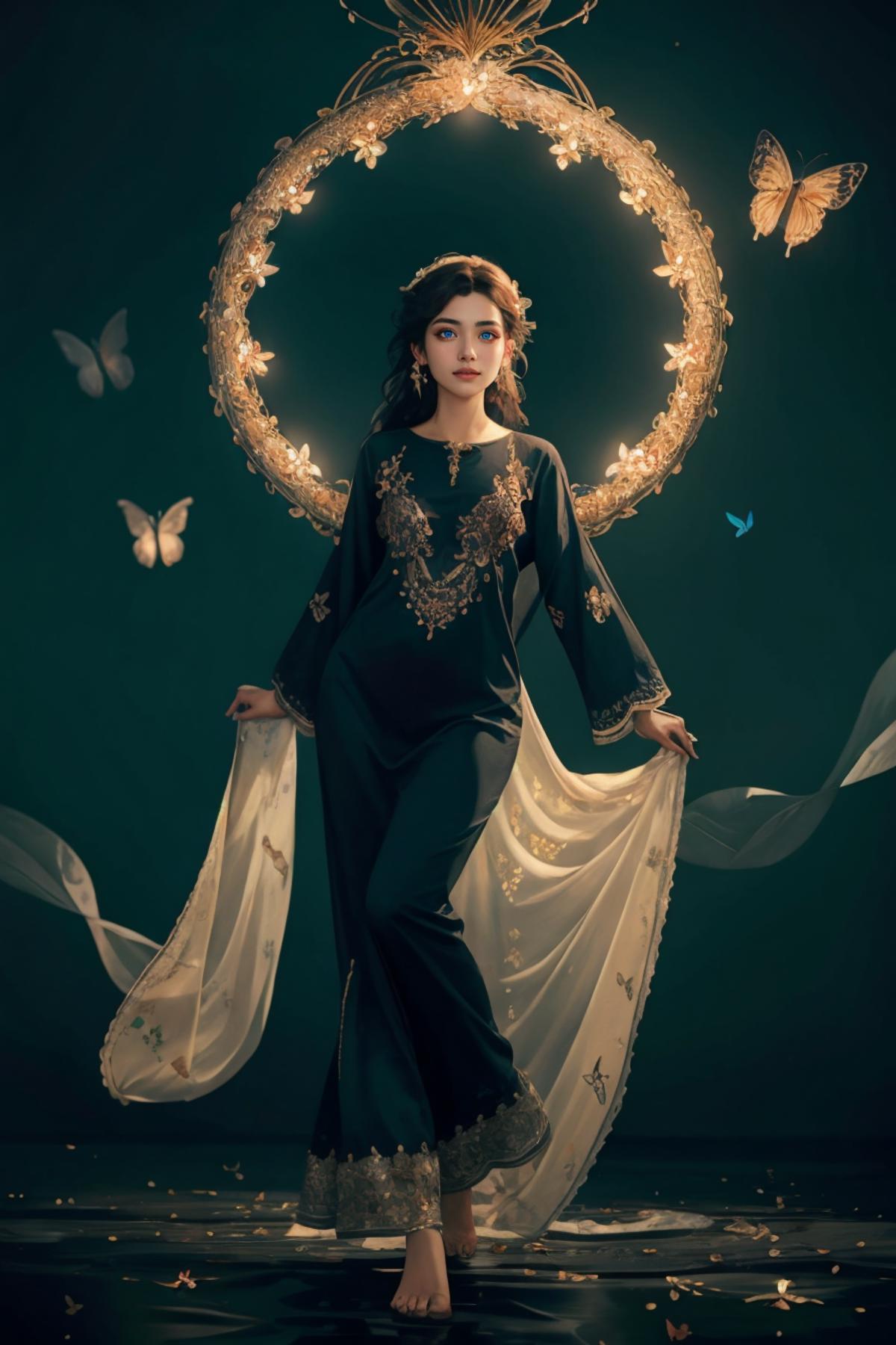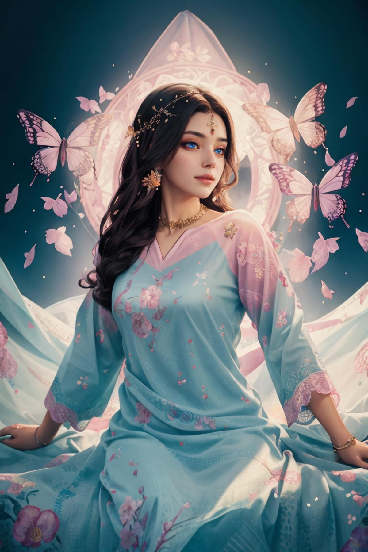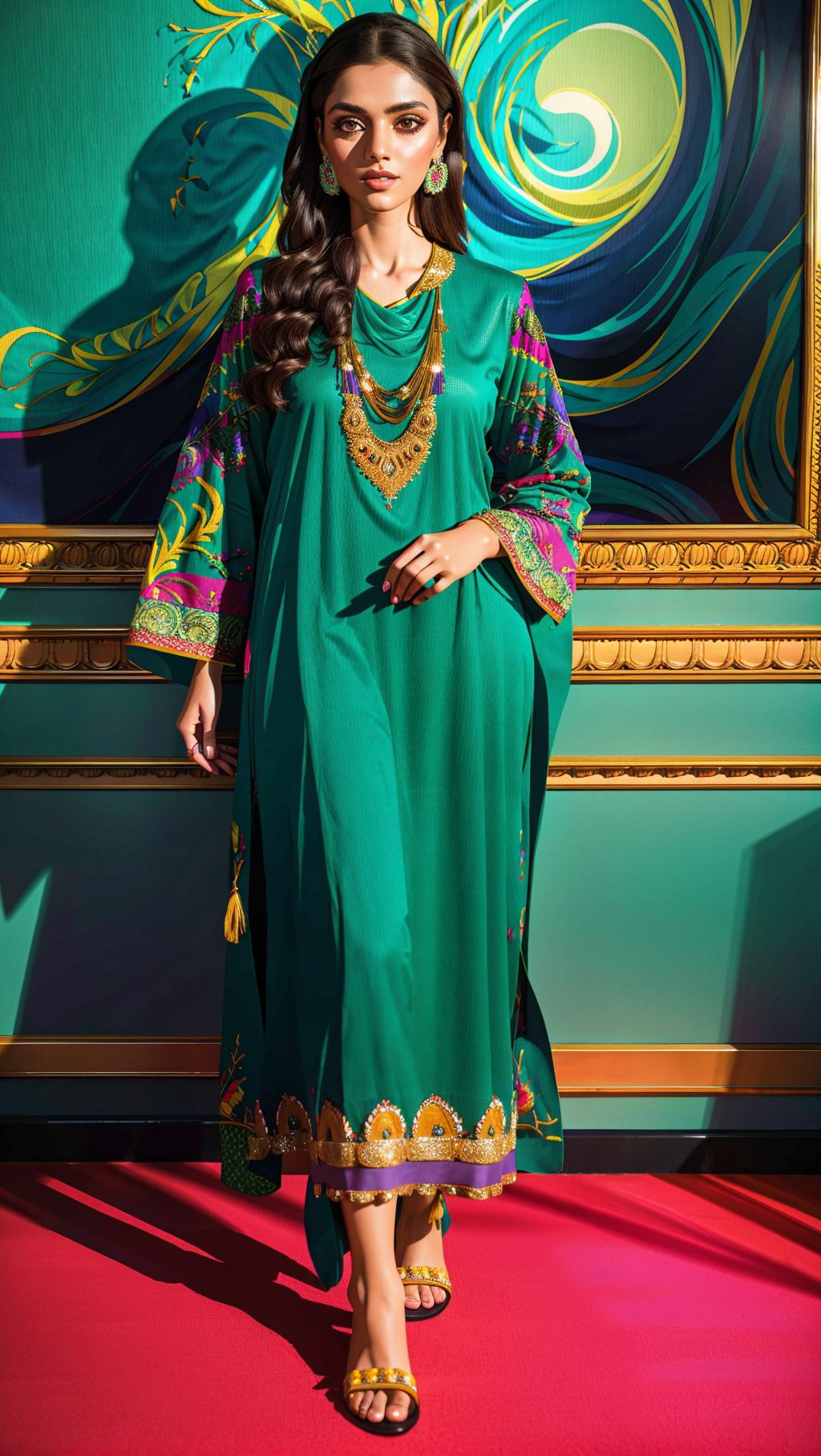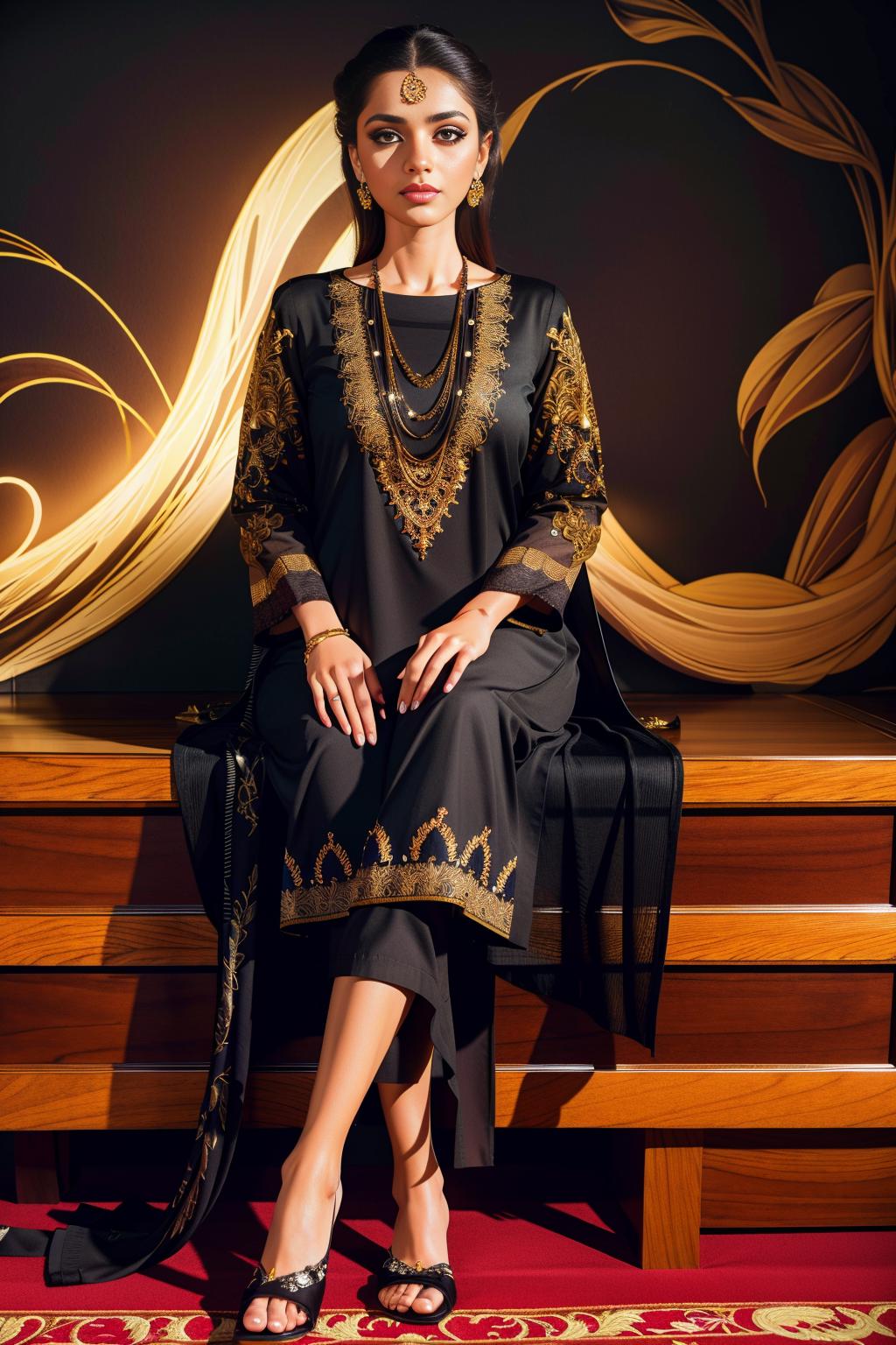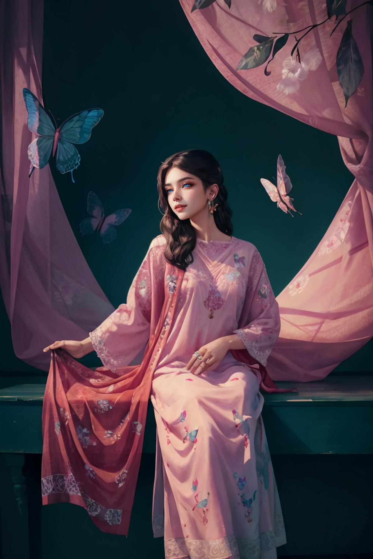 Positive prompt: xyzsanshalwarqameez, (highly detailed:1.3), 1girl, solo, (full body:1.3), zig-zag pattern, nice hands, perfect hands, embroidery , 1girl, embroidery, pink dress, shalwar, Ultra-detail, (highres:1.1), best quality, (masterpiece:1.3), cinematic lighting, (highly detailed face and eyes:1.3),