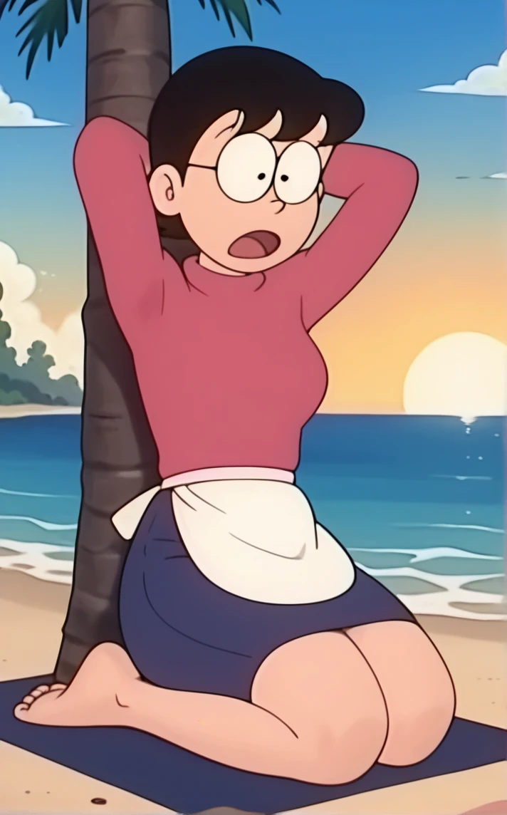 YellowSwimsuit_TamakoNobi_ownwaifu, 1girl, black eyes, black hair, breasts, cleavage, glasses, mature female, short hair, casual one-piece swimsuit, medium breasts, yellow one-piece swimsuit, large breasts, round eyewear, Anime Collections Page: Discover all the latest models we've shared, conveniently in one place. Follow the page to stay updated whenever we release a new anime model!