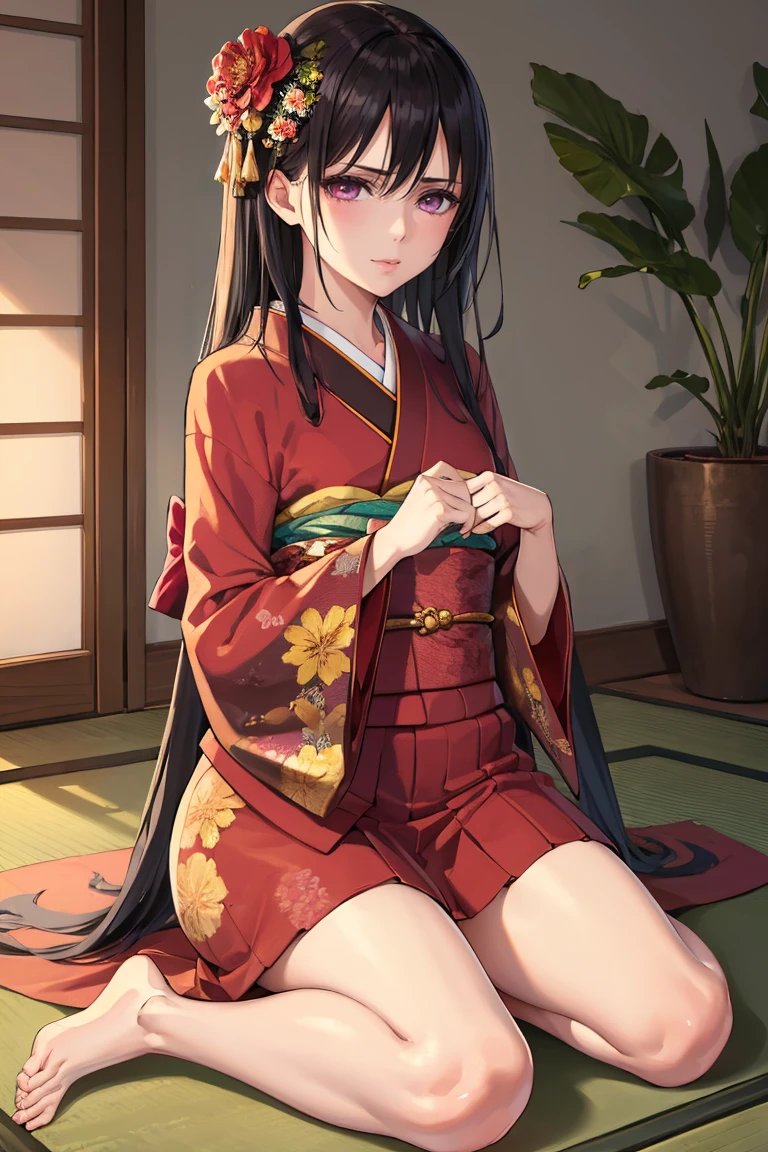 MeiAihara, long hair, collared shirt, black necktie, short sleeves, green vest, brown skirt, plaid skirtLet me know if you have any issues.