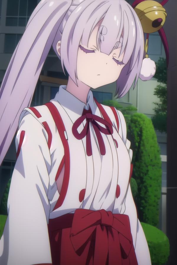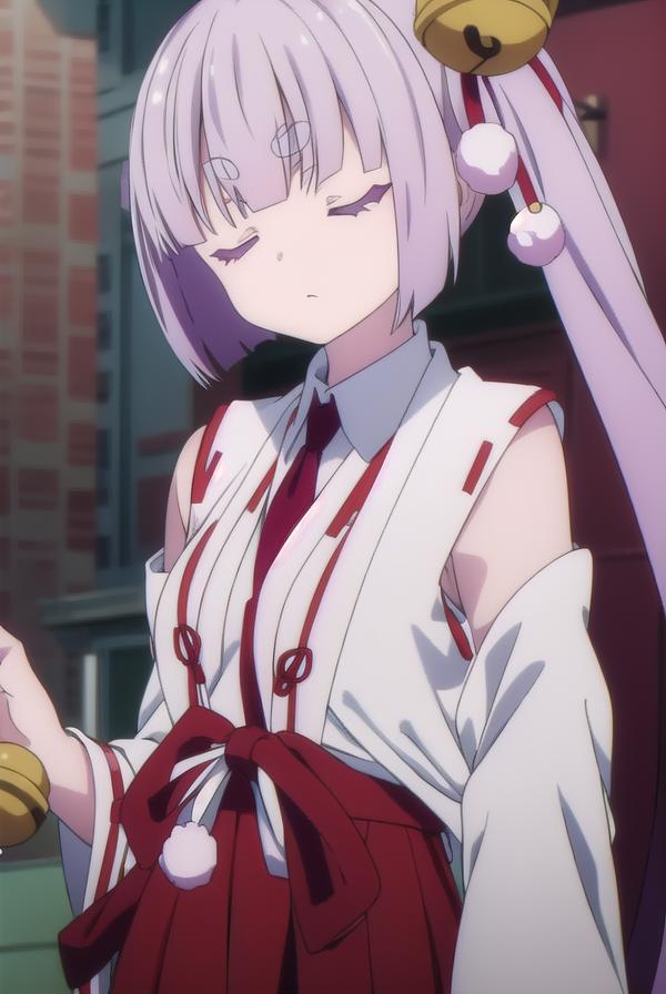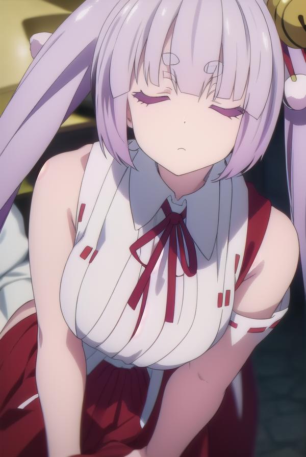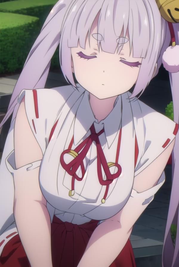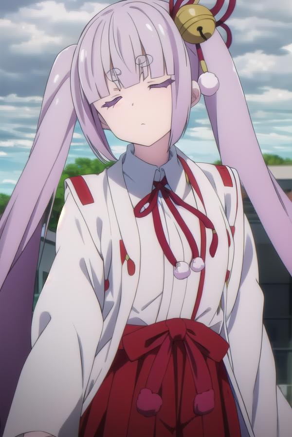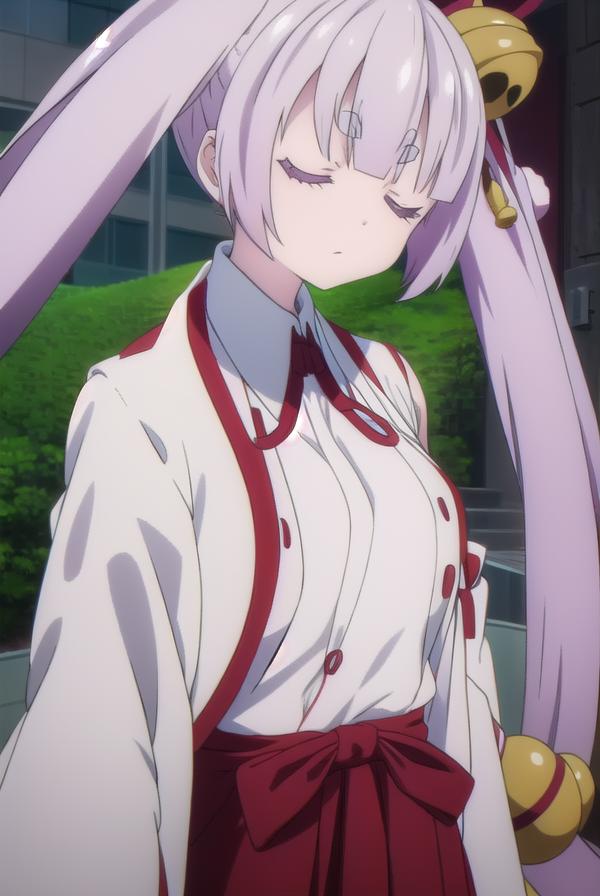 tsukuyo inaba, long hair, hair ornament, twintails, very long hair, purple hair, (closed eyes:1.5), thick eyebrows,