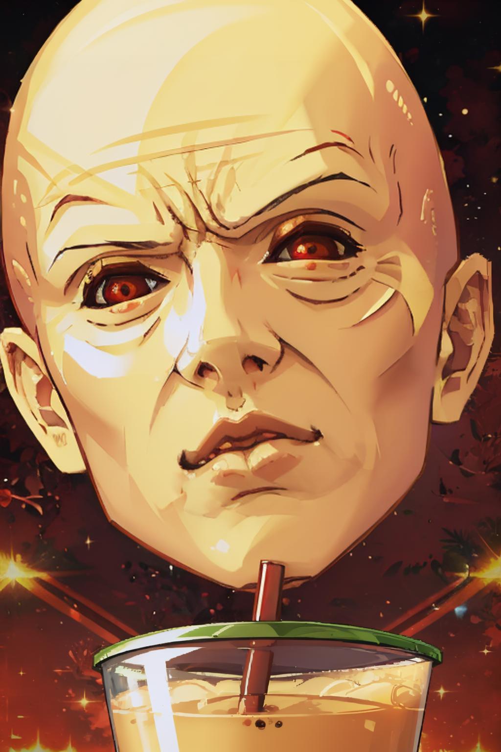 Tags: yhvhsmt, head, bald, yellow skin, red eyes, no humans, close up,