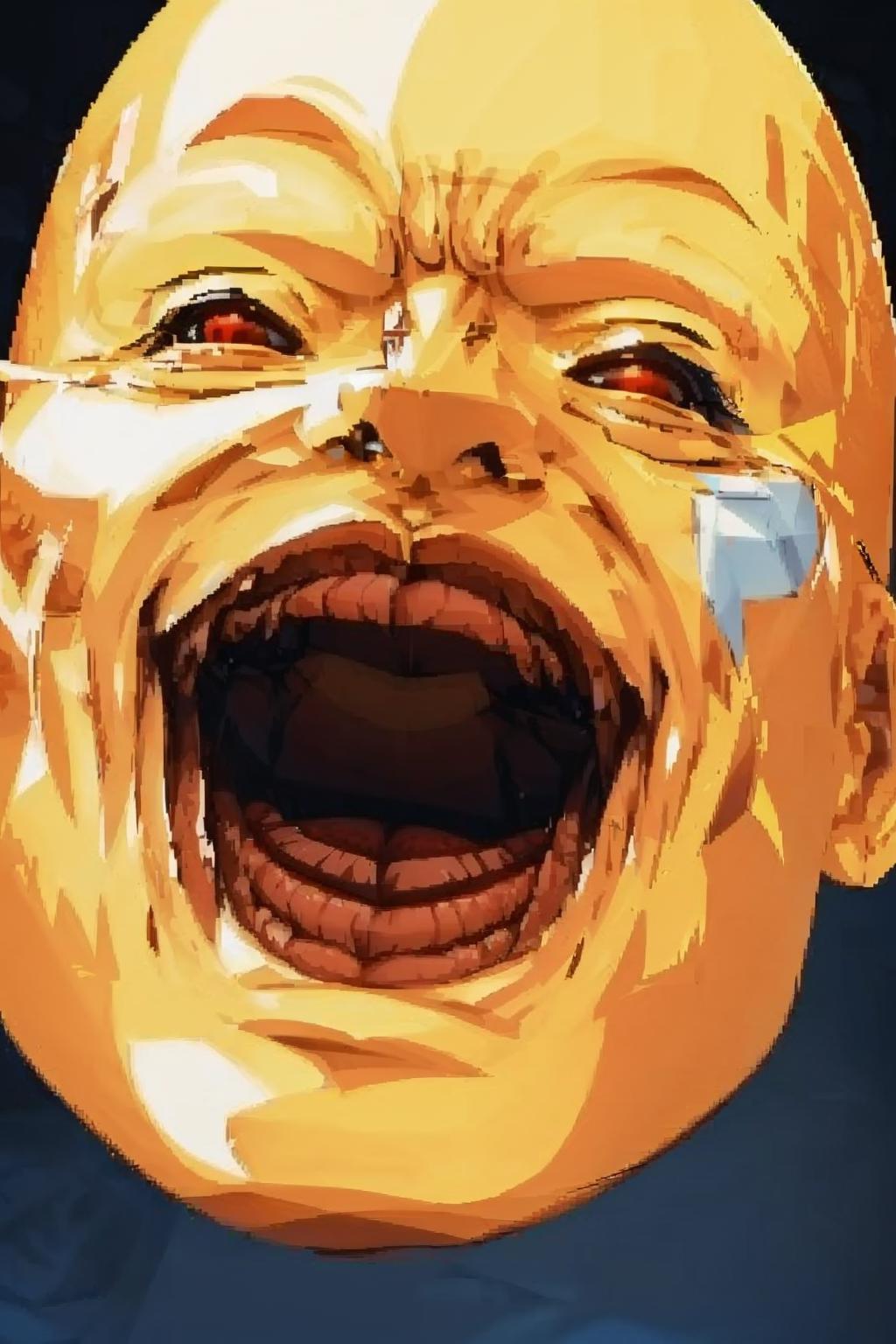 yhvhsmt, head, bald, yellow skin, red eyes, no humans, close up,