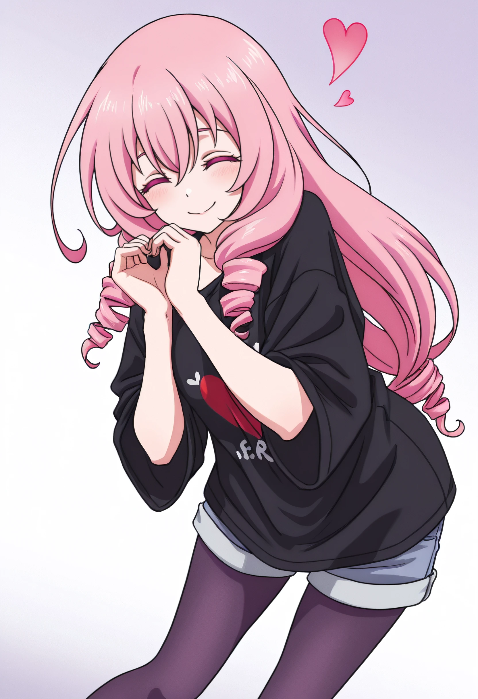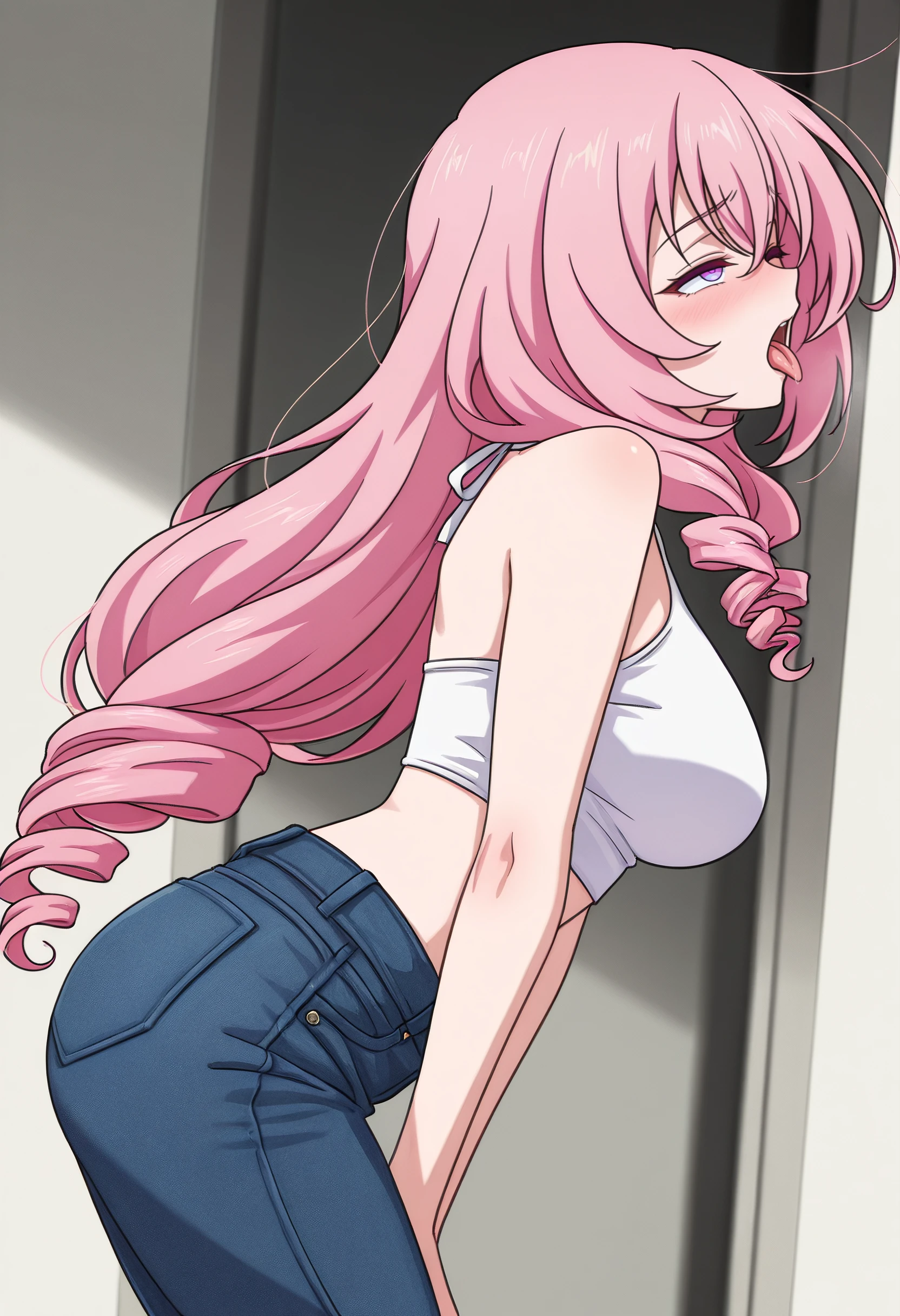 HNMCarol, pink hair, long hair, drill hair, purple eyes, hair between eyes,