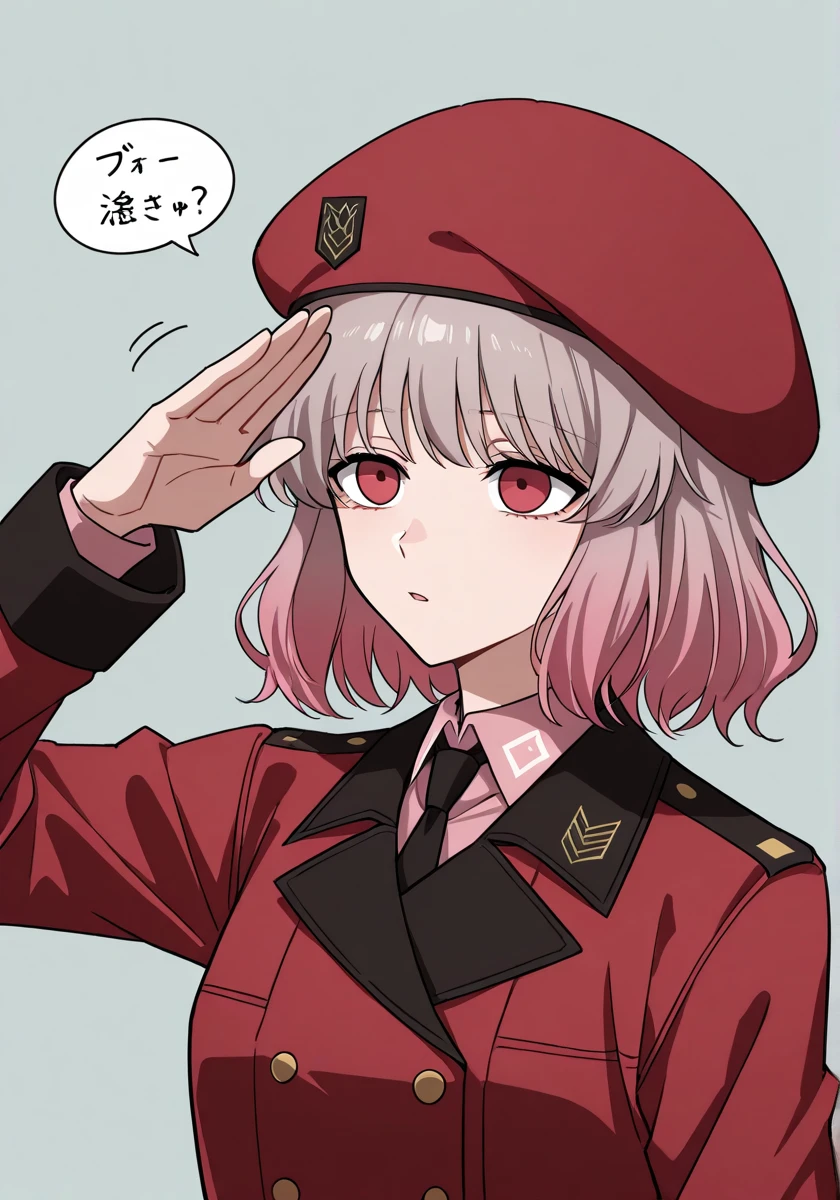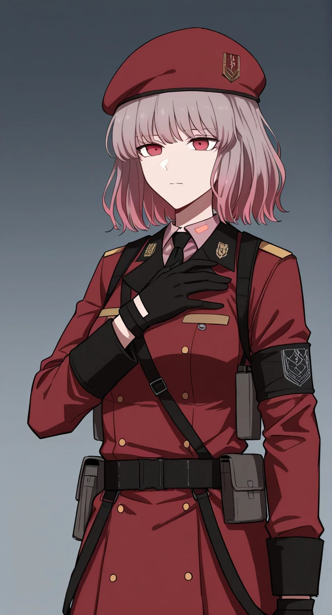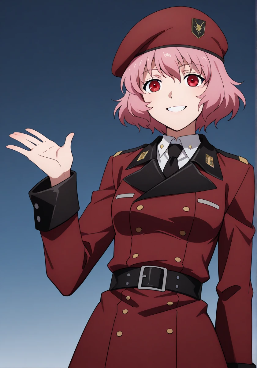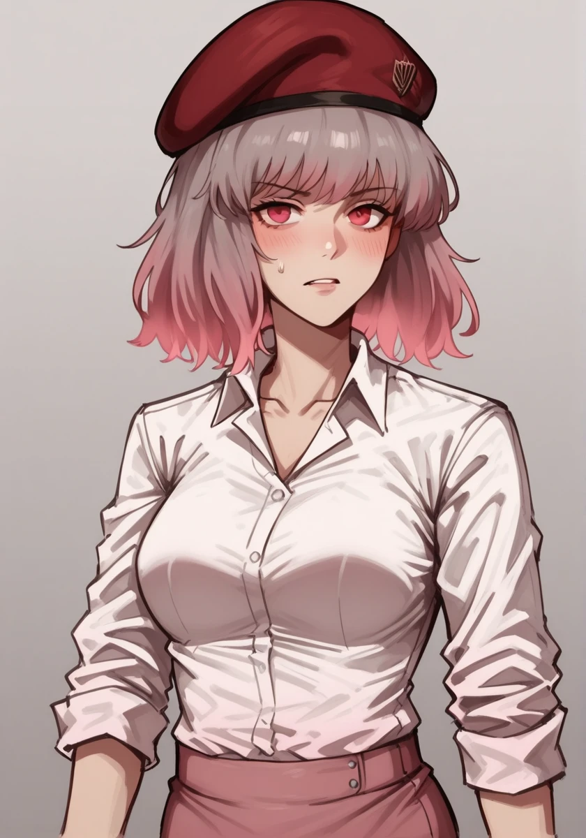 Tags: gentiane, pink hair, red eyes for her appearance (Alternatively, gradient hair, gray to pink hair)