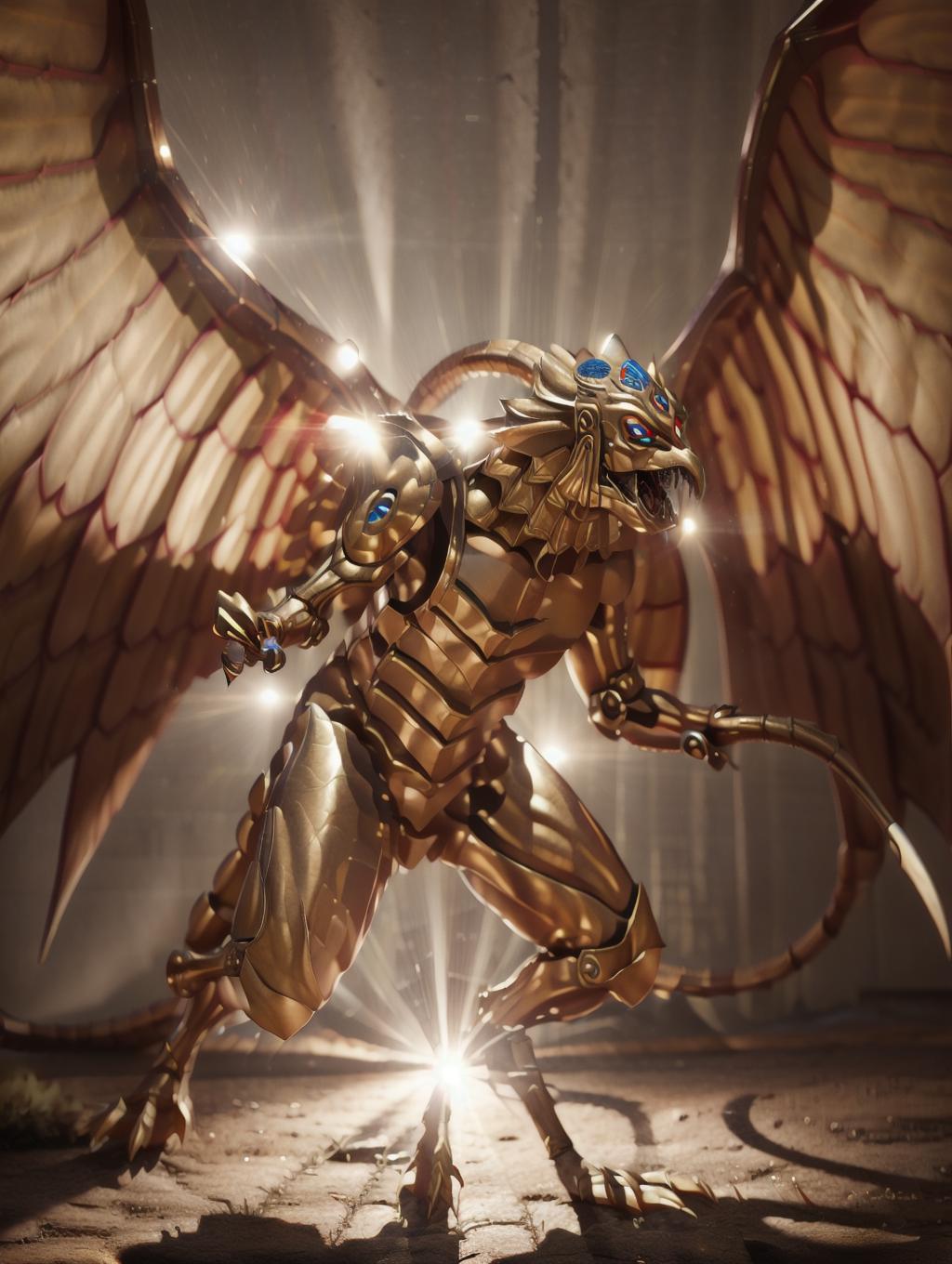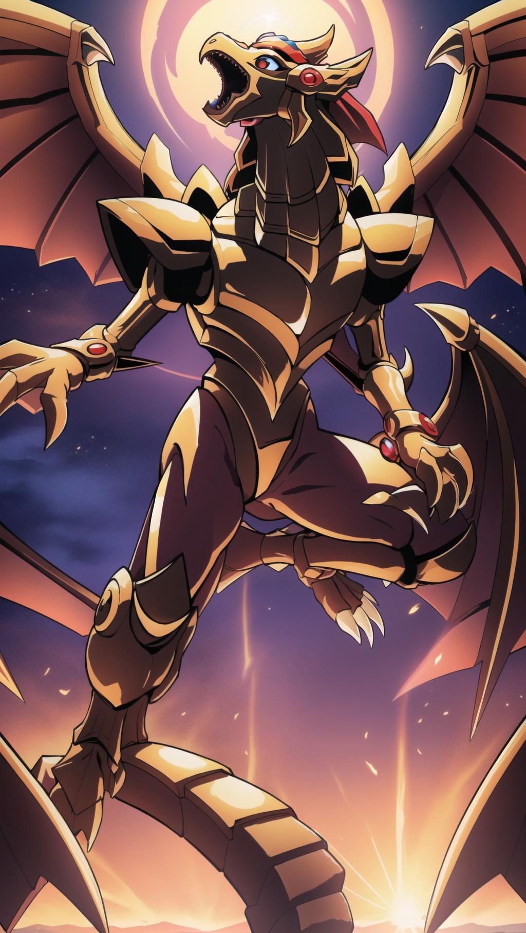 The Winged Dragon of Ra, the card from Yu-Gi-Oh!, trained on animefull. Trigger word is ra_ygo