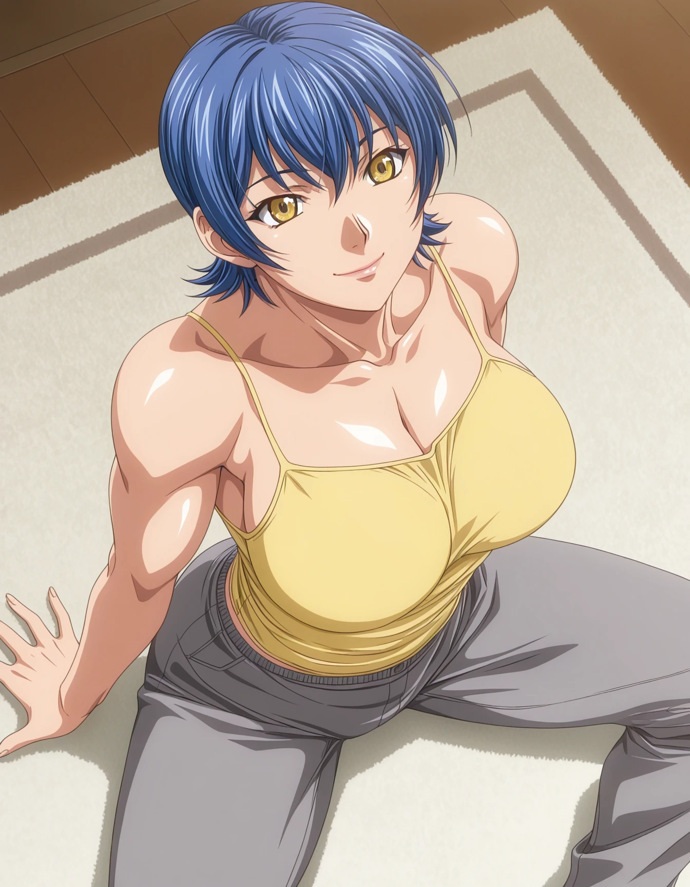 miyagishi yuuki, blue hair, short hair, yellow eyes, lips