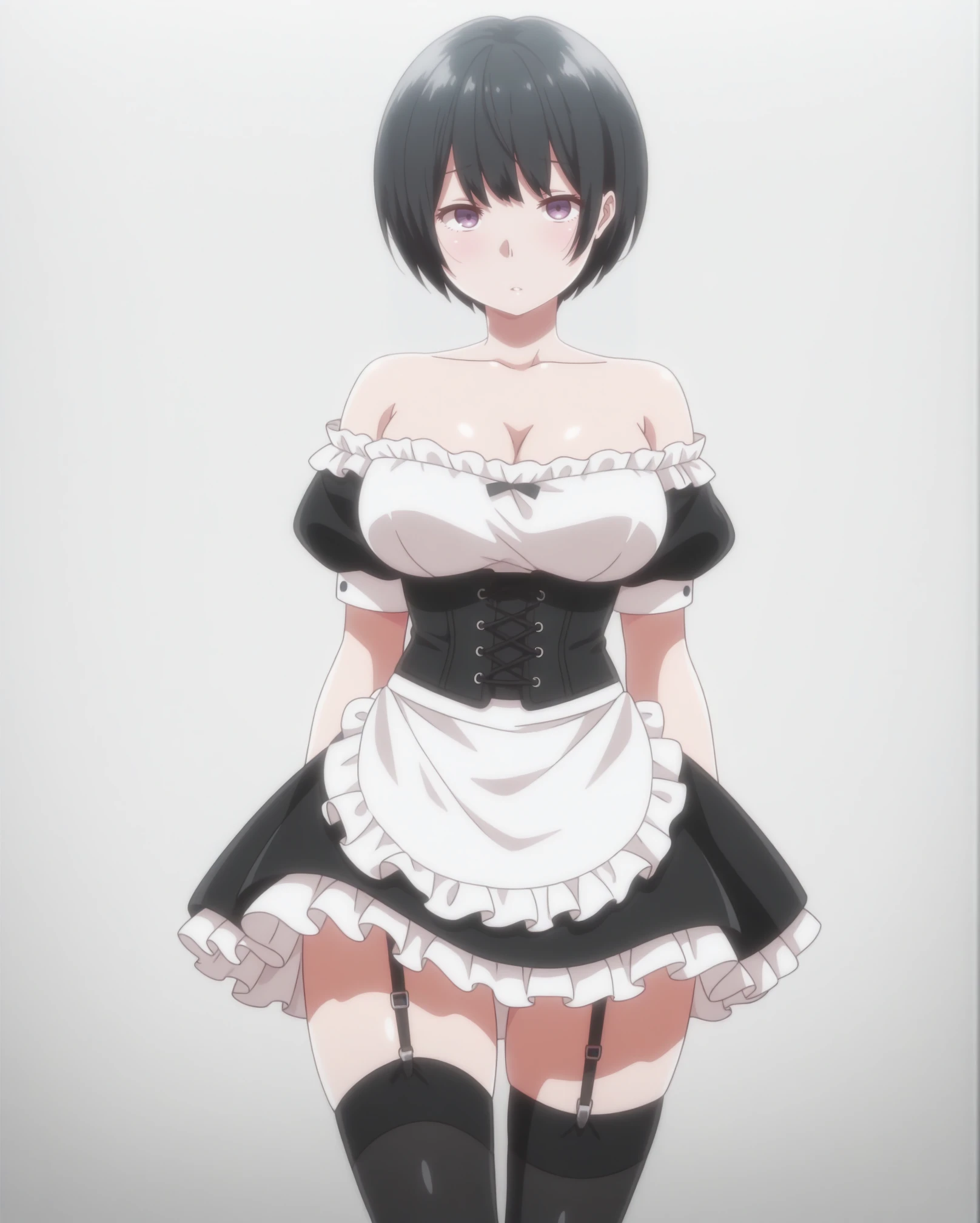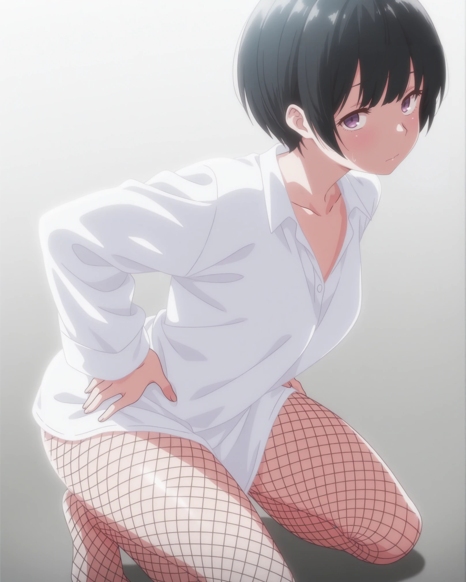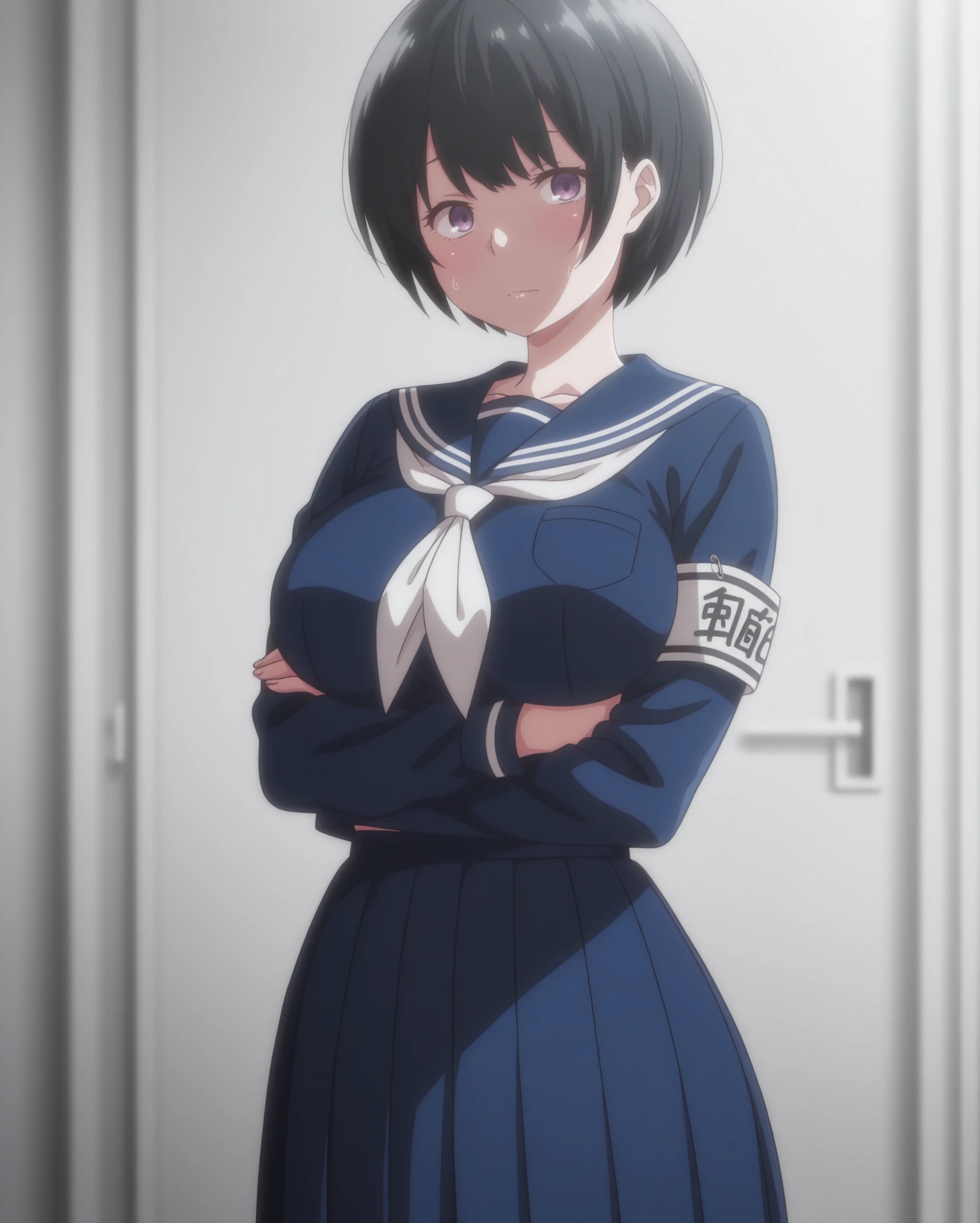 yukikouodef, purple eyes, black hair, short hair, anime screencap