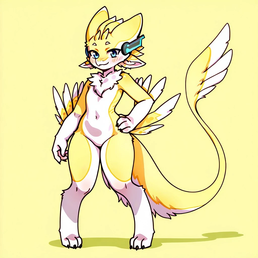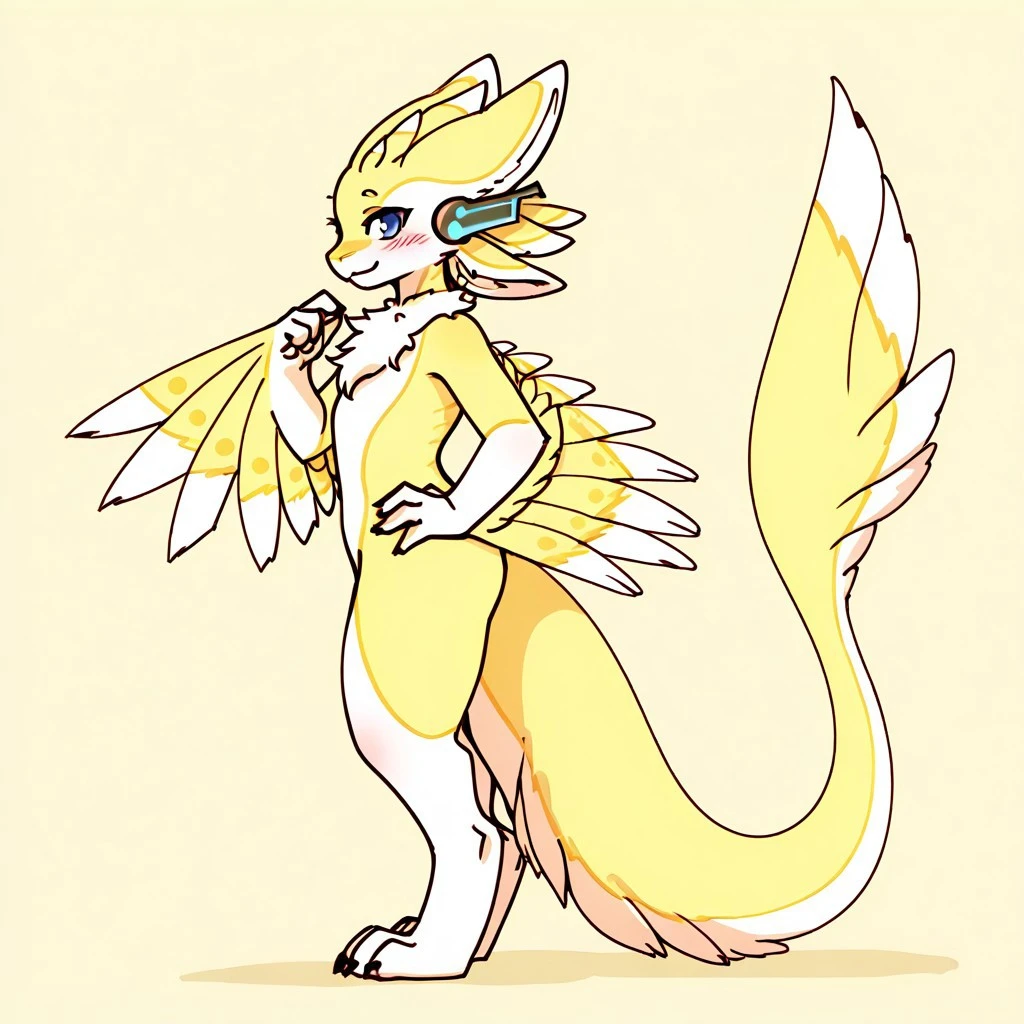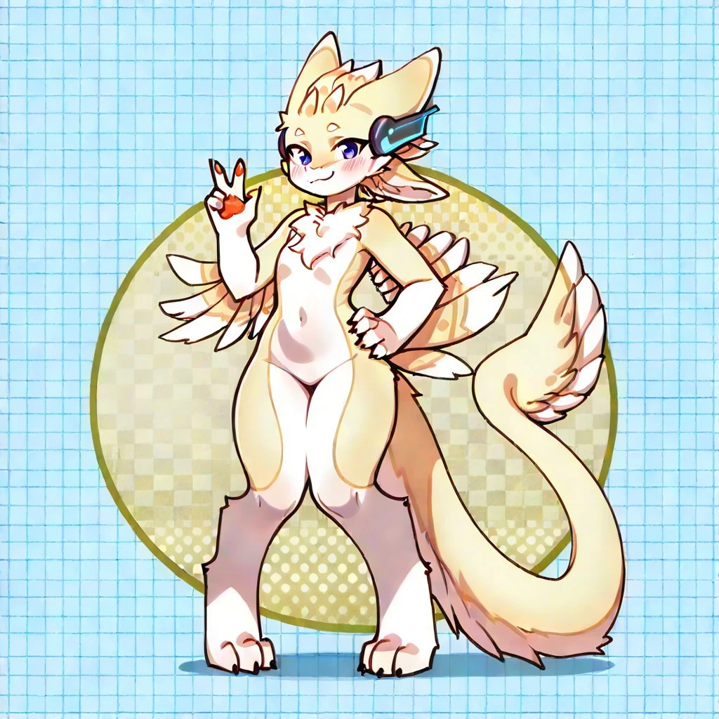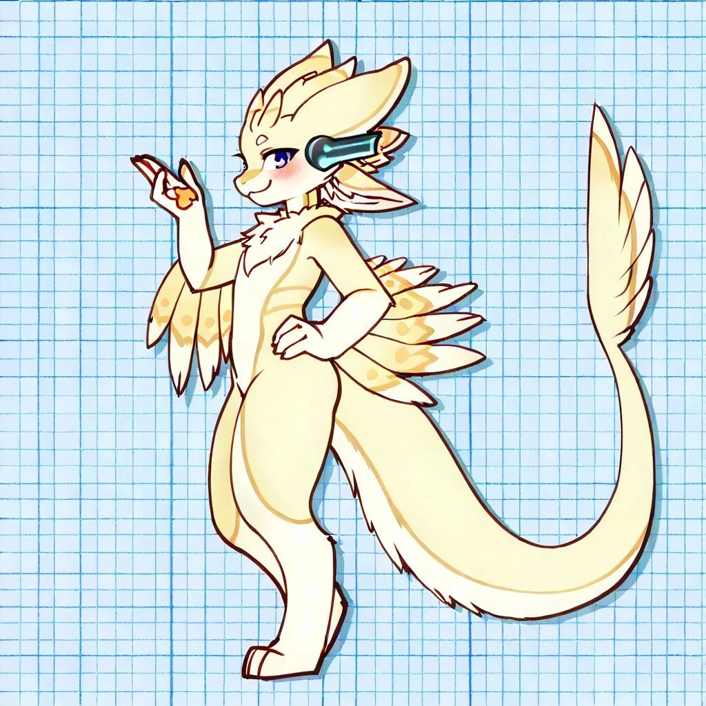A cute and pretty nice avali called Kuno, it looks like a modified avali that has classic blue eyes not like the owned by their species, and wears a curious artifact between it's ears (like headphones).