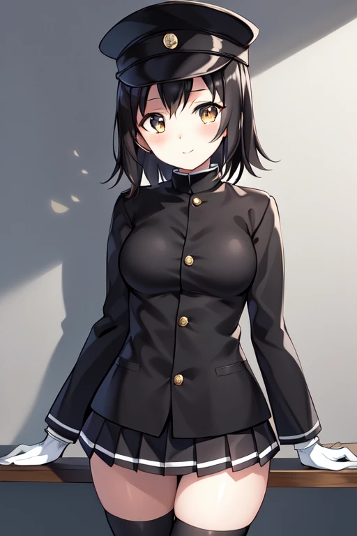 akitsumaruKC, 1girl, solo, short hair, skirt, thighhighs,white gloves, long sleeves, gakuran,peaked cap,